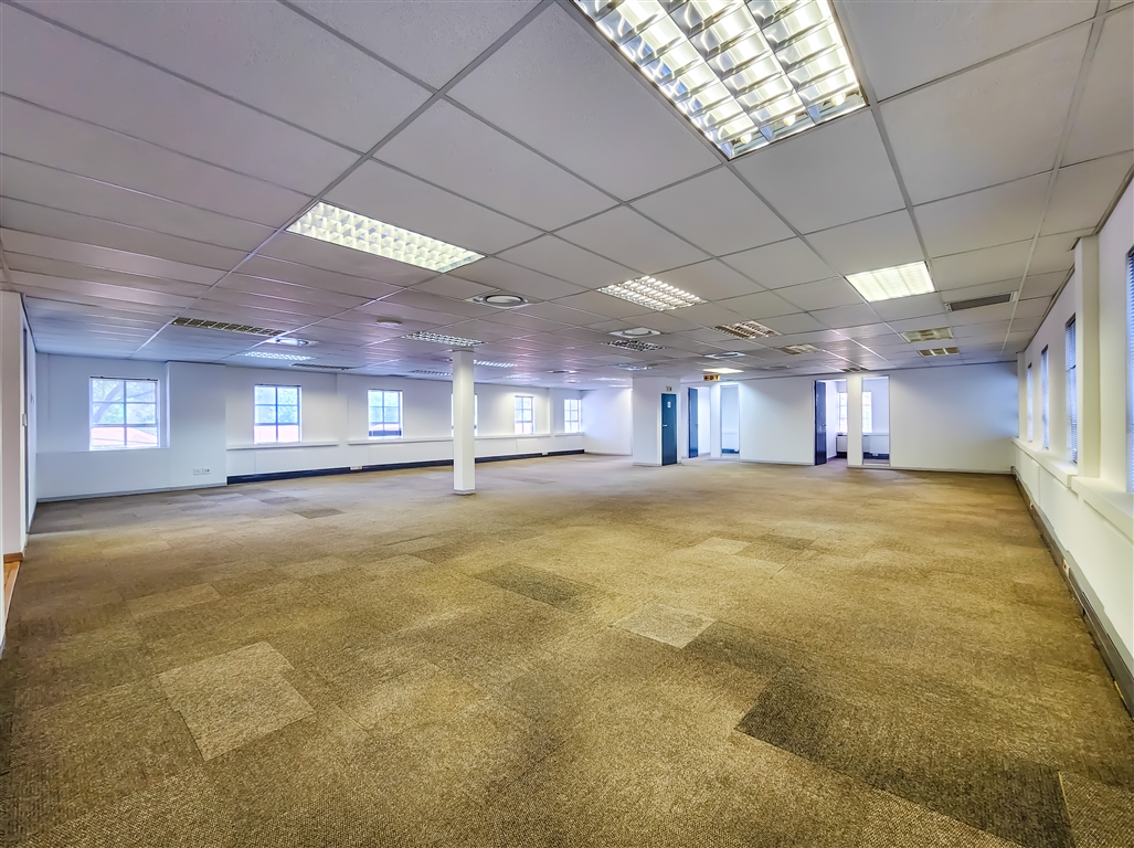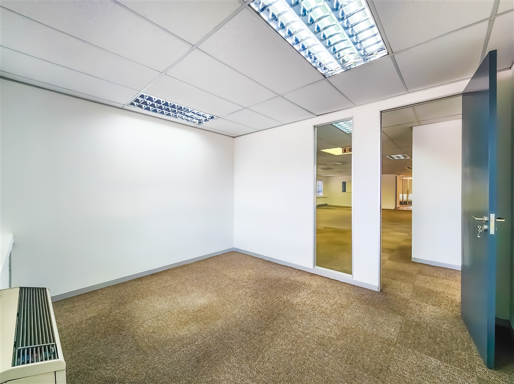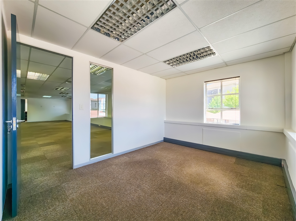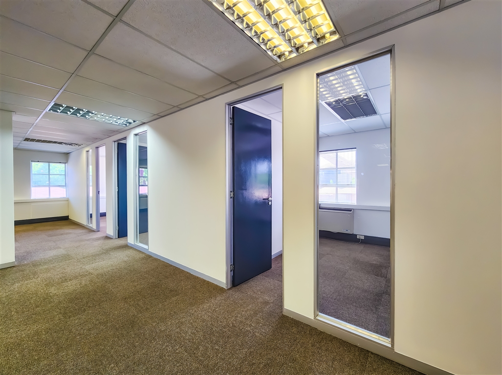 This modern and functional ground floor office to rent in the sought-after Fourways Golf Park welcomes you with a neat reception area leading to a spacious glass-enclosed boardroom that opens directly onto a shared patio overlooking the scenic golf course. A passage connects to a storeroom with an interlinked server room, a generous sized open-plan workspace, and three private offices, providing flexibility for both team collaboration and individual focus. The office also offers a large, fully fitted kitchen with ample space for seating and informal gatherings. Finishes include a combination of carpets, tiles, and vinyl flooring throughout. Please note that rates and taxes are charged over and above the rental dispayed.