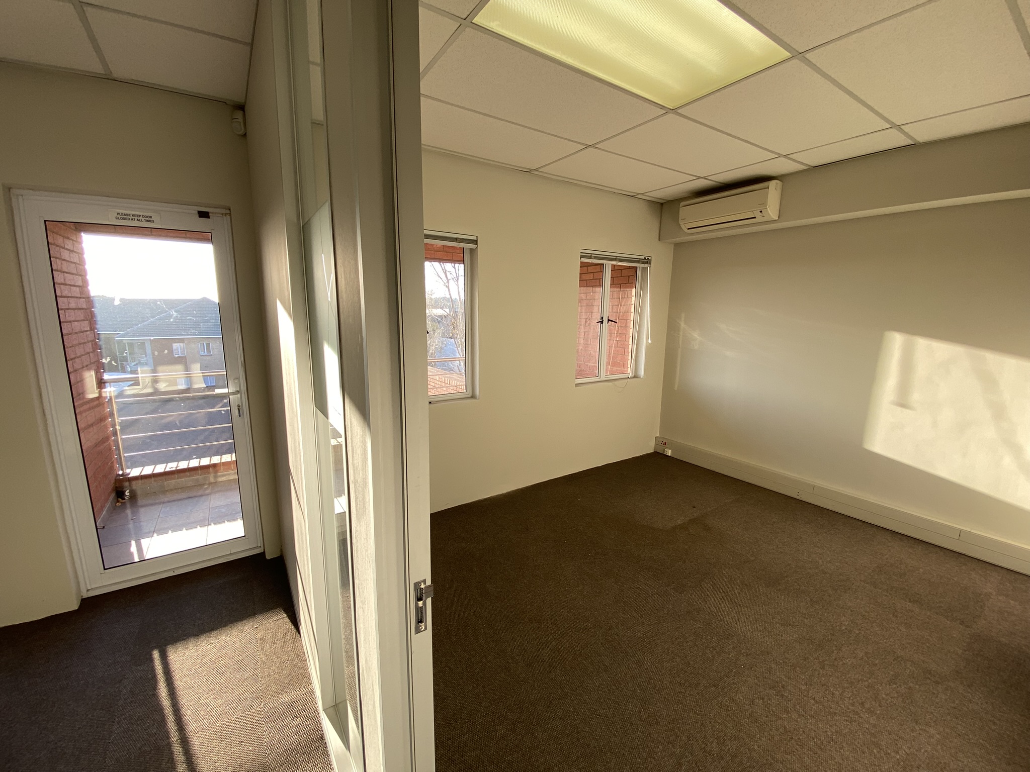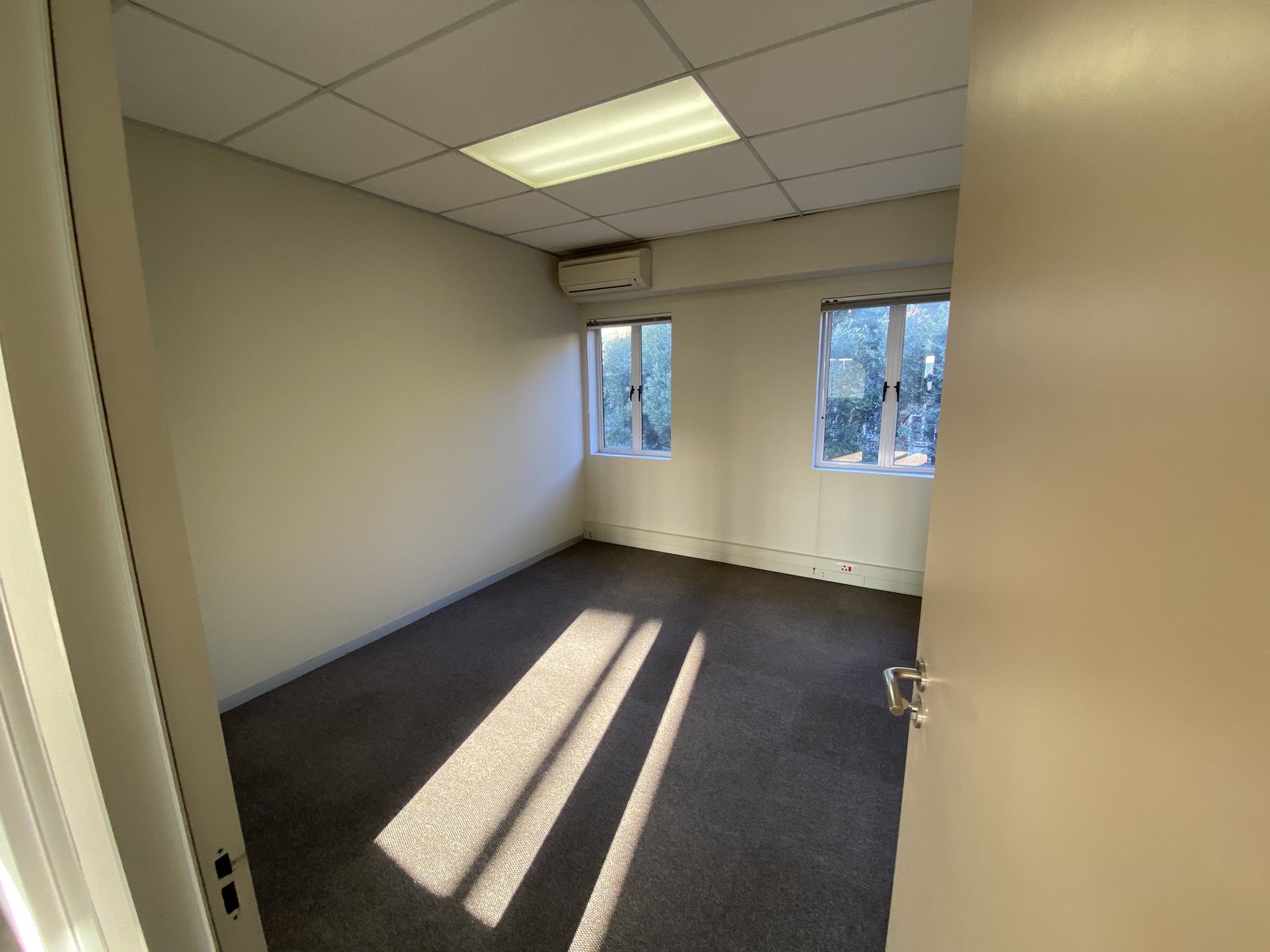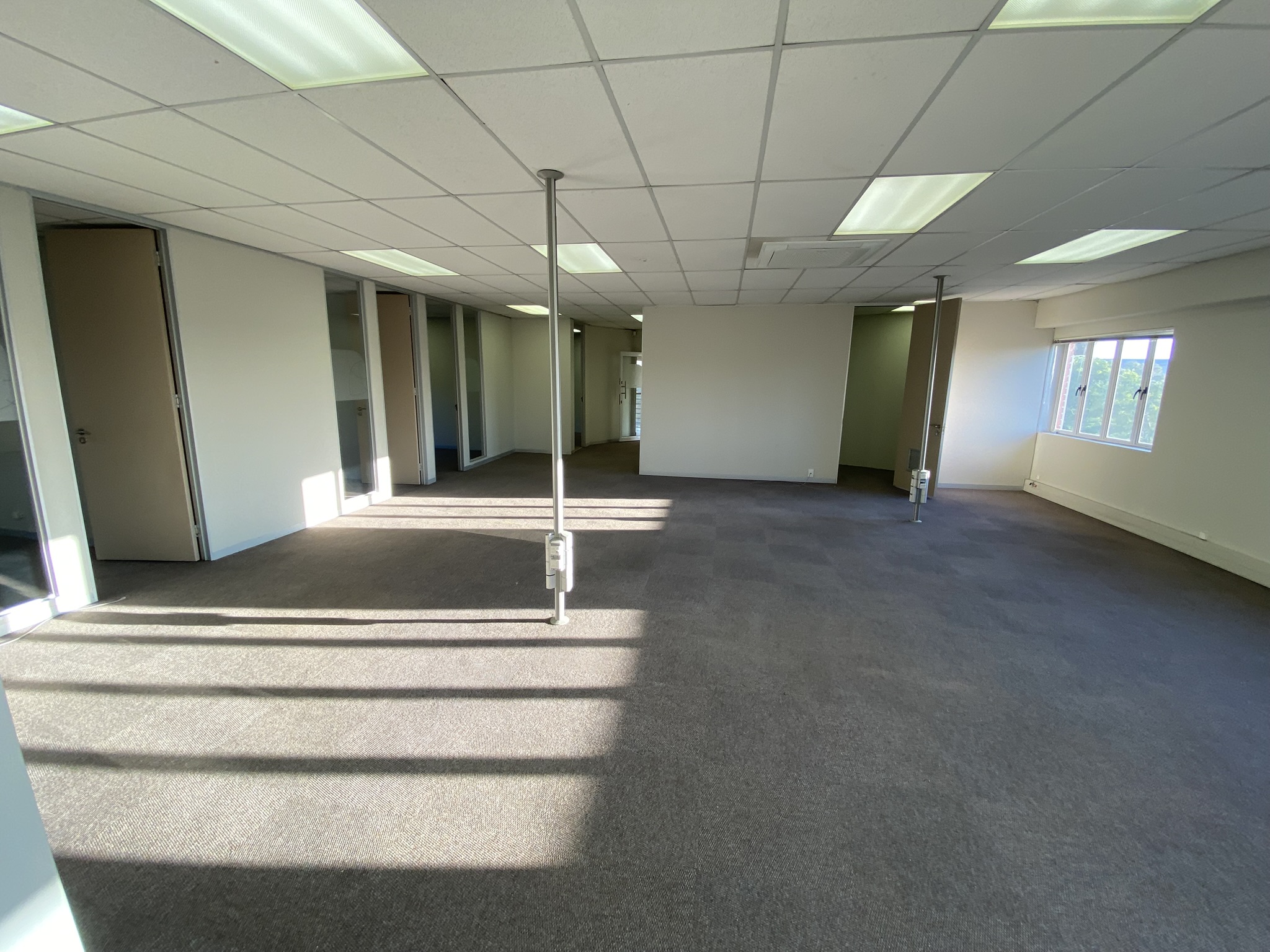 This air-conditioned first floor suite is carpeted and fitted with a reception area, a boardroom, five offices, and a storeroom. Ladies & gents’ bathrooms and a communal kitchen are adjacent to the suite. The building has generator backup. Open parking bays are available at R540 excluding vat per bay per month, shaded bays at R610 excluding vat per bay per month and basement bays at R710 excluding vat per bay per month. If storage space is required, a basement storeroom is available to let in the basement of the building.