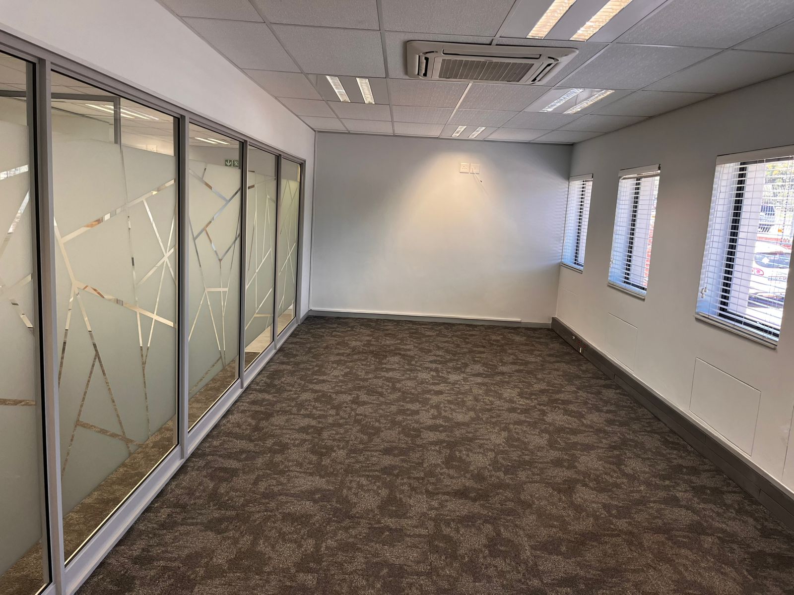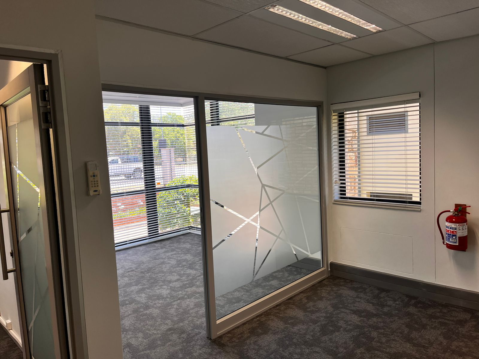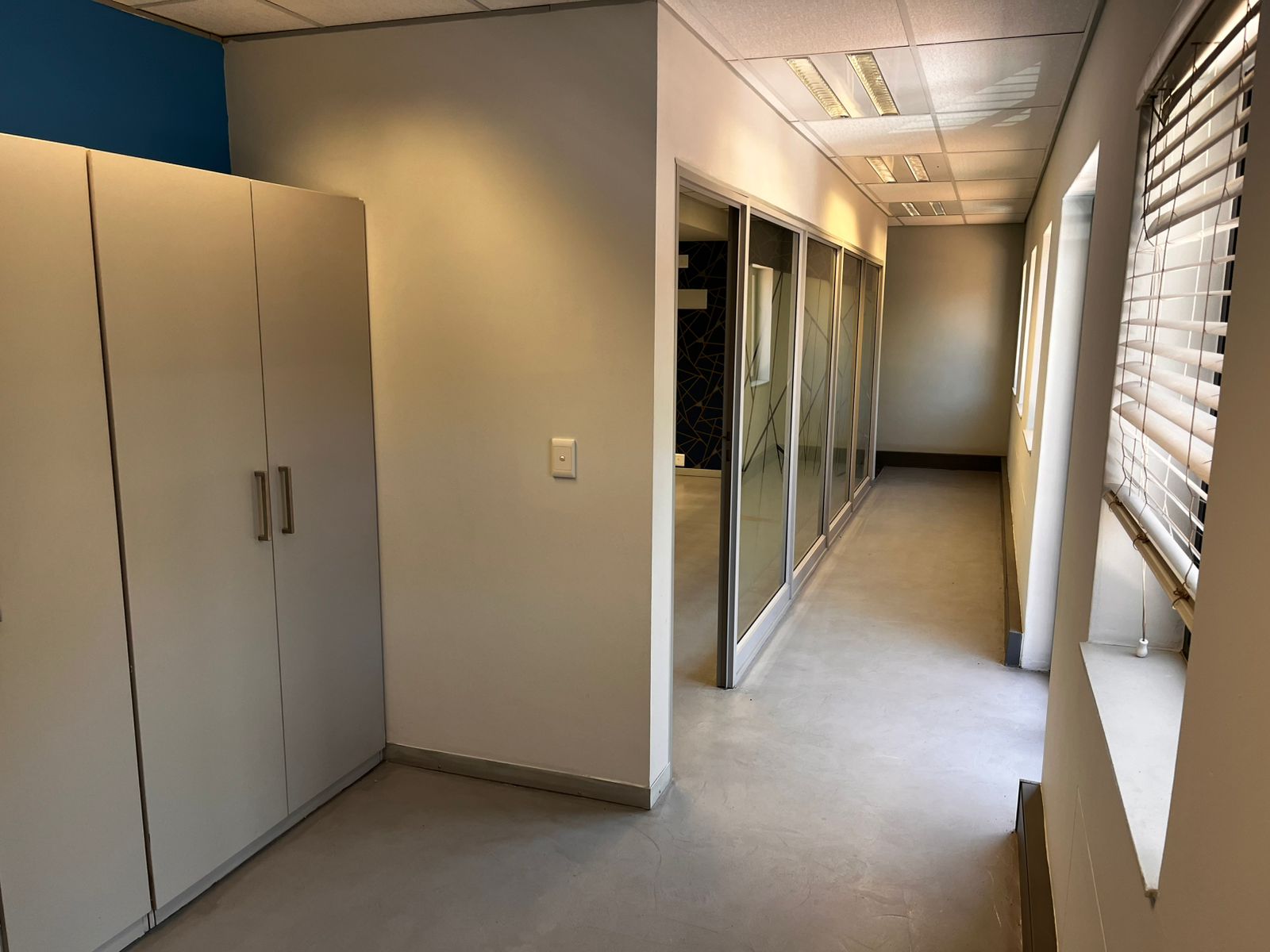 This ground floor air-conditioned suite consists of a reception area, meeting room, boardroom, two offices and a full kitchen. Ladies & gents’ bathrooms are adjacent to the unit. There is a bio-metric access pad at the entrance to the unit. Fibre is available in the park and there is water and generator back-up. The rental excludes vat, parking, utilities and common area cleaning. Basement parking bays are available at R600 excluding vat per month each and open parking bays cost R300 excluding vat per month each.