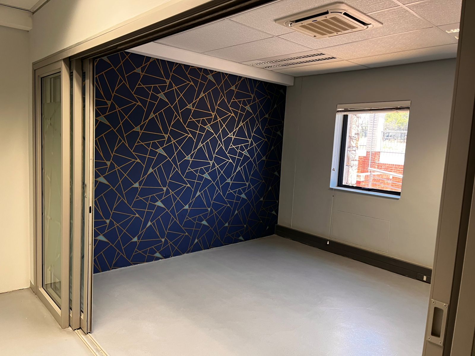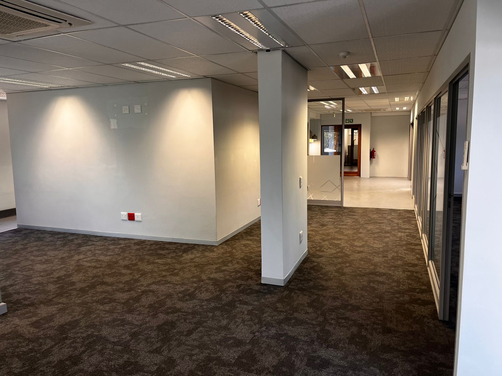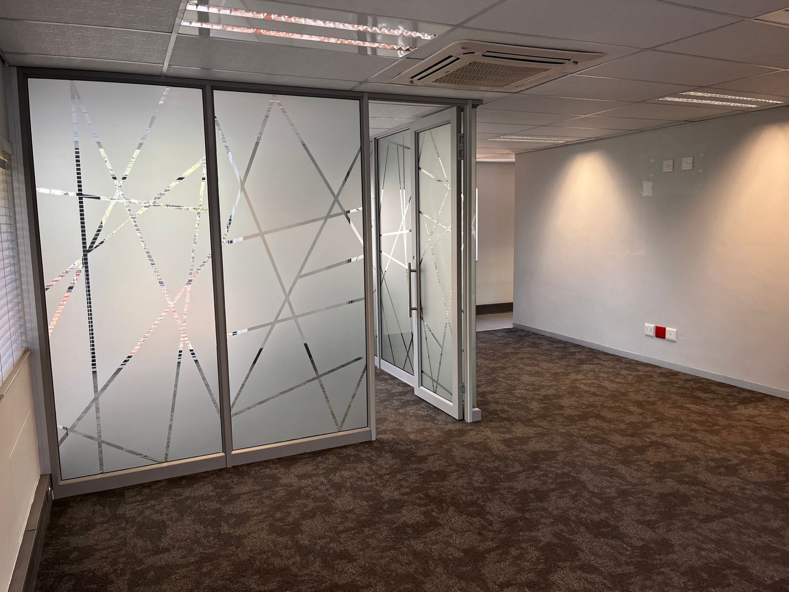 This ground floor air-conditioned suite consists of a reception area, meeting room, boardroom, two offices and a full kitchen. Ladies & gents’ bathrooms are adjacent to the unit. There is a bio-metric access pad at the entrance to the unit. Fibre is available in the park and there is water and generator back-up. The rental excludes vat, parking, utilities and common area cleaning. Basement parking bays are available at R600 excluding vat per month each and open parking bays cost R300 excluding vat per month each.