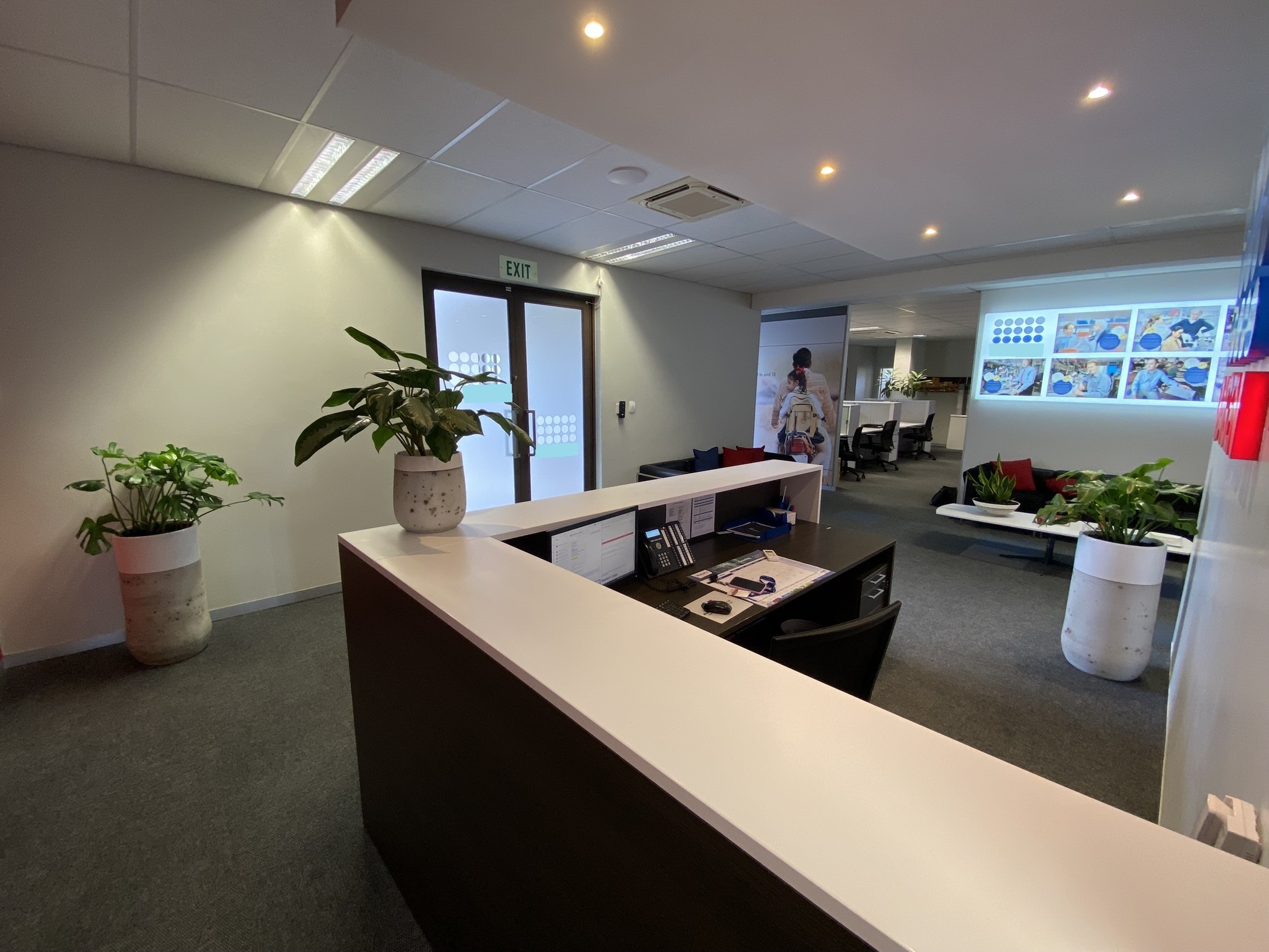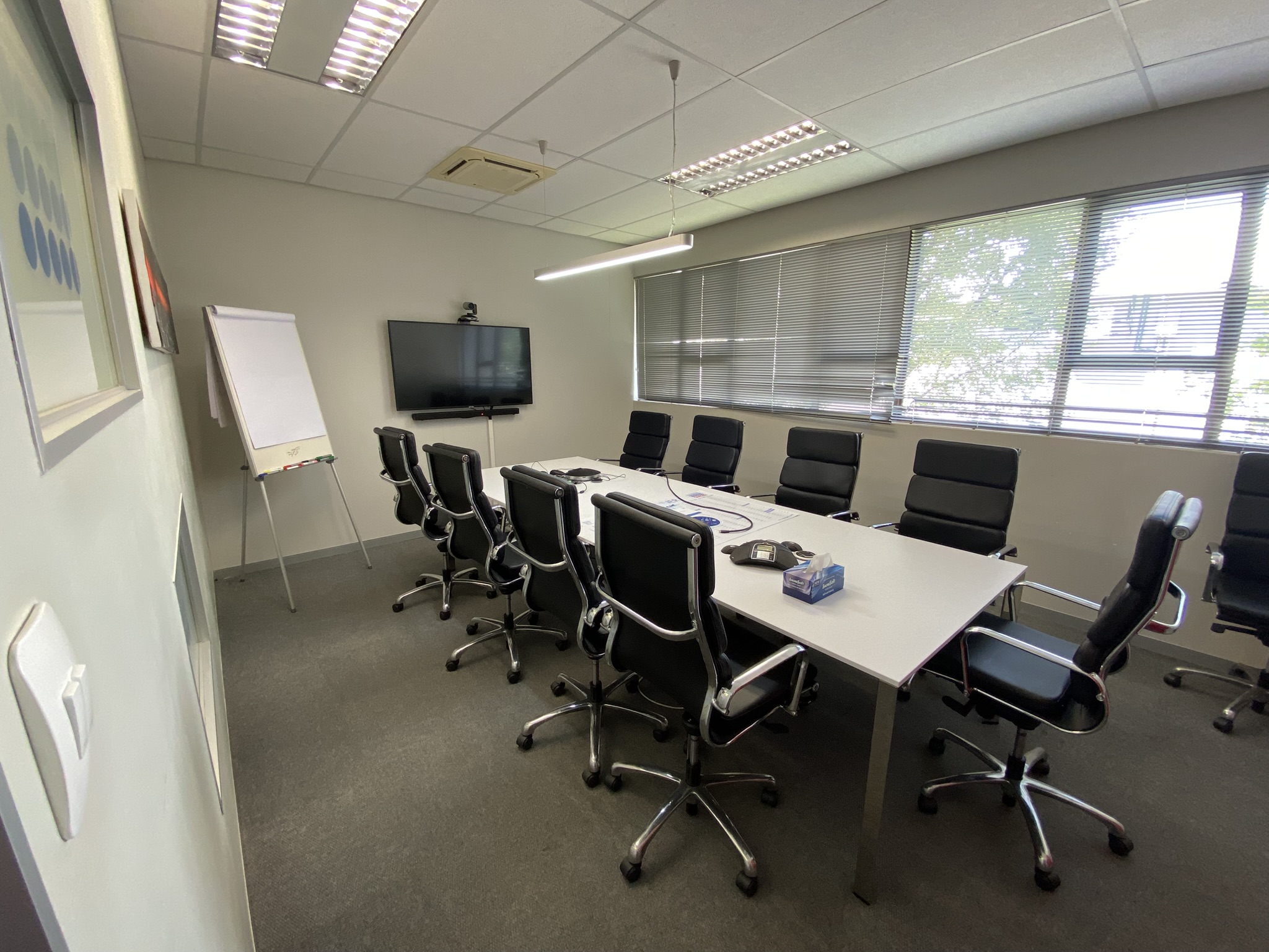 This 155m2 ground floor air-conditioned suite consists of a reception area, boardroom, two offices, a kitchen, and ladies & gents’ bathrooms. The unit is fitted with a bio-metric access system and fibre is available in the park. The unit has generator back-up. The rental excludes vat, parking, utilities. Basement and open parking bays are available at R550 and R300 excluding vat per month per bay respectively. The adjacent unit of 215m2 is also available to let for R32 250 per month excluding vat, parking and utilities.