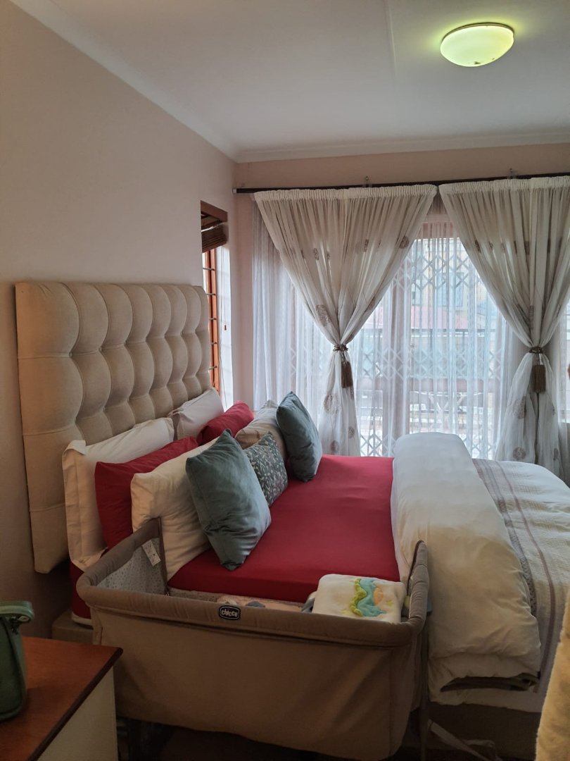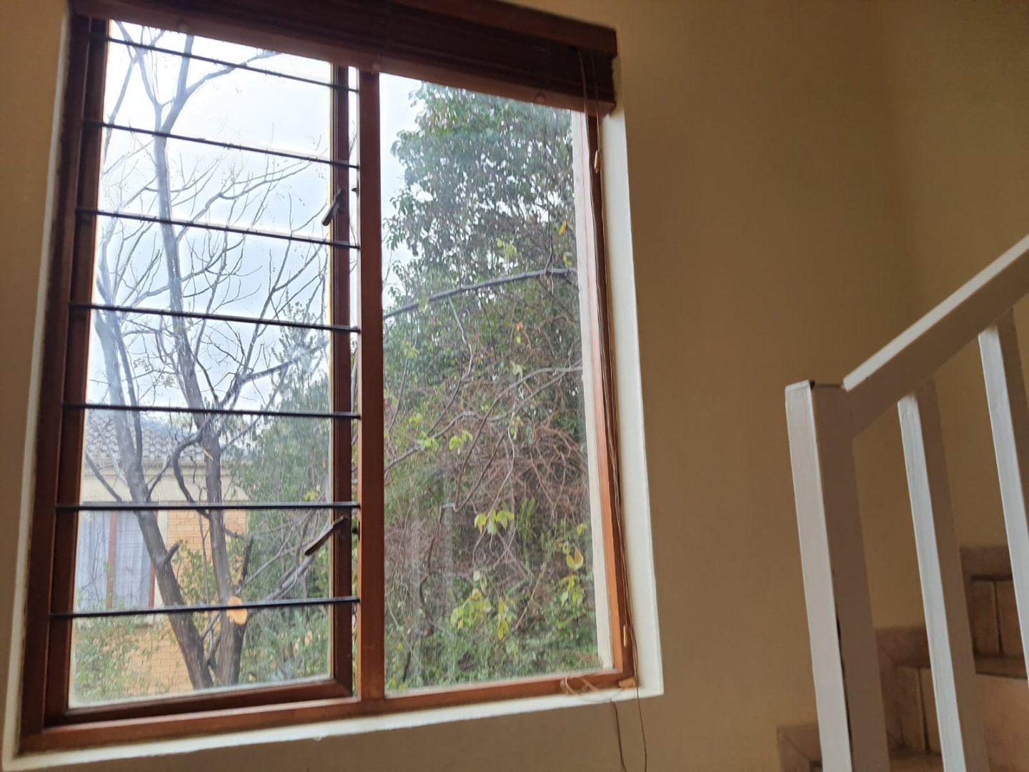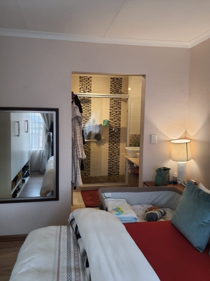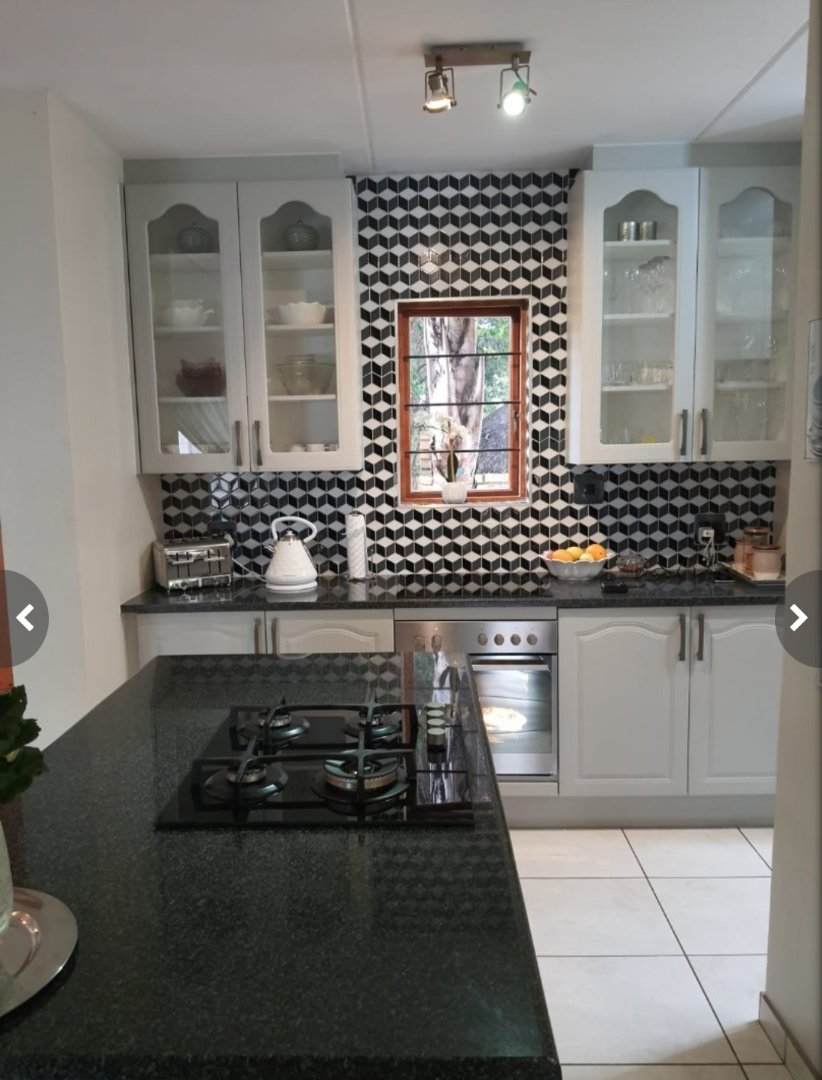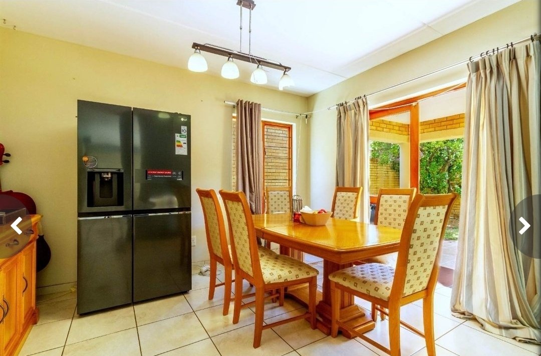 The dining room opens out to a large wraparound garden, currently a blank canvas, but with the potential to be a quiet oasis in the midst of the Fourways hustle and bustle. Tall trees along the perimeter afford some privacy from the neighbours.