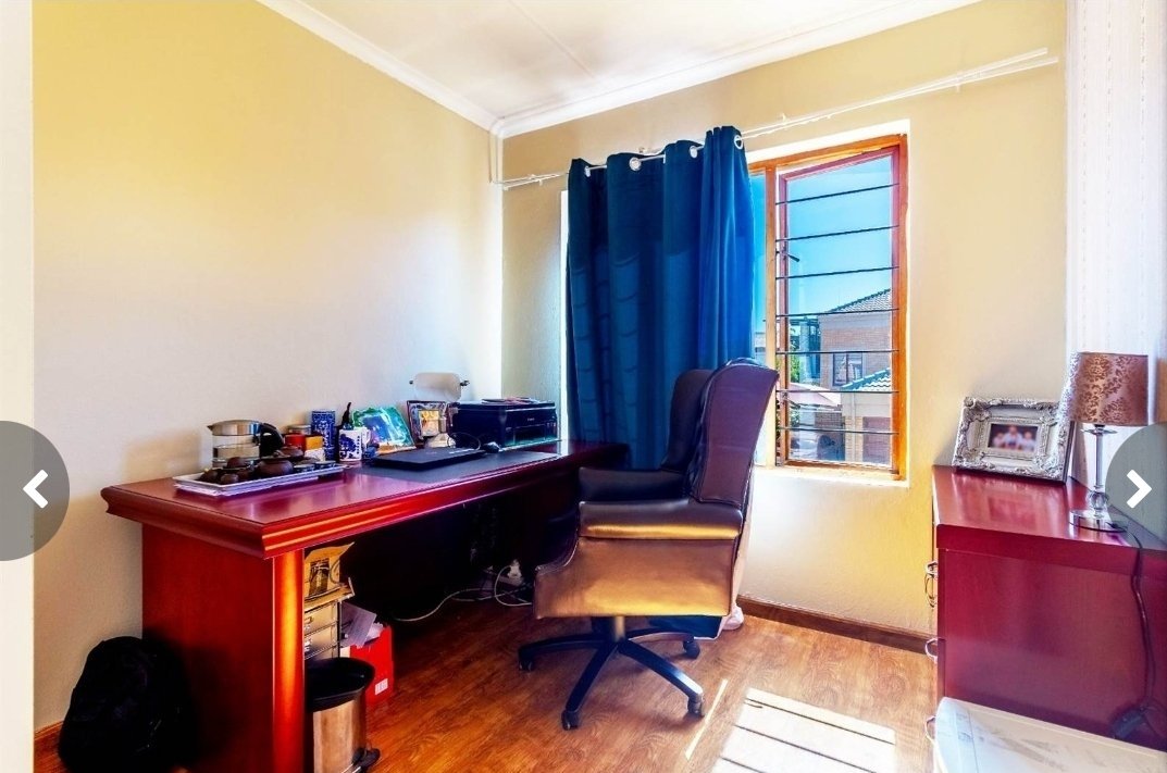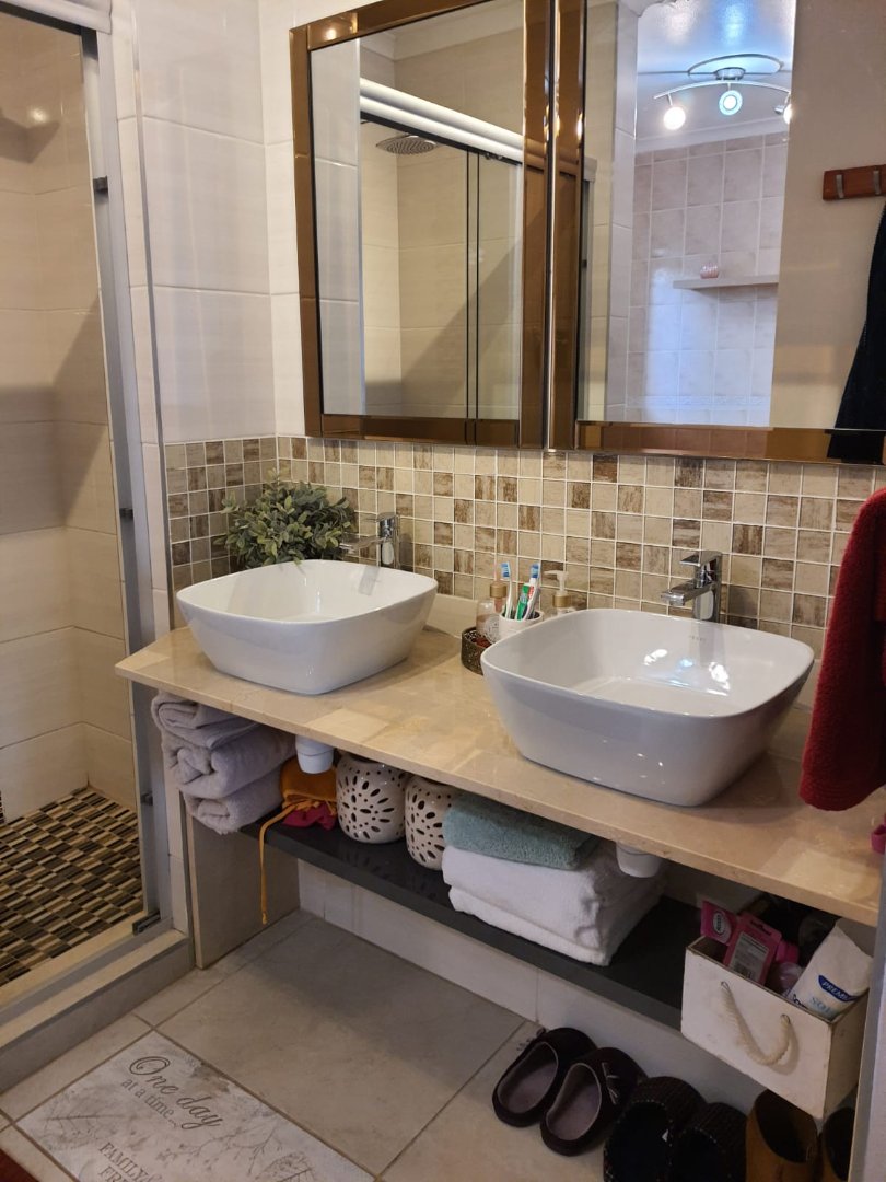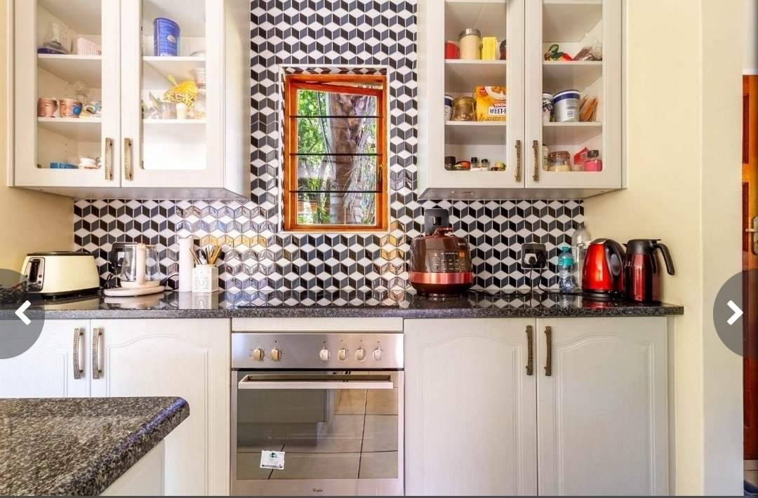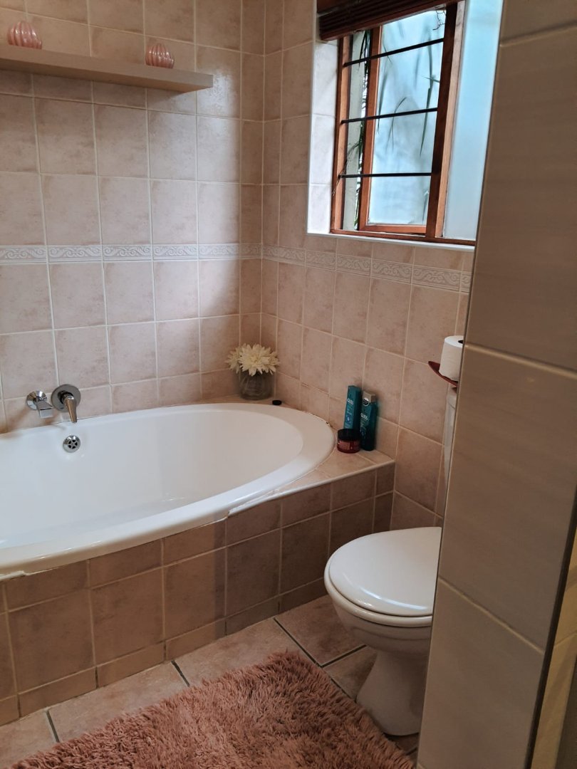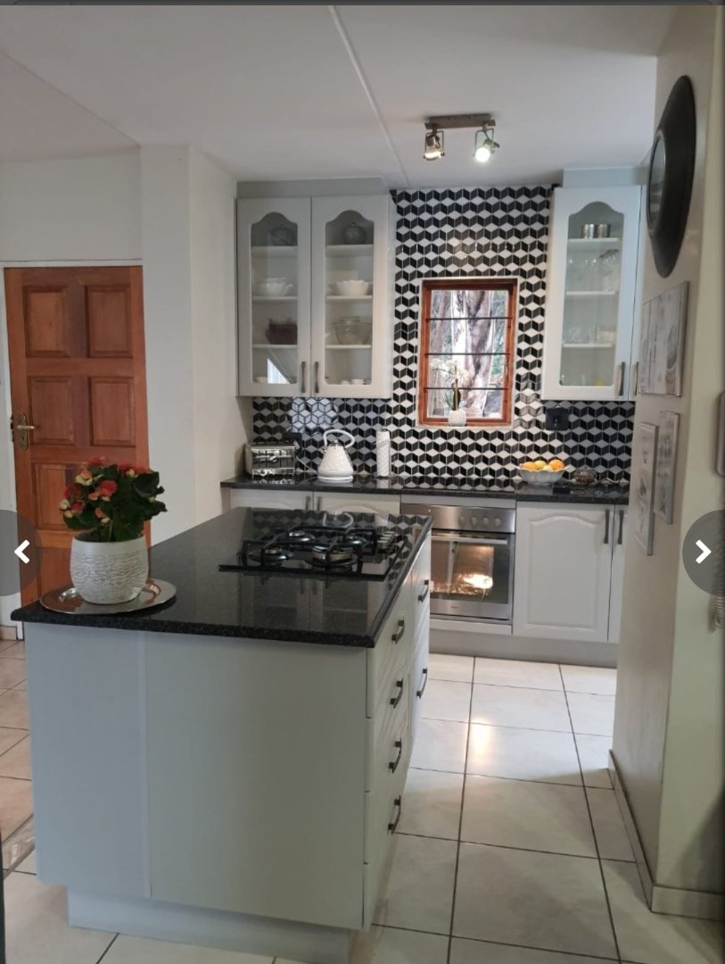 The dining room opens out to a large wraparound garden, currently a blank canvas, but with the potential to be a quiet oasis in the midst of the Fourways hustle and bustle. Tall trees along the perimeter afford some privacy from the neighbours.