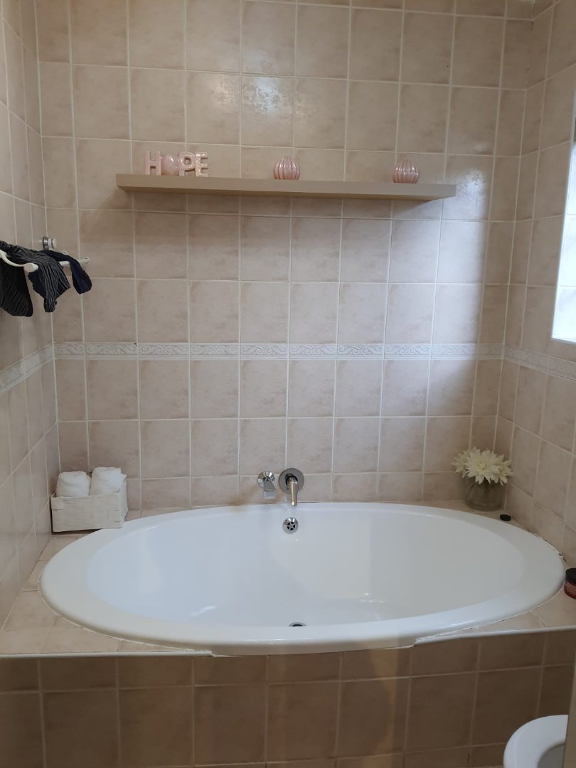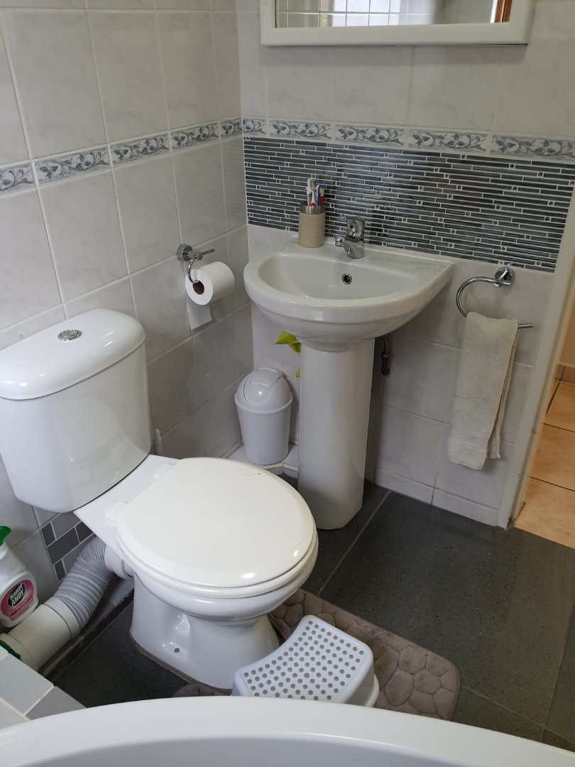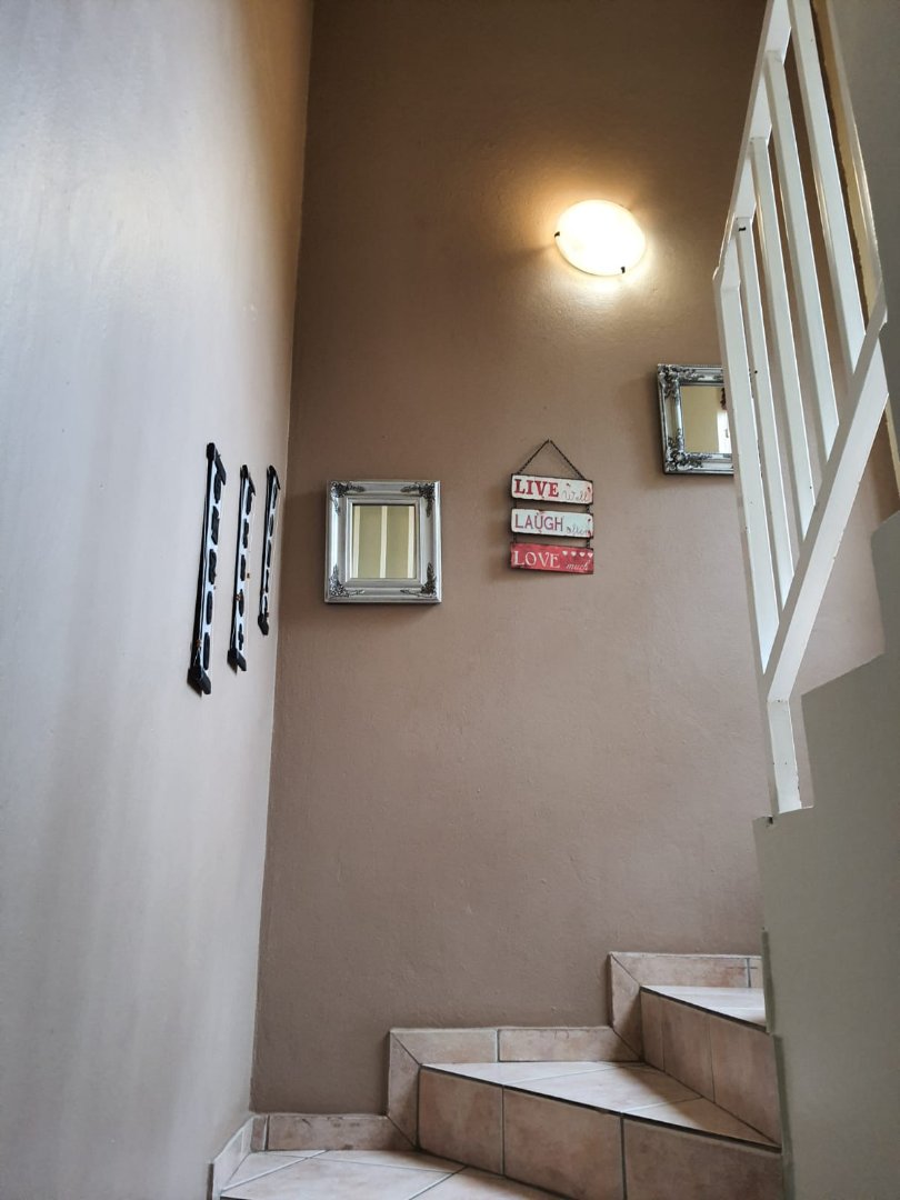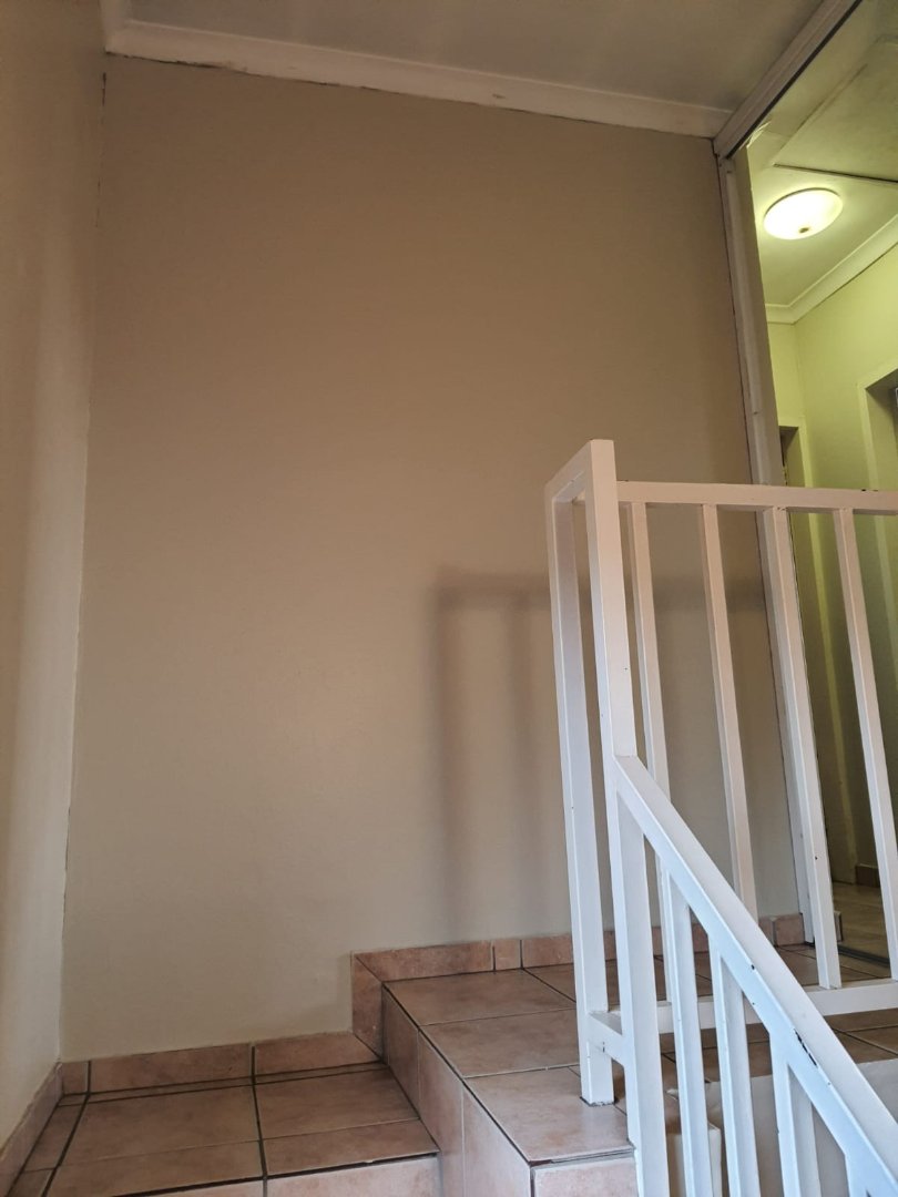 All the upstairs bedrooms have laminate floors and built in cupboards, with the main bedroom opening up to a balcony with a delightful view over the complex.