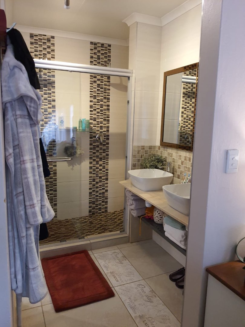 Downstairs comprises the living area where the open plan design allows for an easy flow between the lounge, dining room and kitchen. The lounge and dining room are separated by a beautiful gas fireplace built into a feature wall, creating a warm ambience. The adjacent kitchen has all you need to create your own culinary masterpieces whilst your guests can settle around the center island and keep you company. Boasting plenty of built in cabinets, granite tops, a scullery and two stoves (1 gas and 1 electric)