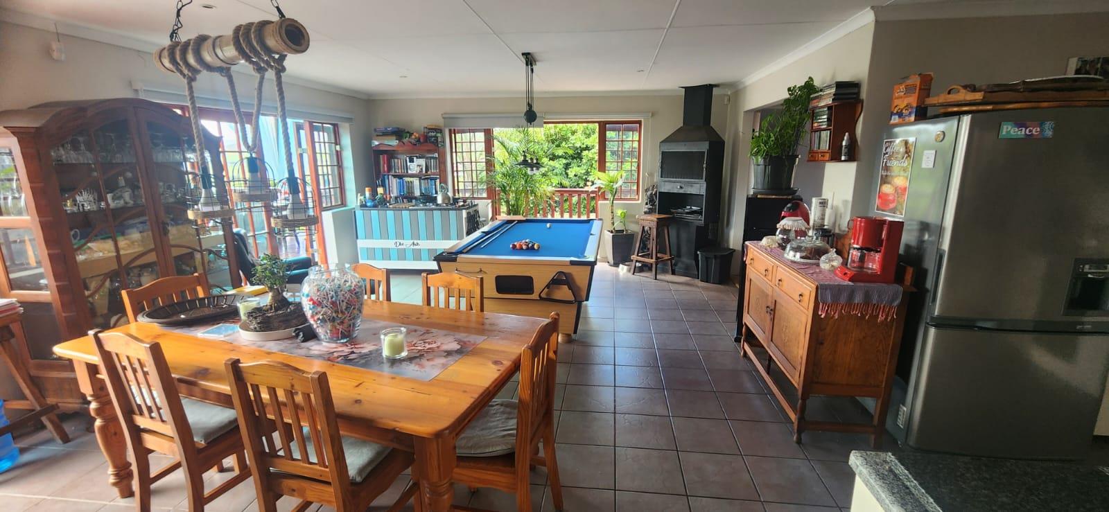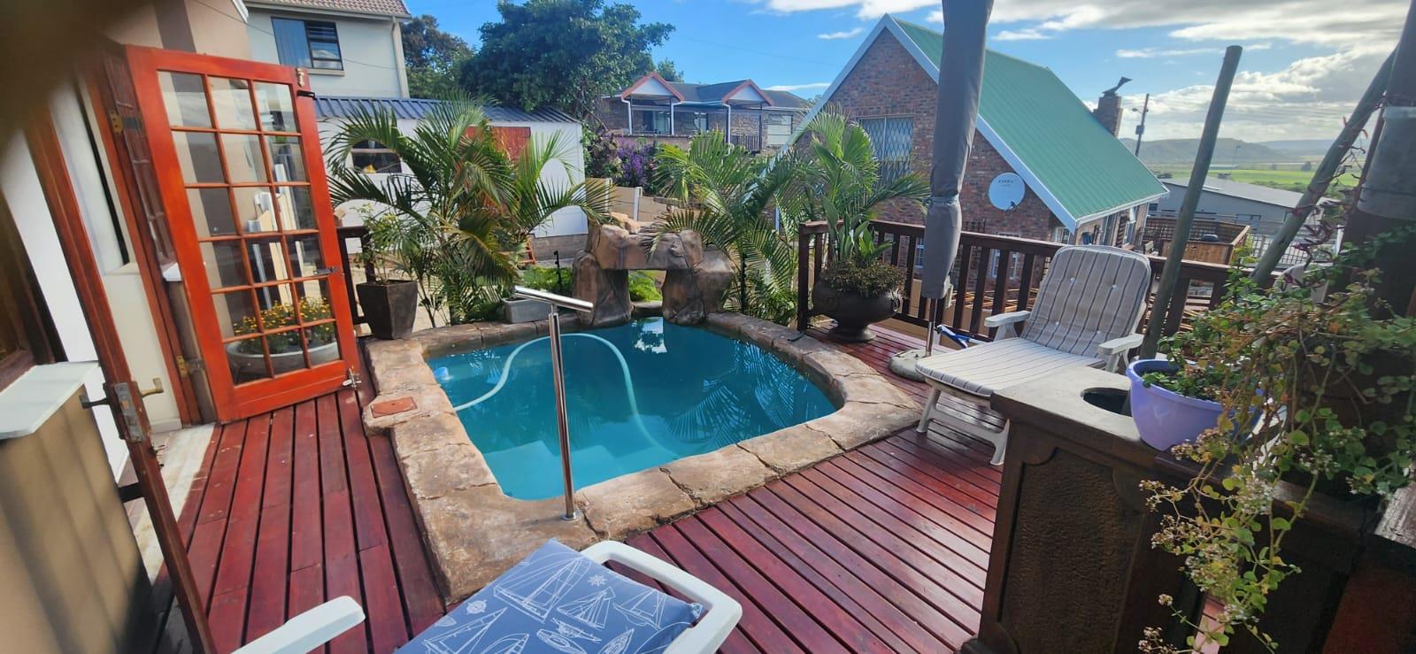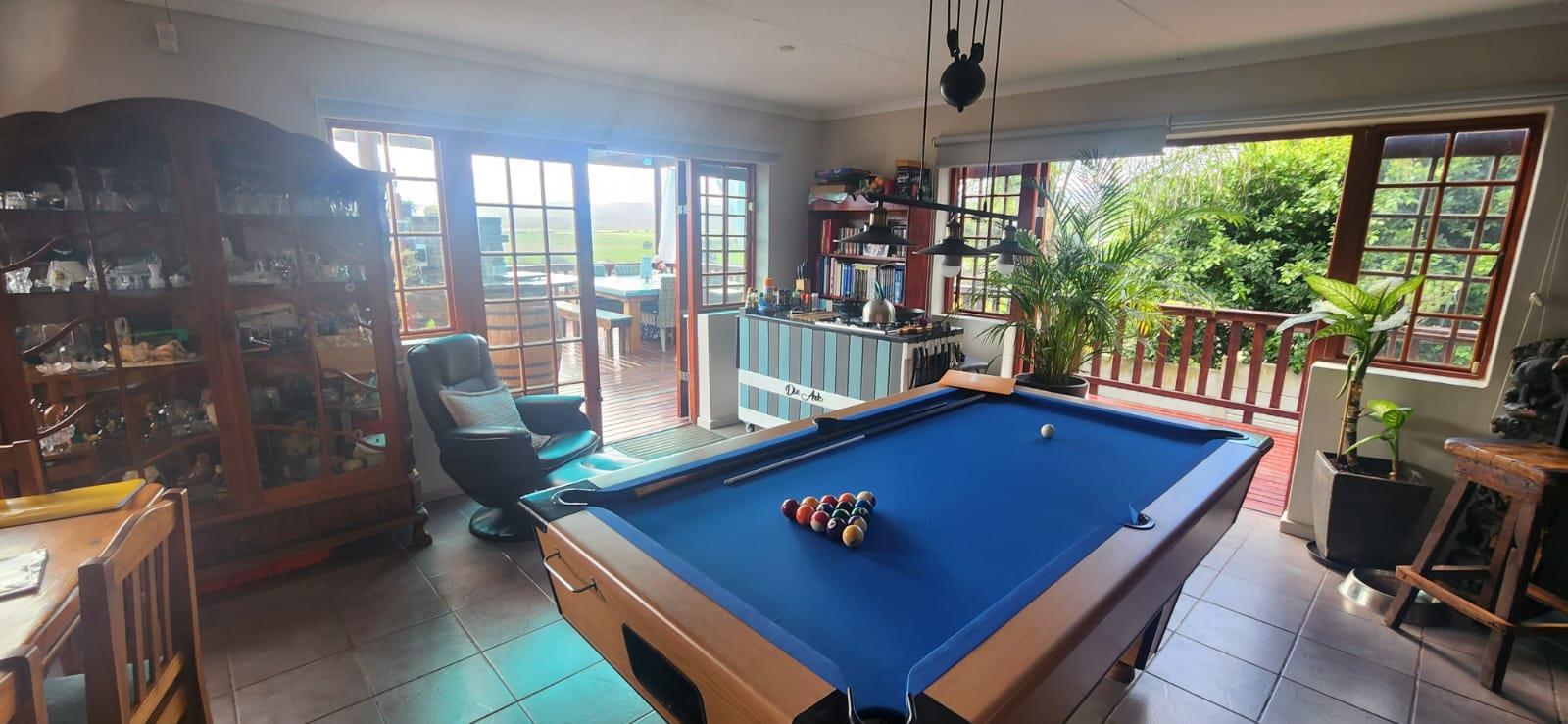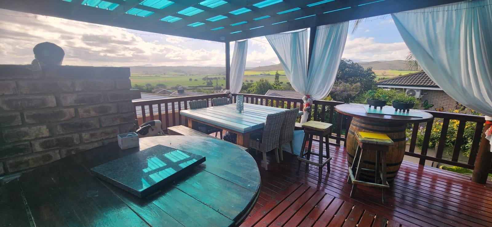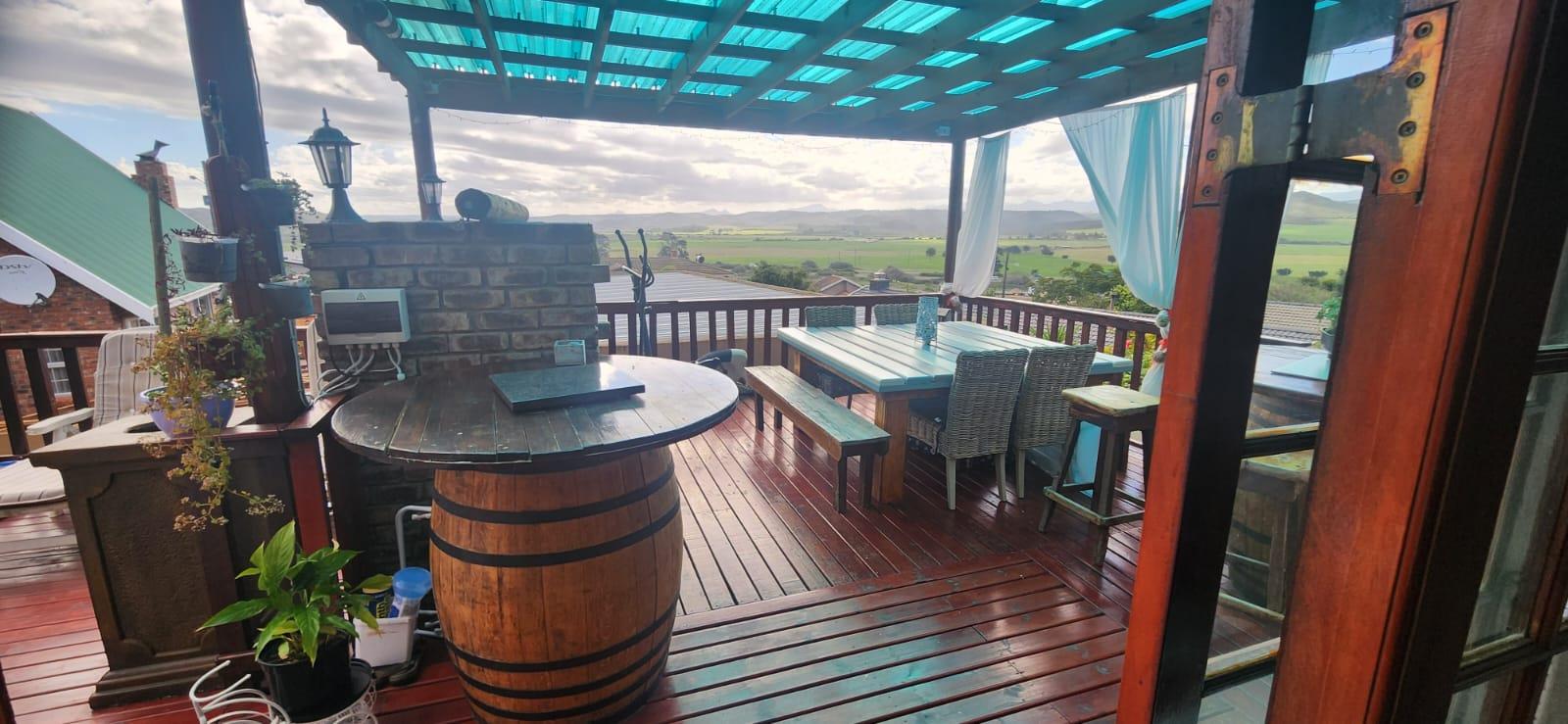 The main entertainment, living and dining area has an indoor fireplace or braai area. It is connected to a 60m2 deck with an outdoor braai and splash pool with spectacular views of farms and distant mountains.