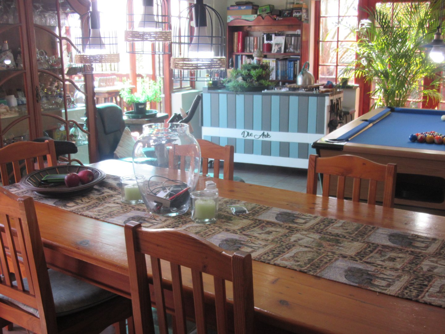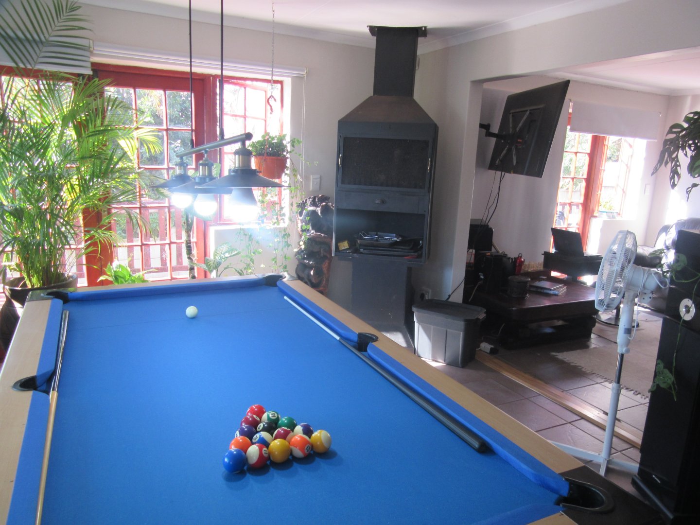 Dining area connected with lounge and separate is family room with indoor and outdoor braai area .