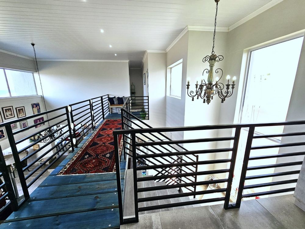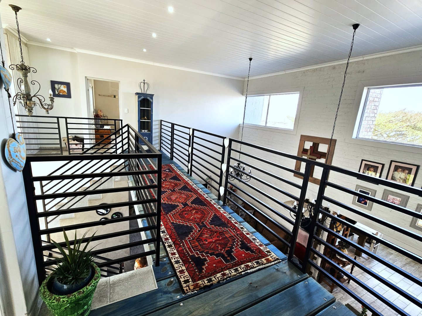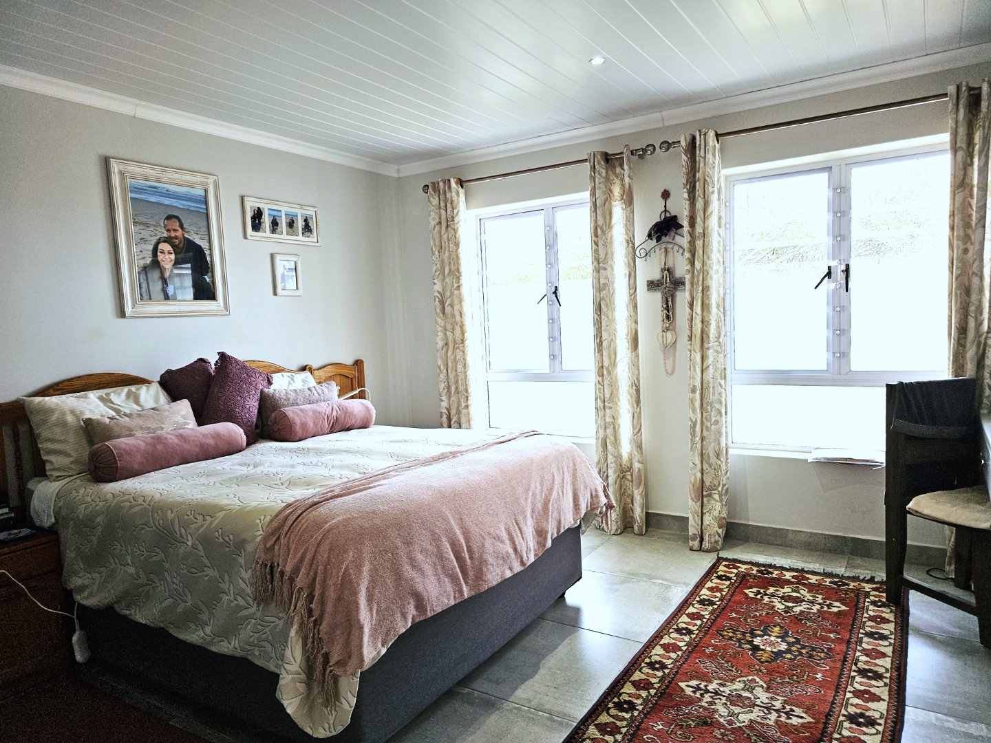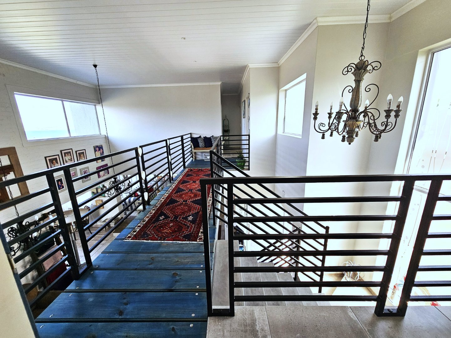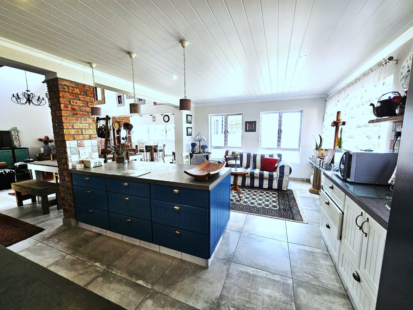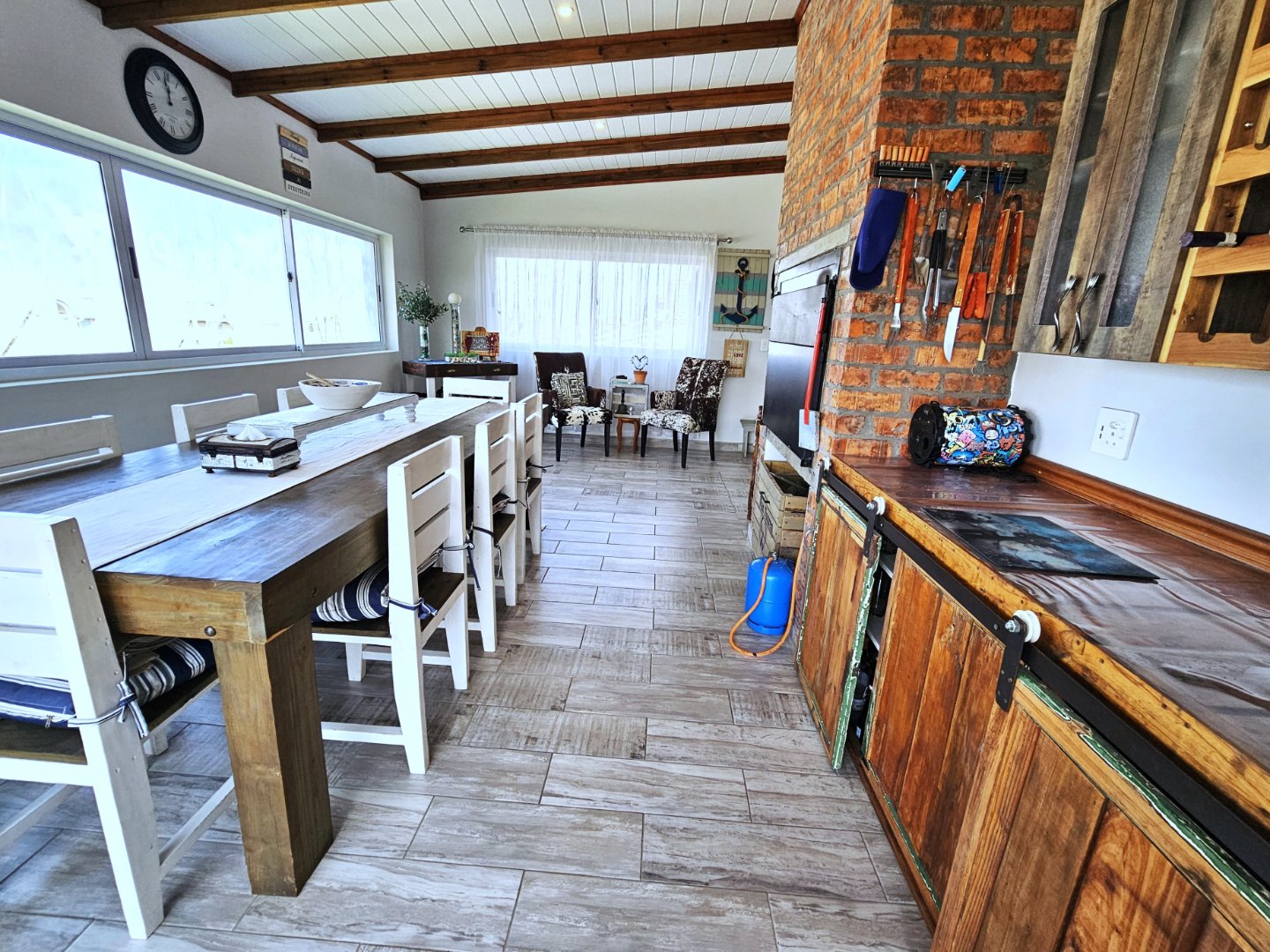 Flowing seamlessly from the living area is the entertainment zone, featuring a built-in braai and sliding stained-glass windows that perfectly frame the panoramic sea views — the ideal setting for relaxed evenings or vibrant gatherings.