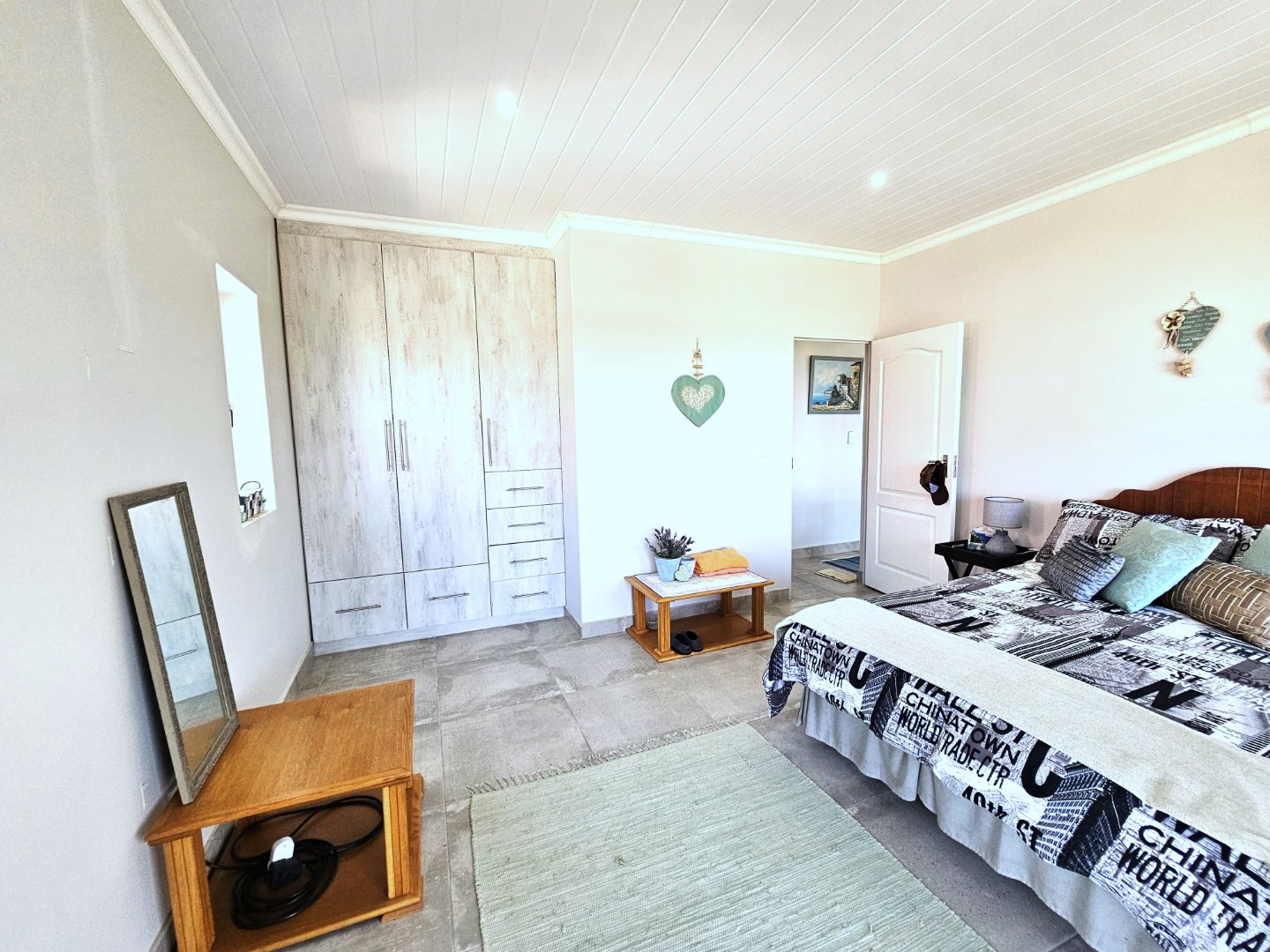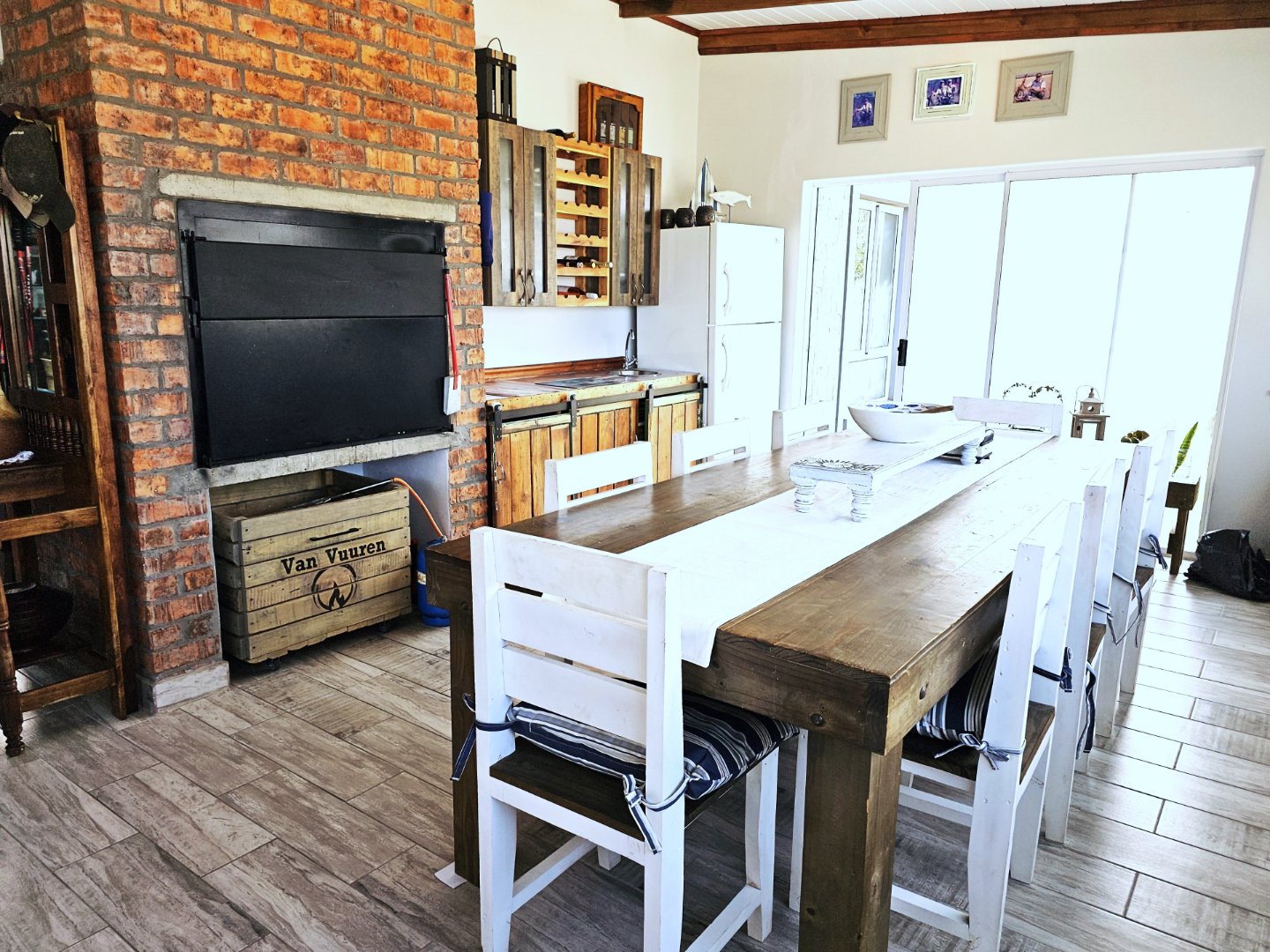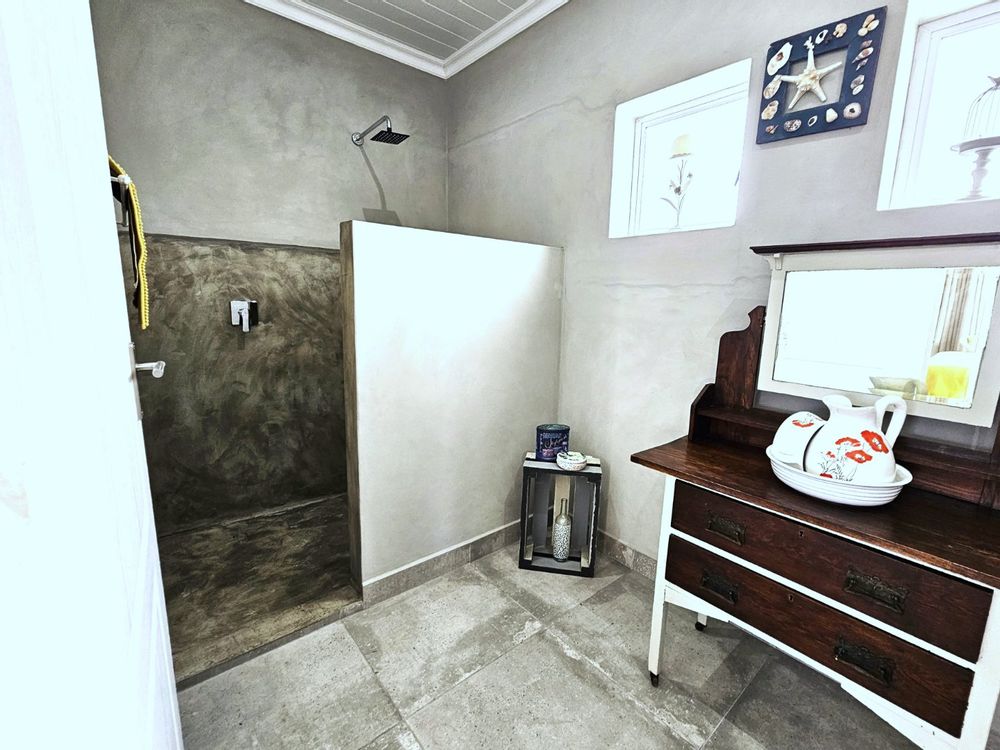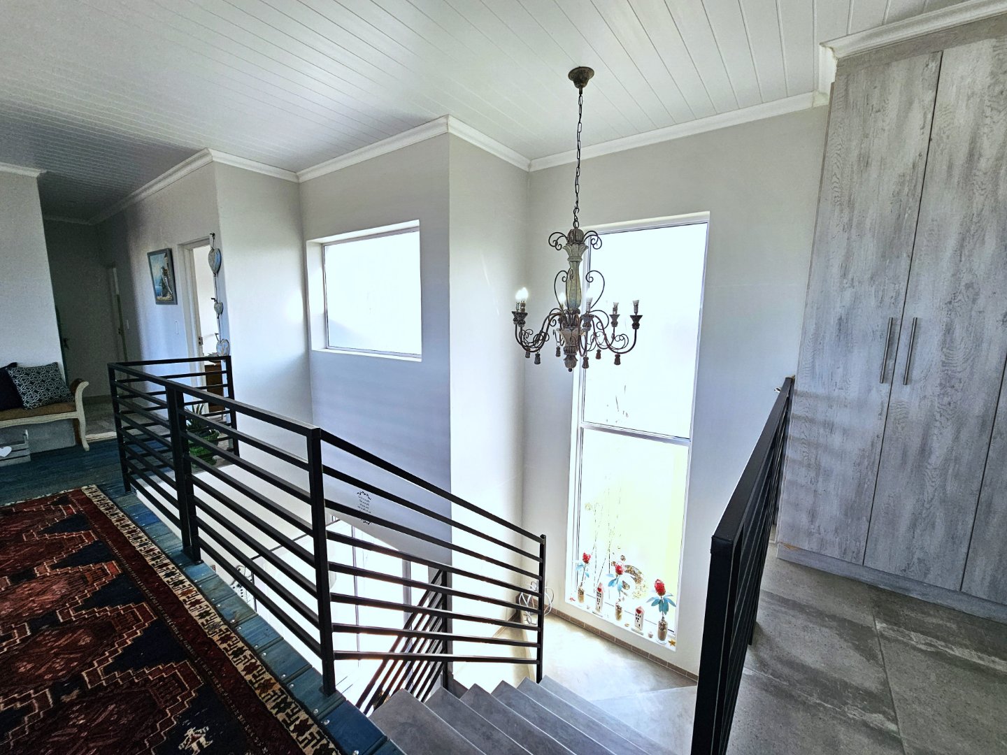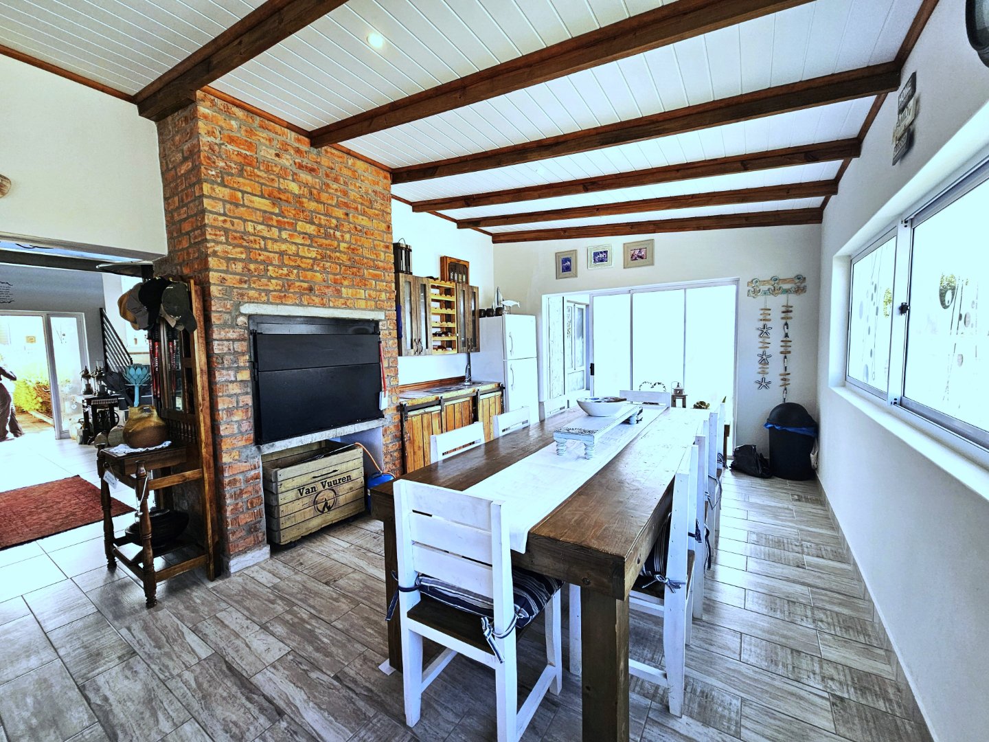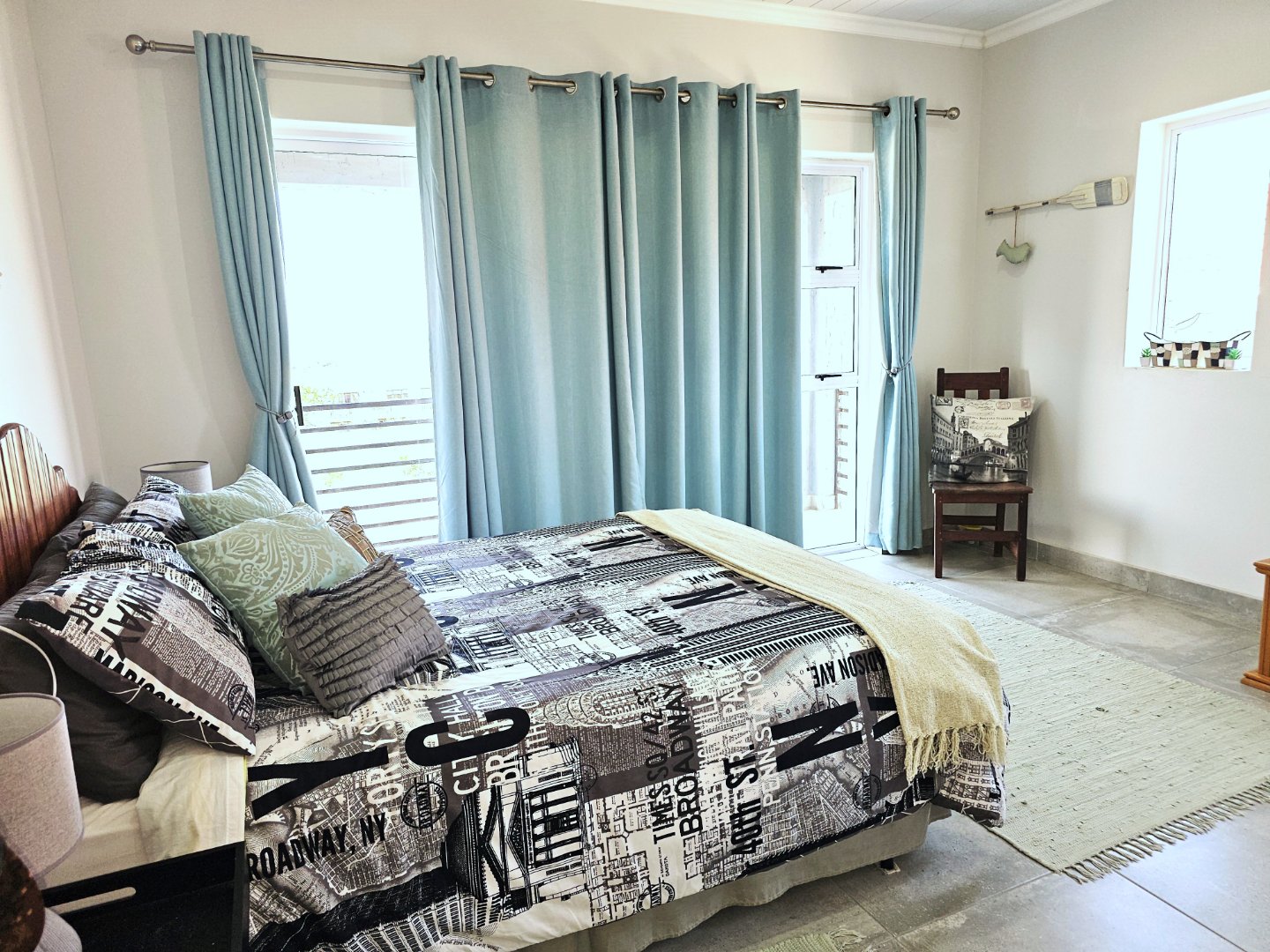 Flowing seamlessly from the living area is the entertainment zone, featuring a built-in braai and sliding stained-glass windows that perfectly frame the panoramic sea views — the ideal setting for relaxed evenings or vibrant gatherings.