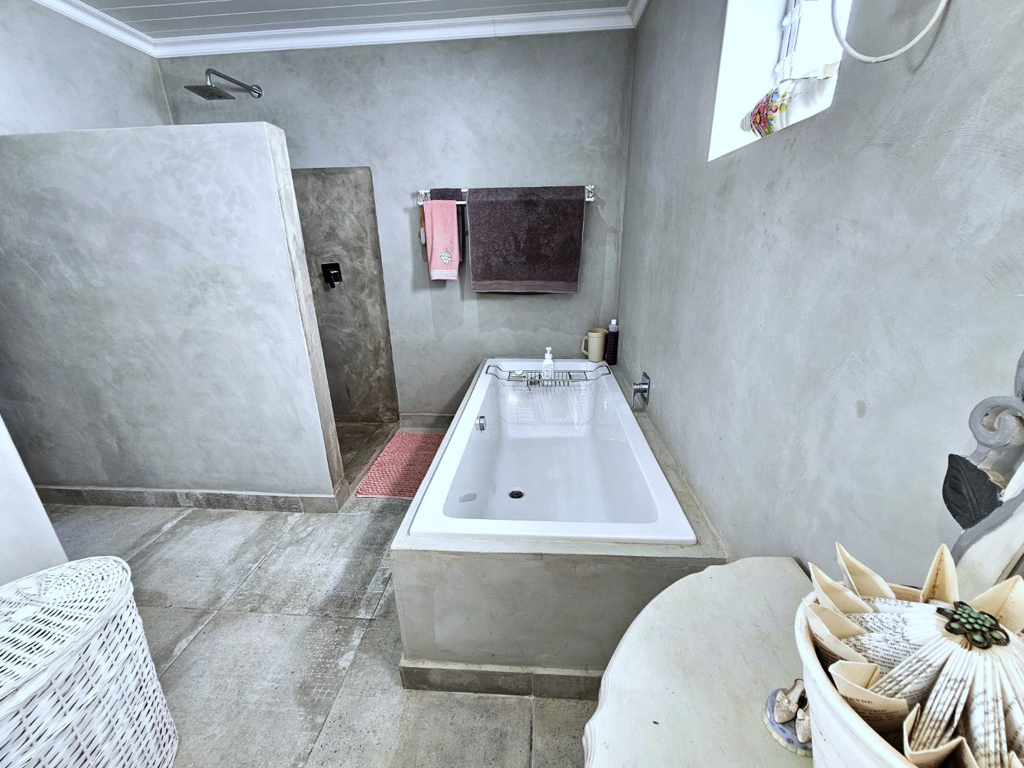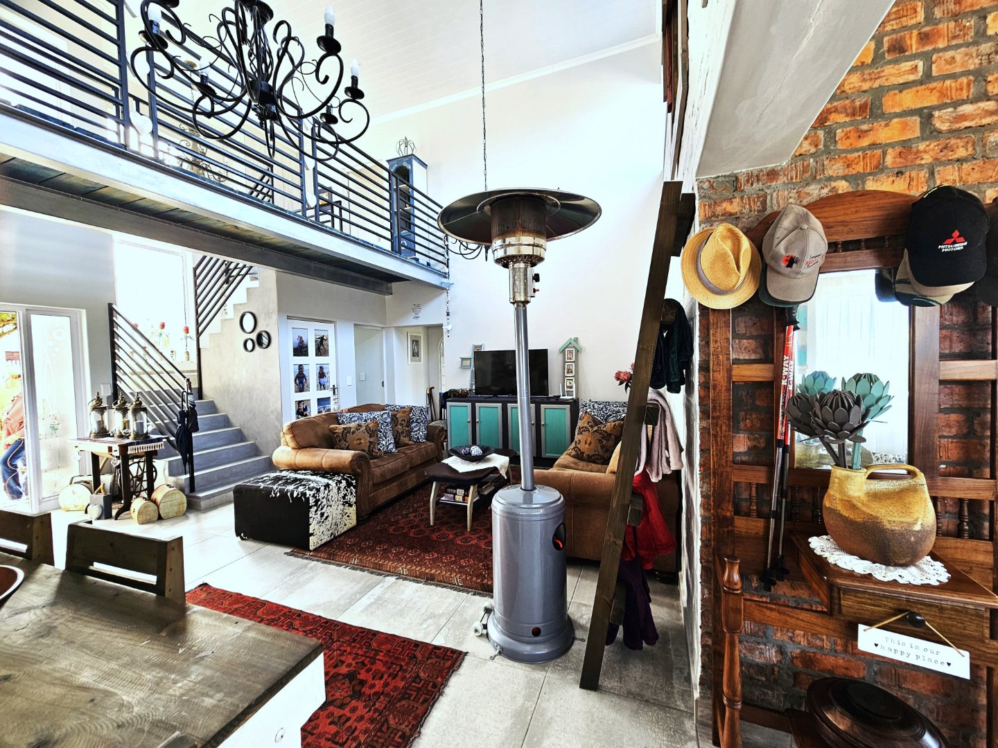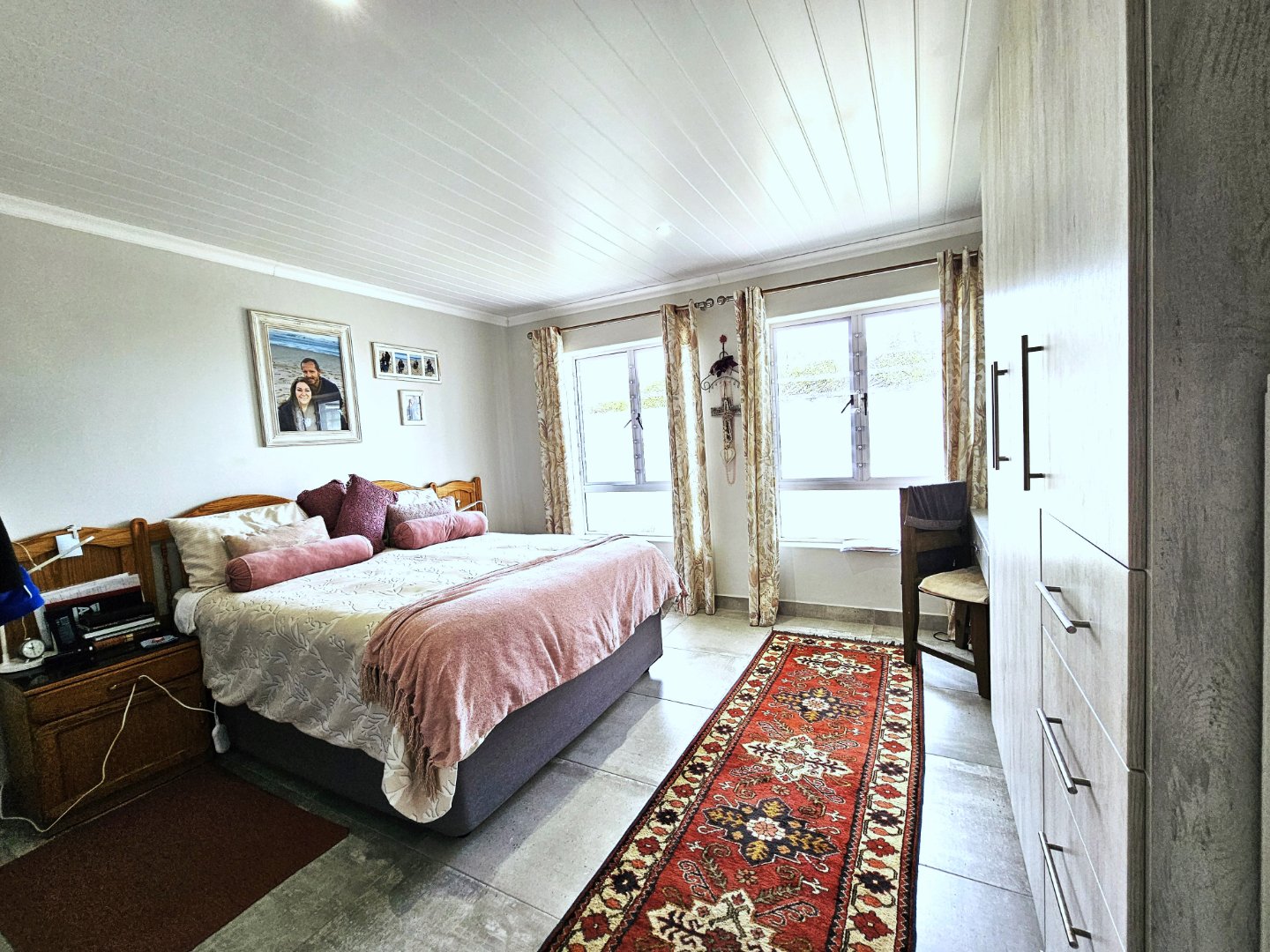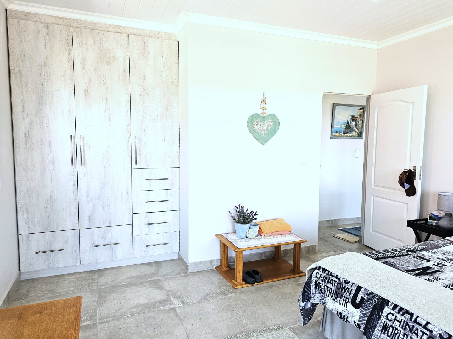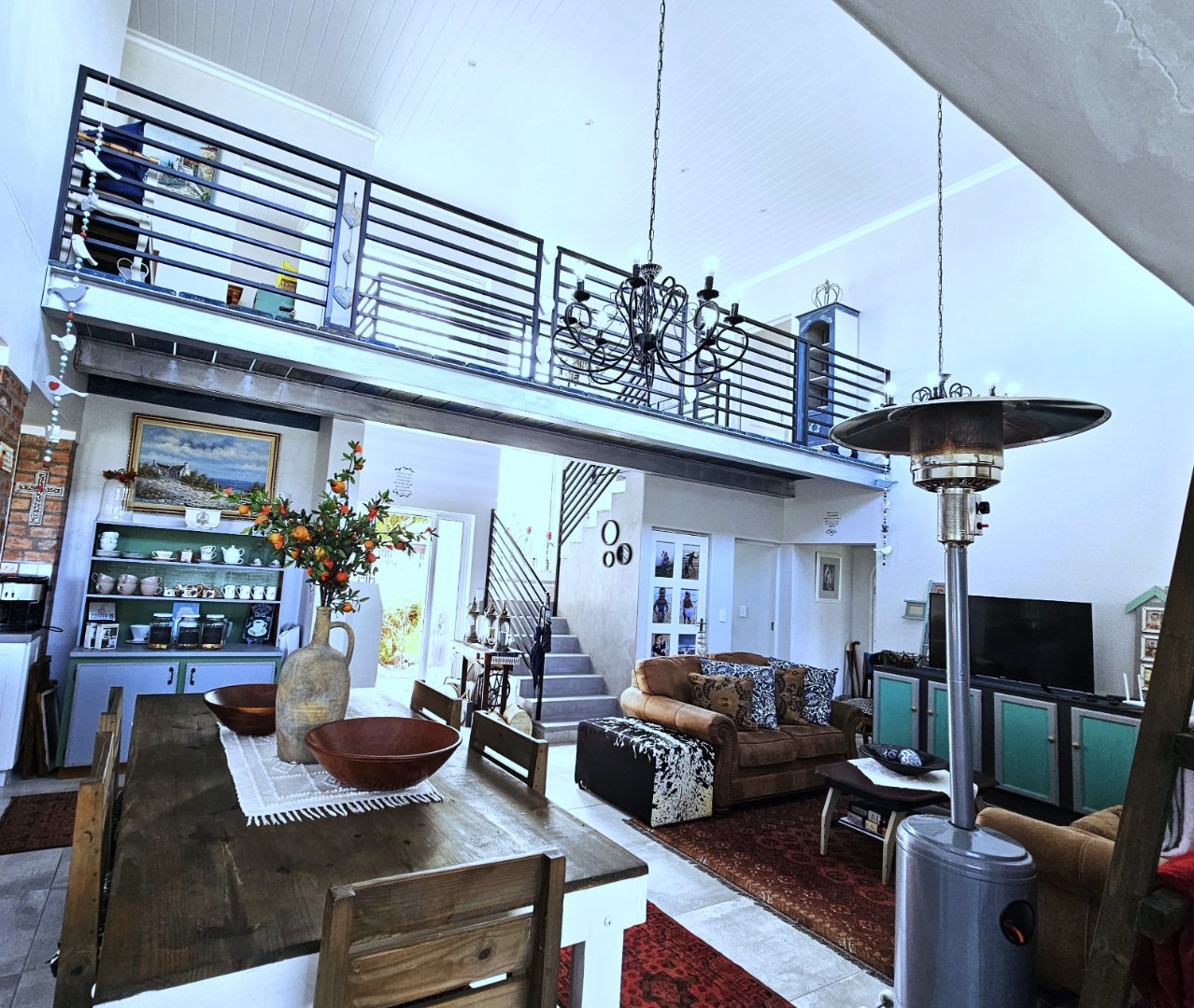 Flowing seamlessly from the living area is the entertainment zone, featuring a built-in braai and sliding stained-glass windows that perfectly frame the panoramic sea views — the ideal setting for relaxed evenings or vibrant gatherings.