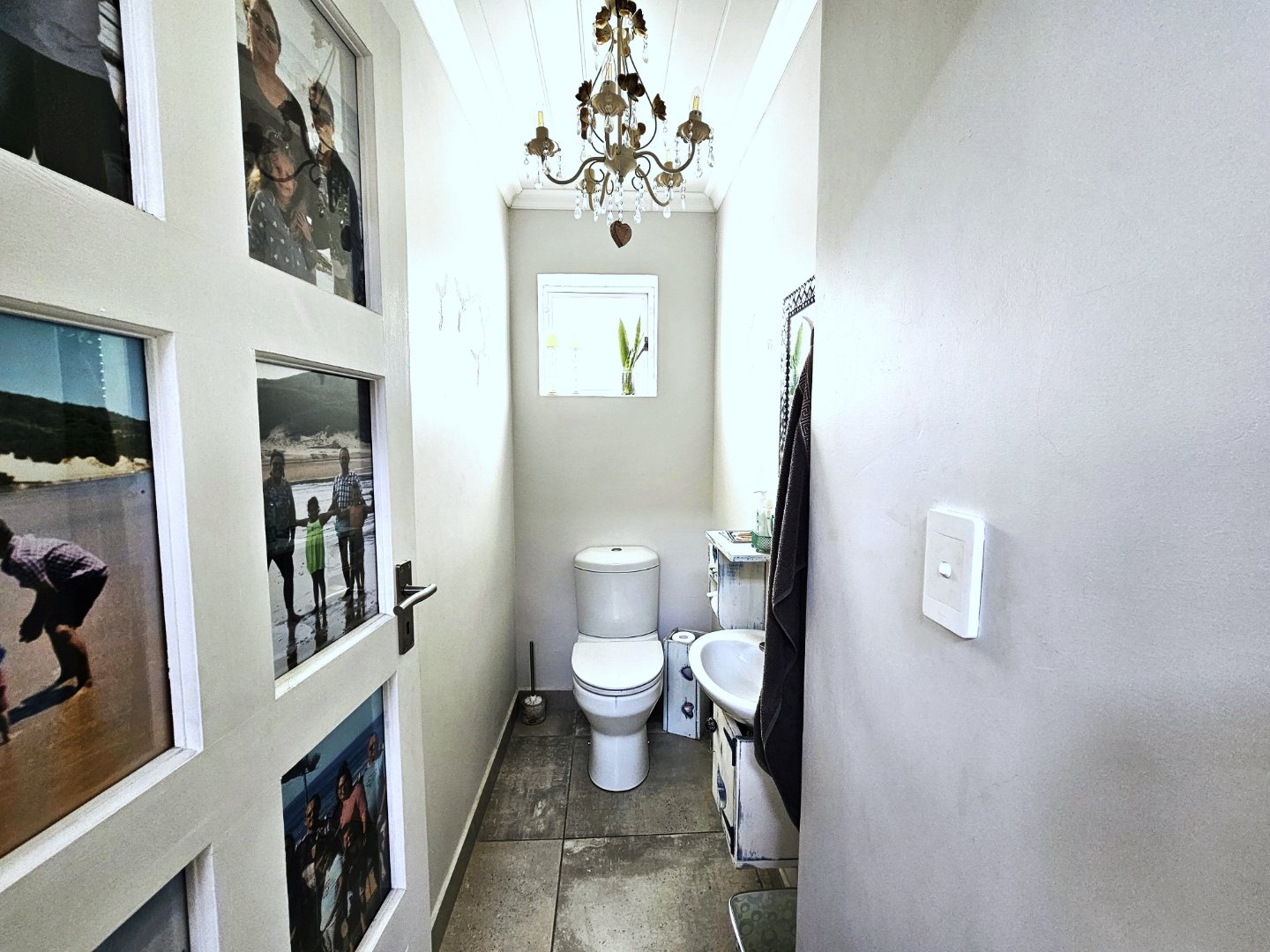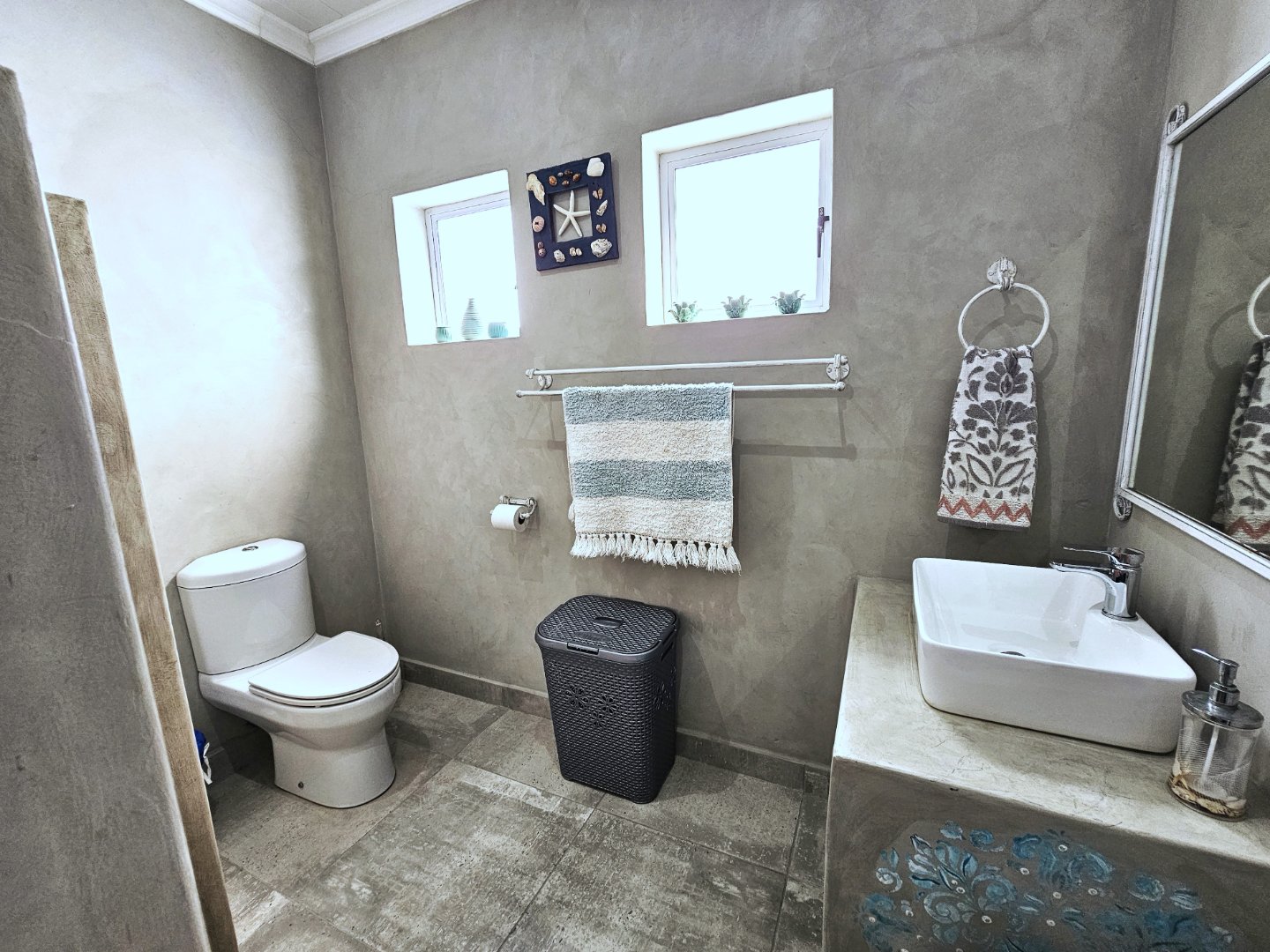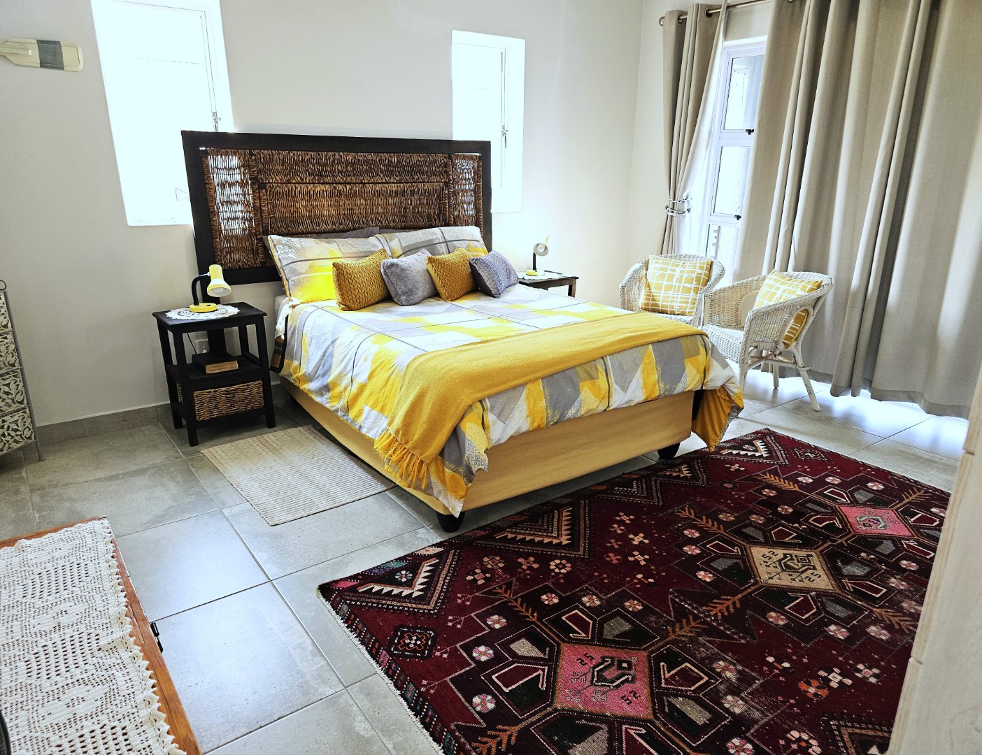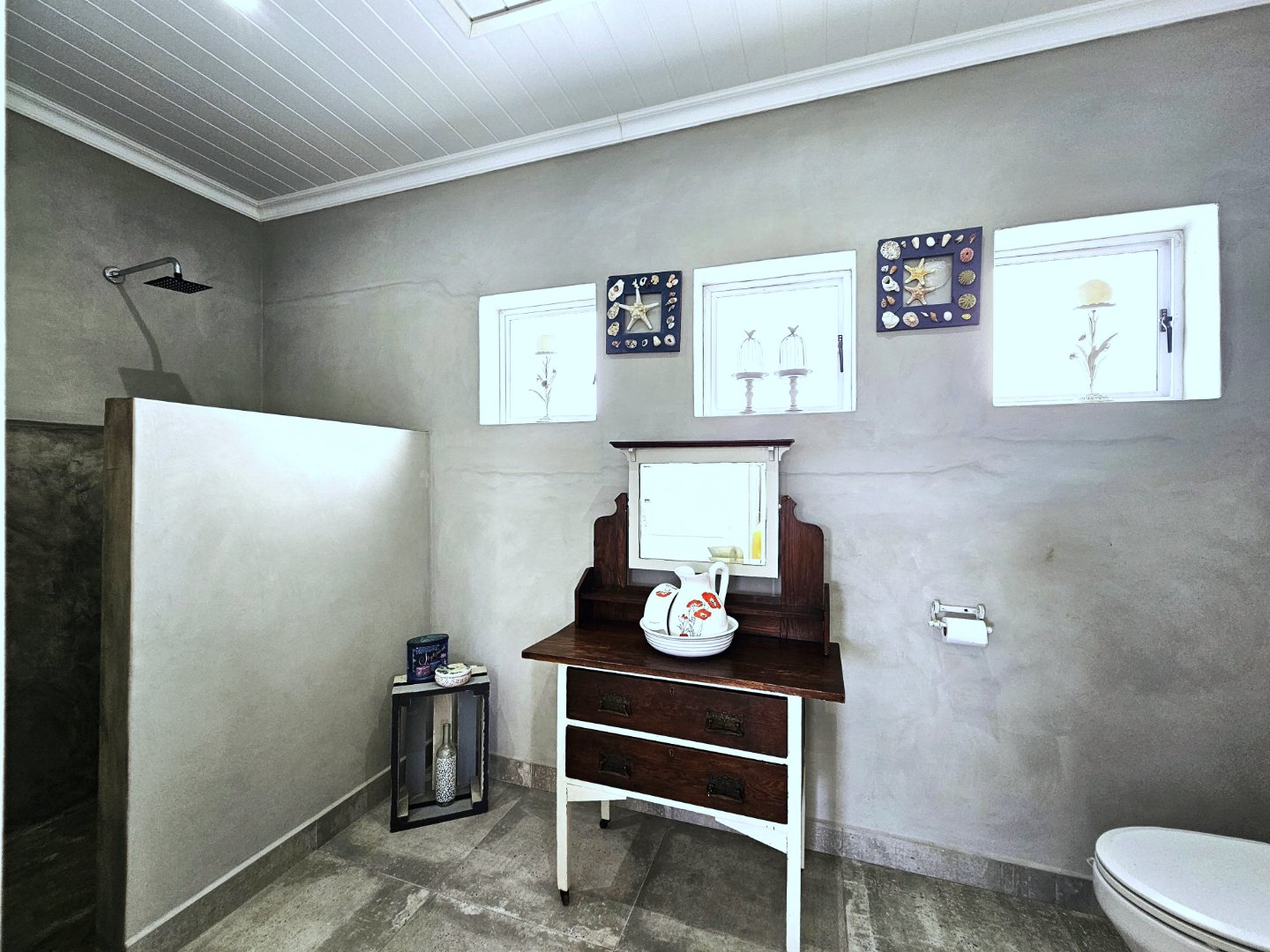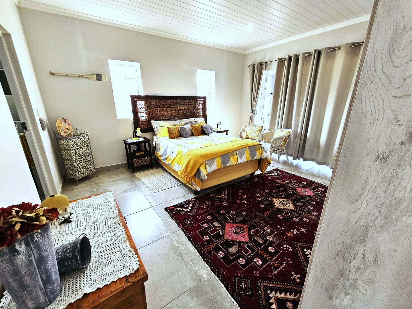 Flowing seamlessly from the living area is the entertainment zone, featuring a built-in braai and sliding stained-glass windows that perfectly frame the panoramic sea views — the ideal setting for relaxed evenings or vibrant gatherings.