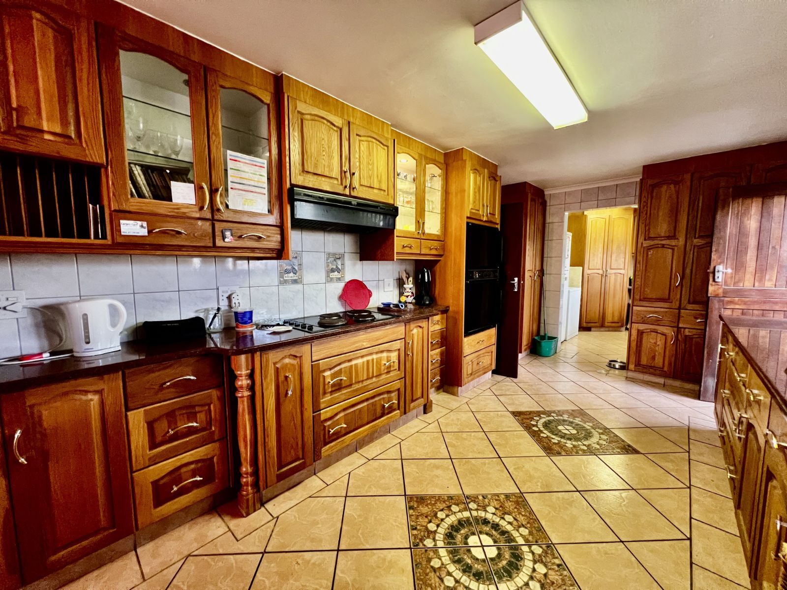 This 4-bedroom, 2-bathroom home features a spacious layout with a semi-open flow between the kitchen and dining area, making it easy to stay connected while entertaining. The kitchen offers wooden cupboards, quality countertops, a practical rectangular layout, and a separate scullery area.