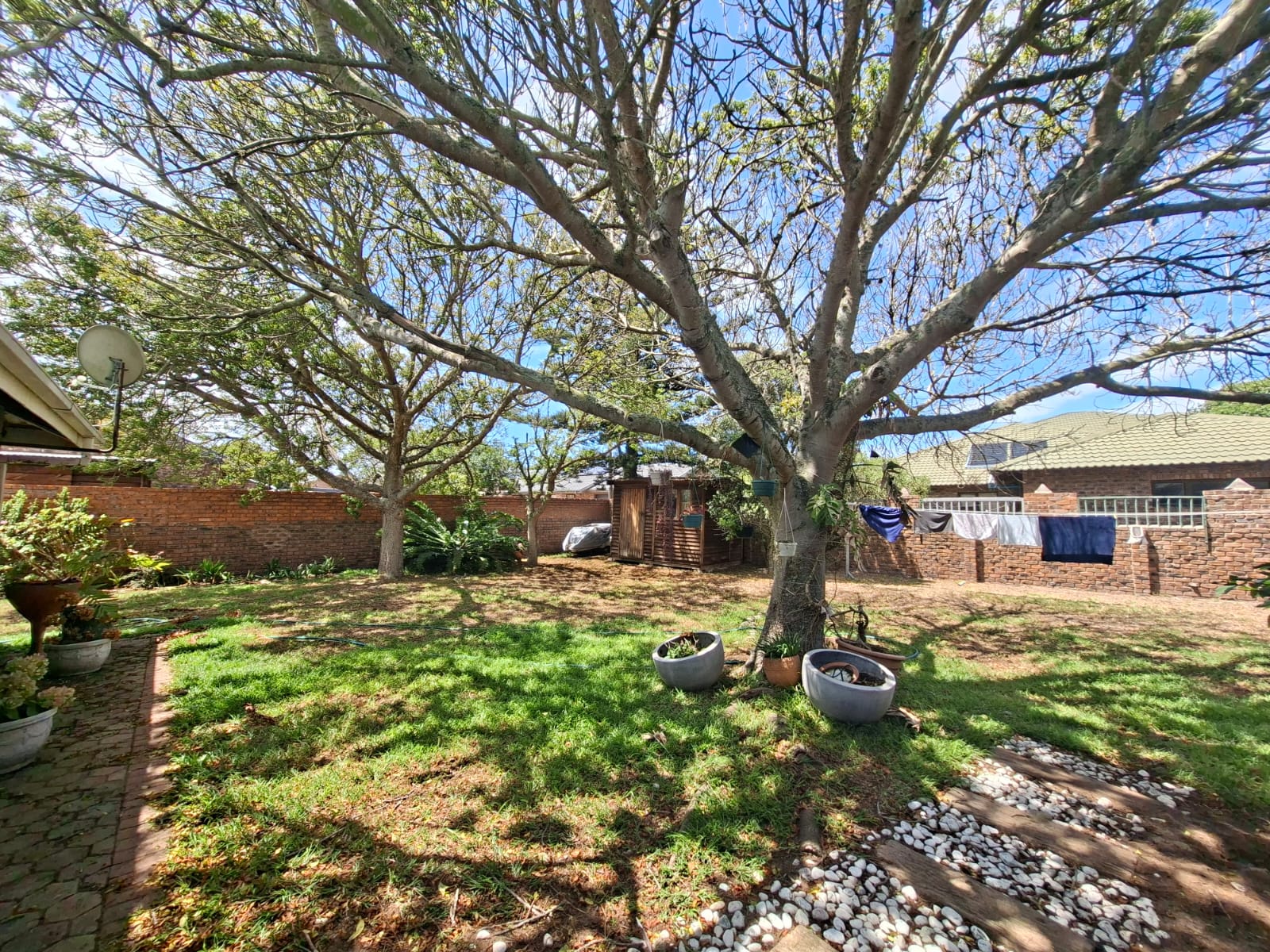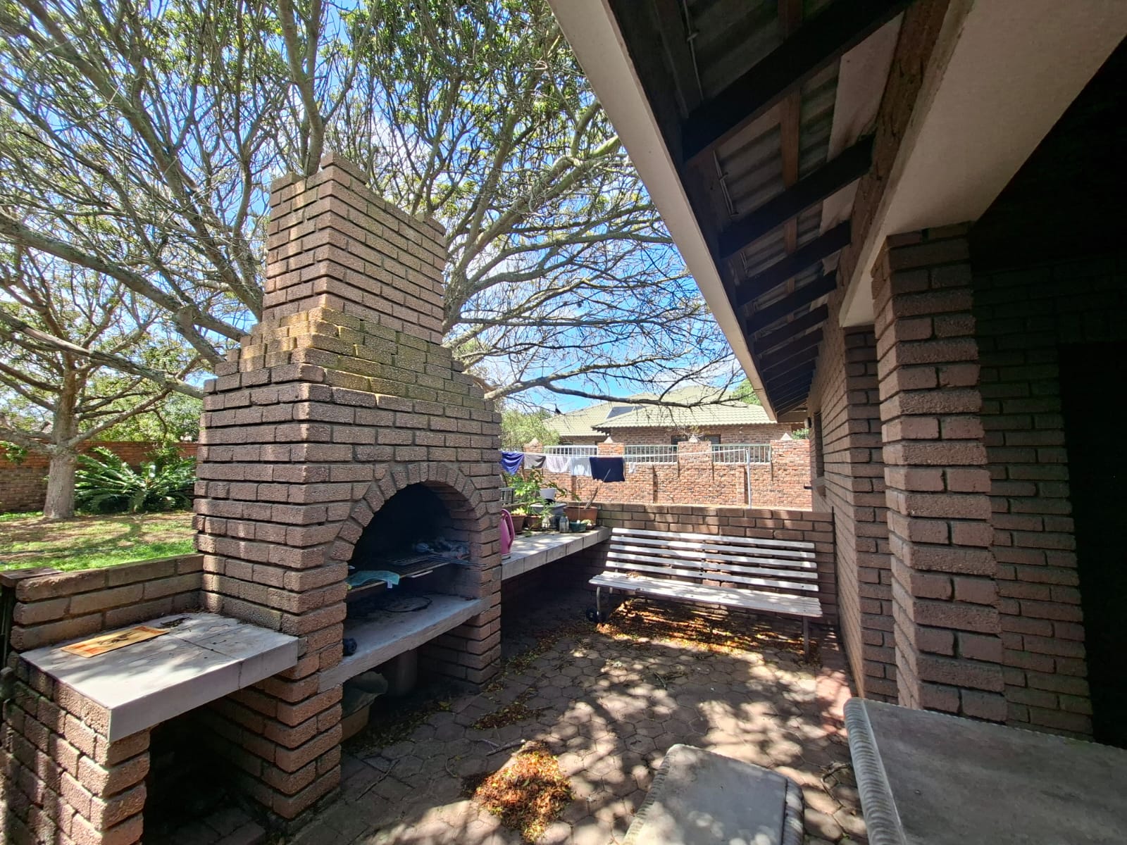 The home is set in a beautifully established, tree-filled garden featuring a braai area and a Wendy house, creating the ideal setting for relaxed outdoor entertaining and family enjoyment.