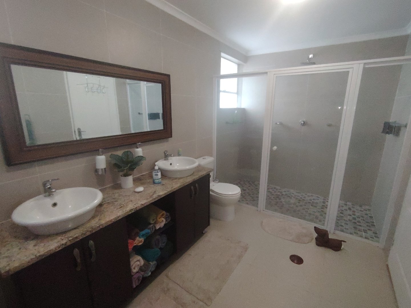 Step into this solid and inviting family home offering comfort, space and convenience. A welcoming entrance leads to a large lounge with fireplace, huge windows and sliding doors opening to a undercover patio and secure garden. The gourmet open -plan kitchen with scullery flows seamlessly to the dining room, while the family room connects to a cosy entertainment area with built-in bar and braai, leading to patio and outside boma braai.