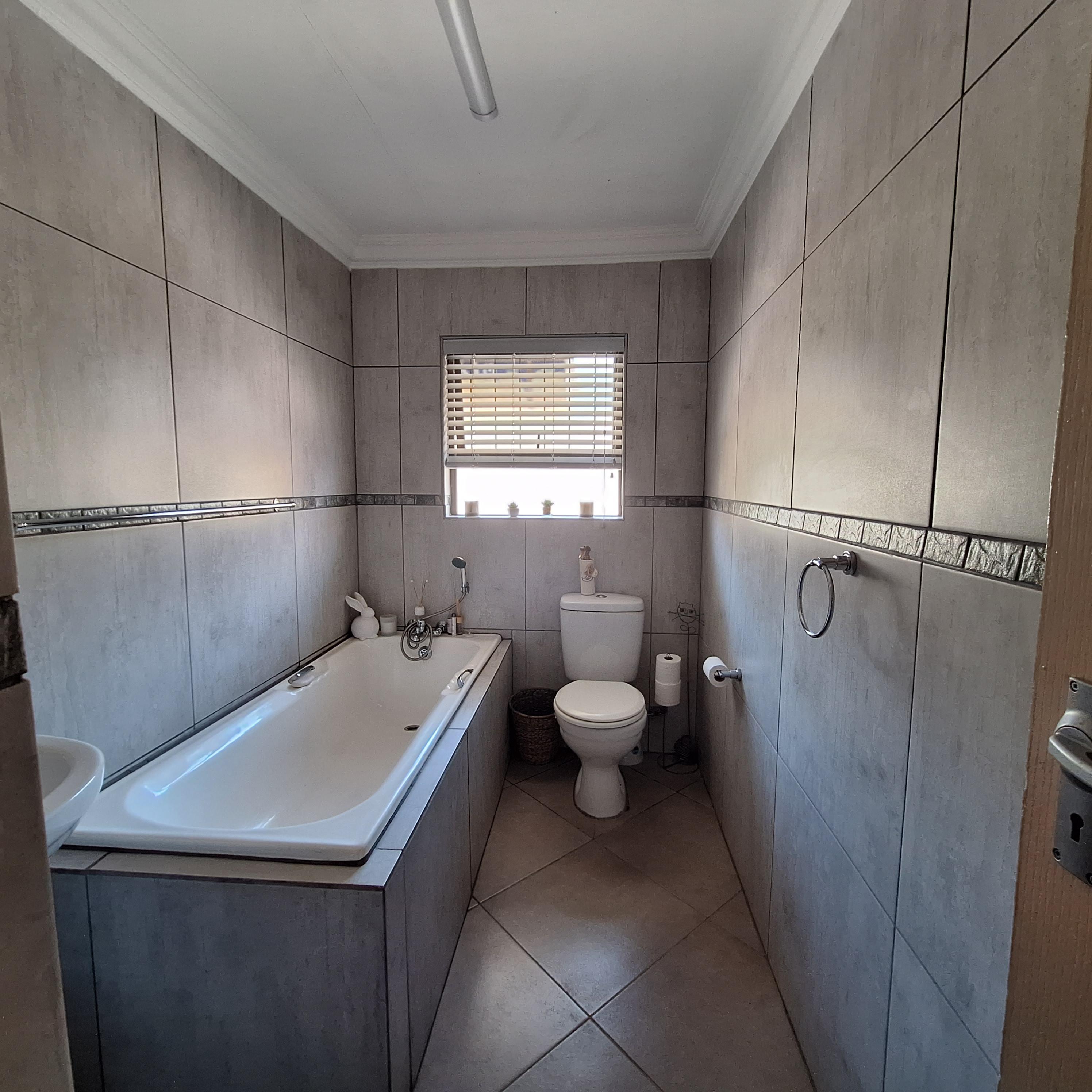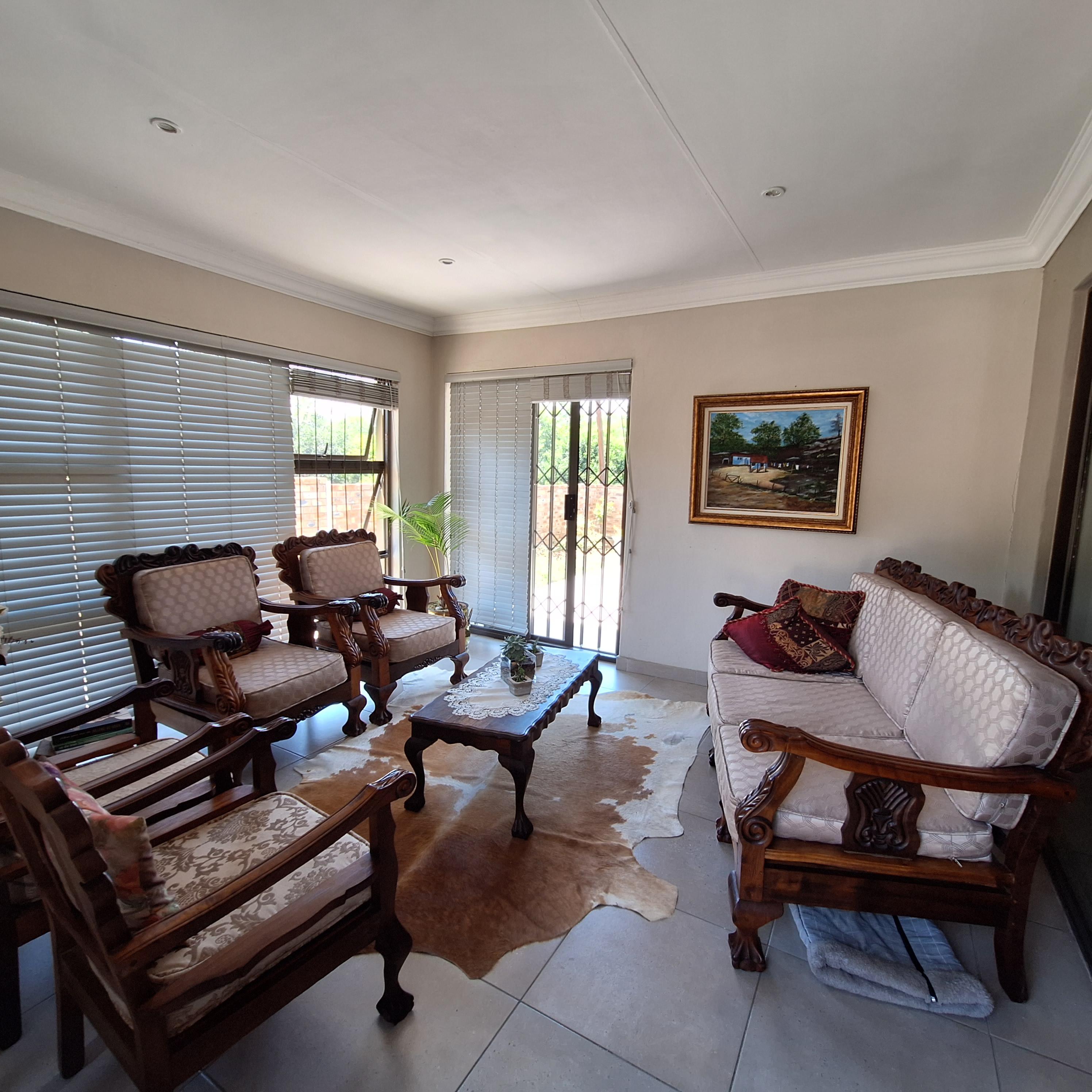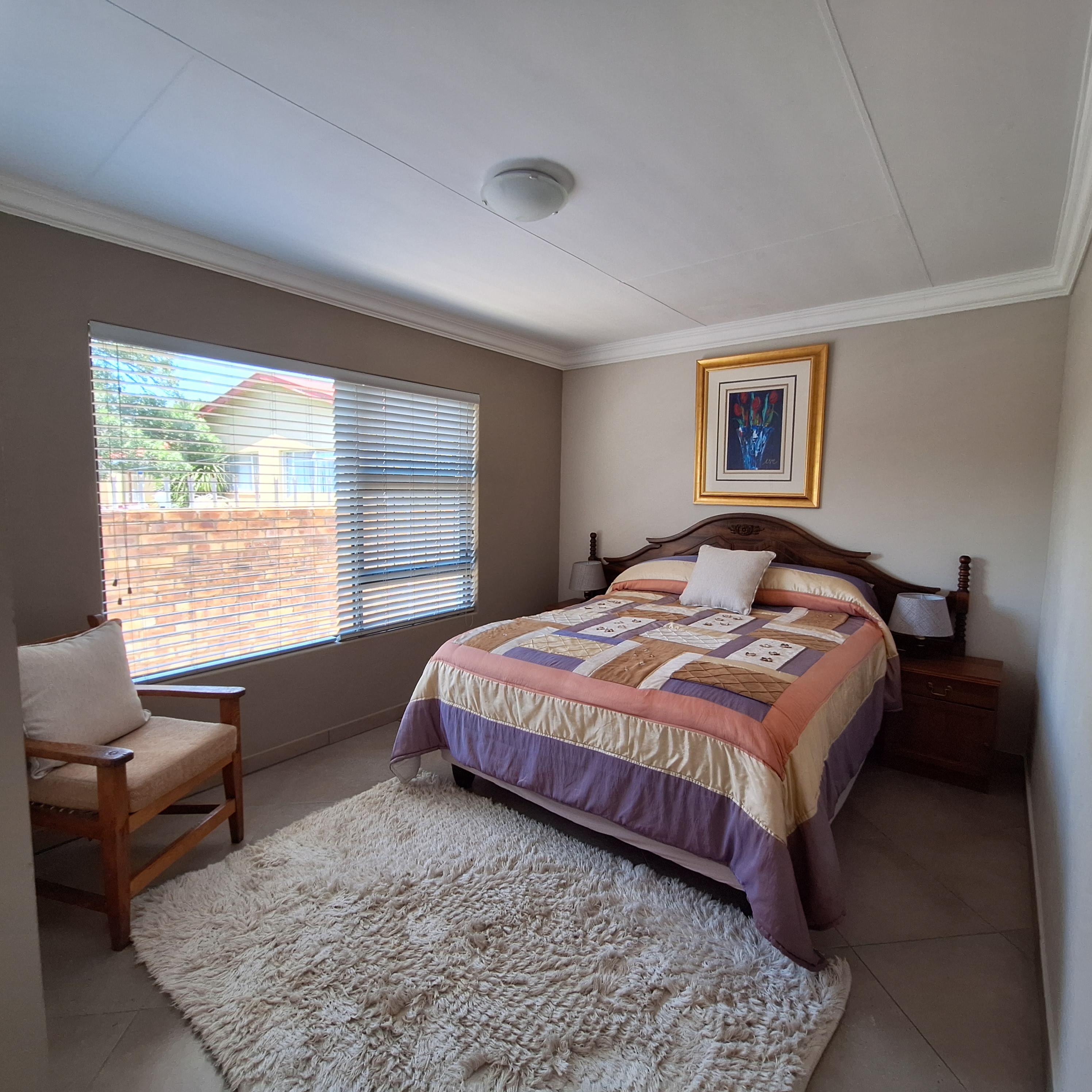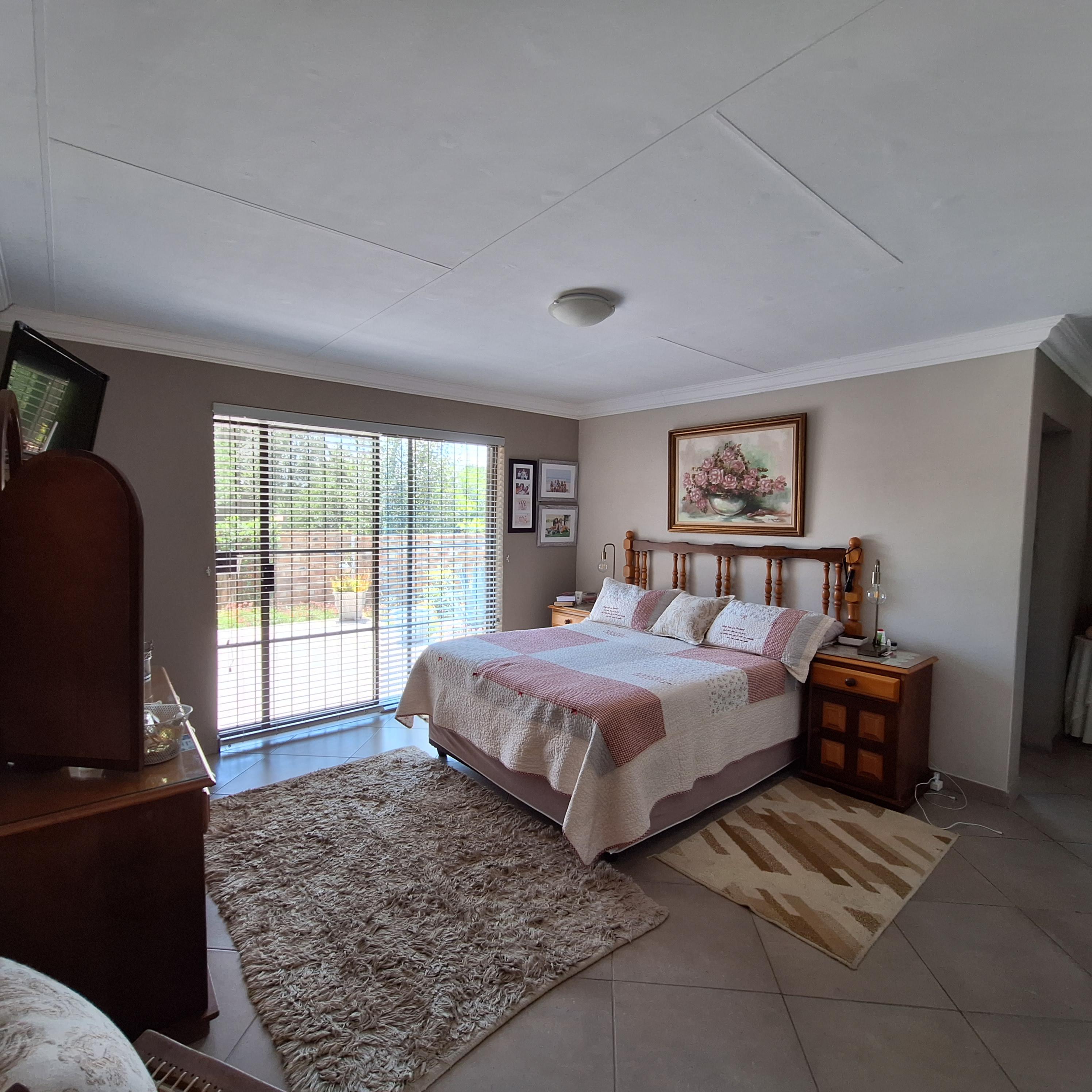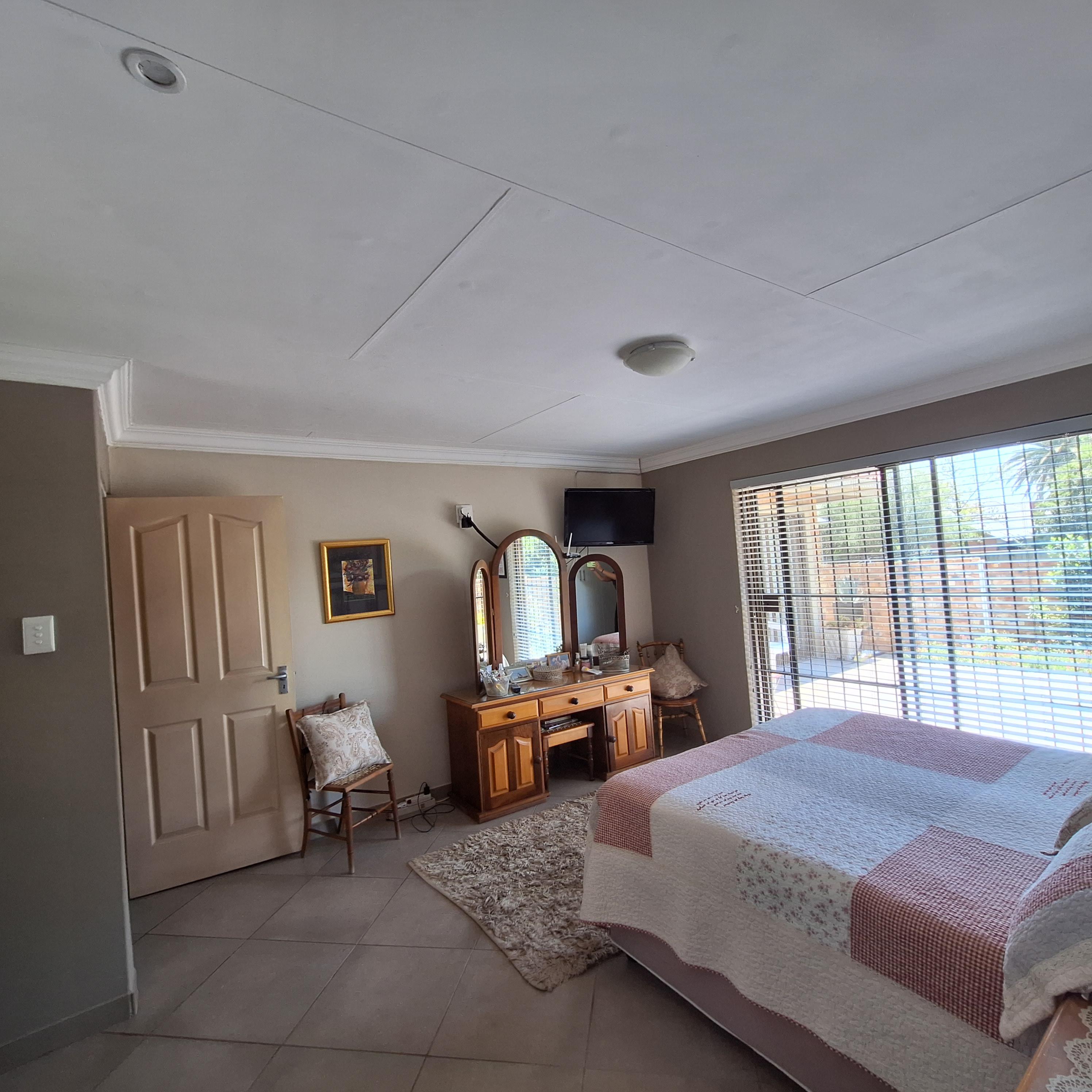 A separate laundry/scullery area leads to the enclosed braai (barbecue) area, offering convenience for outdoor entertaining. The entertainment area includes a fitted braai and opens to the rear, granting access to the double garage.
