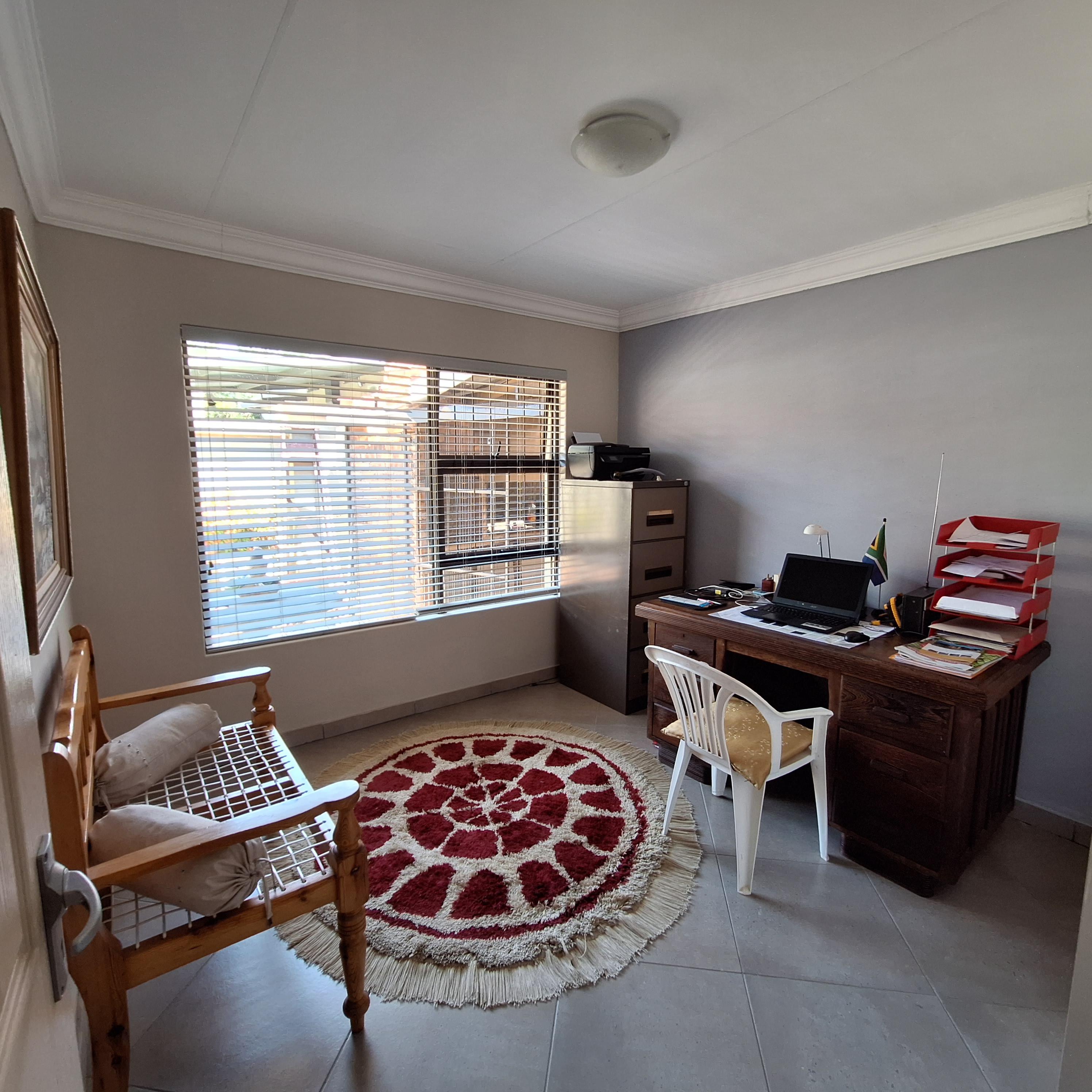 The cozy sitting area adjoins a private courtyard tucked away at the rear of the property, providing a serene retreat.
