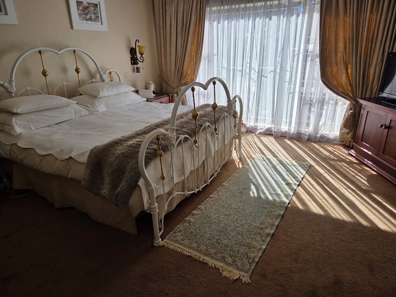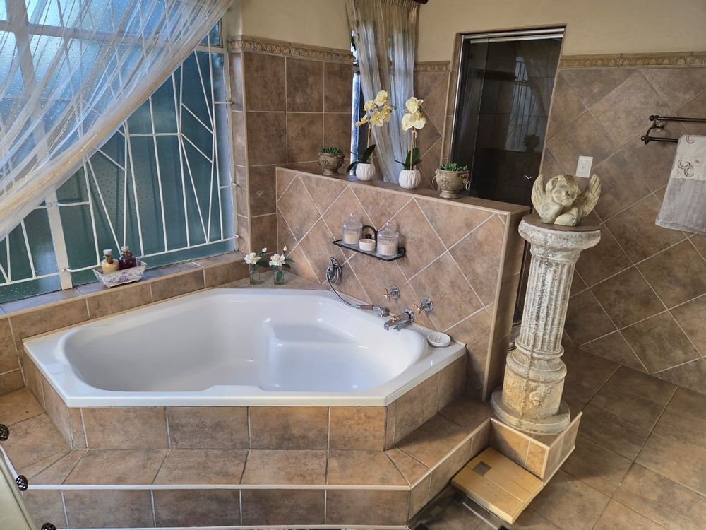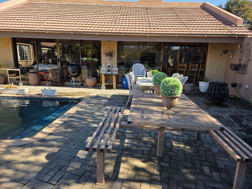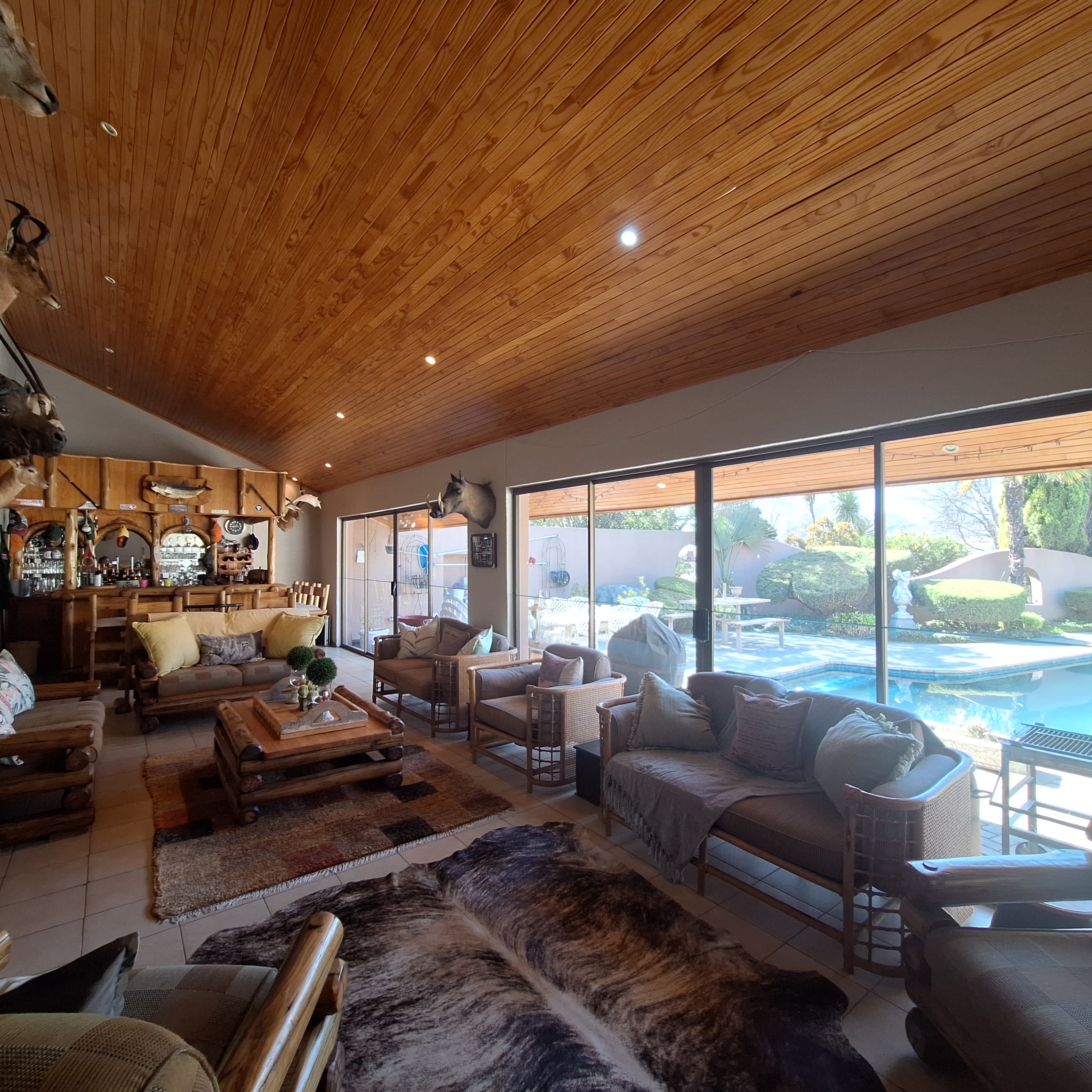 The swimming pool is privately tucked within a central courtyard, flanked on the other side by a spacious entertainment room. Multiple doors can be opened to transform it into a fully integrated indoor-outdoor space. A built-in bar and braai area make it perfect for hosting guests, while underfloor heating ensures comfort even in winter. Just off this space is a guest bedroom and additional bathroom, ideal for overnight visitors or as a private suite.
