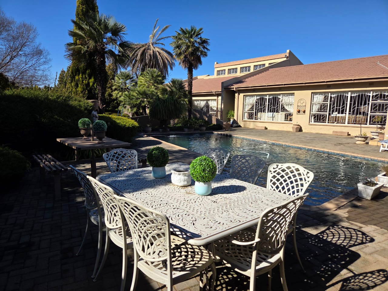 The established garden is part of the appeal and it is always green, due to clever gardening and a strong bore hole.