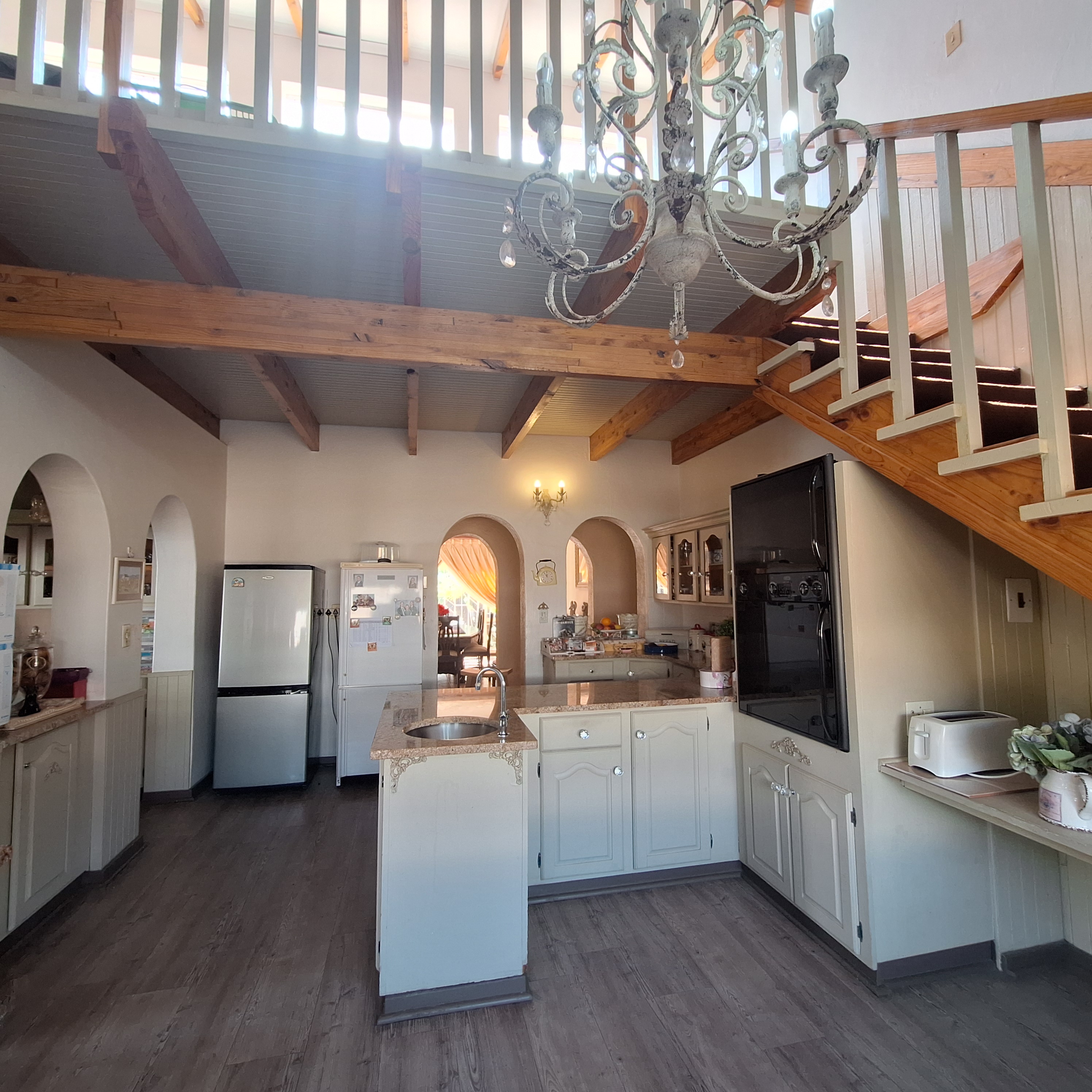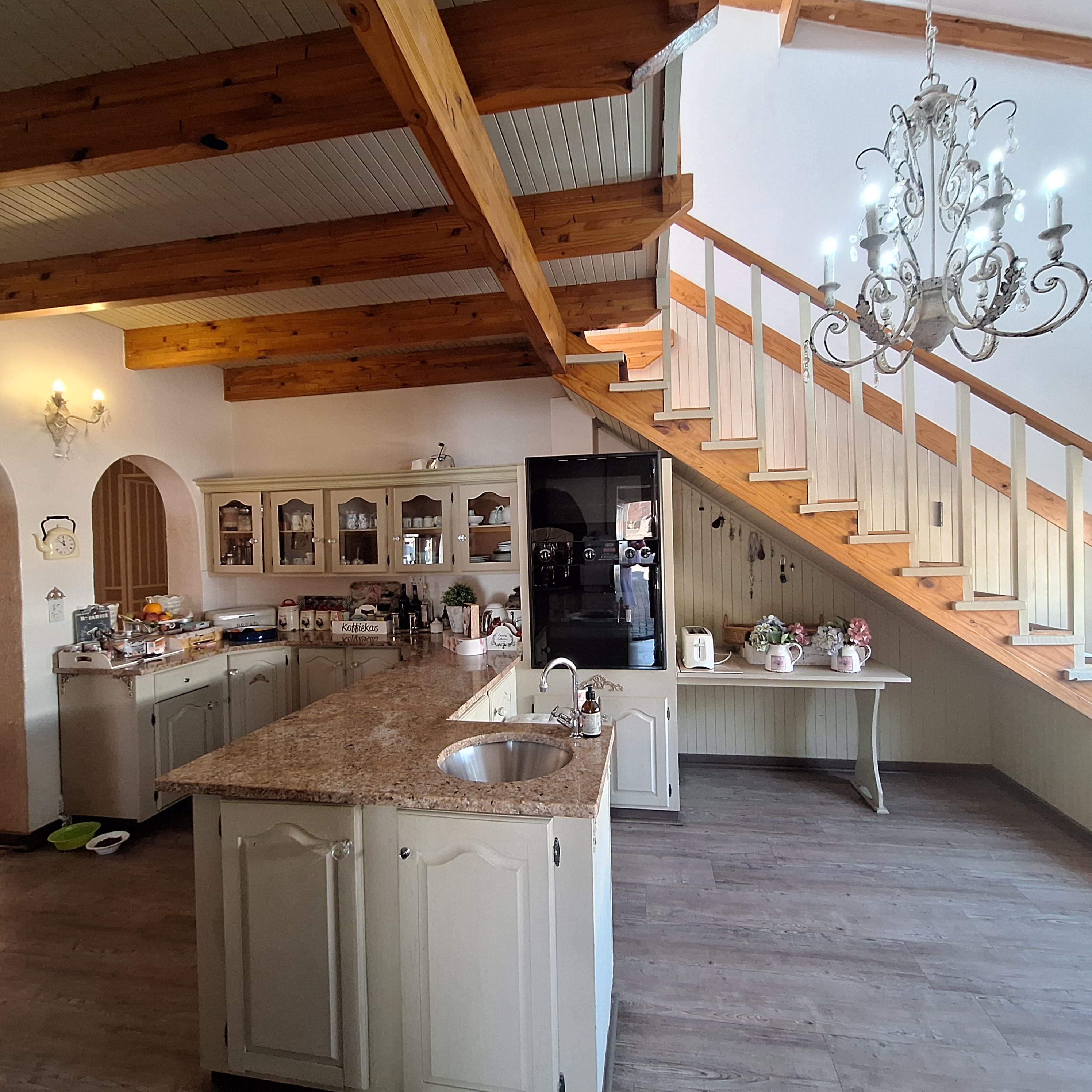 The heart of the home is the cozy kitchen, complete with a built-in breakfast nook and a staircase leading to a versatile loft area; ideal as a home office, hobby room or teen hangout. A separate scullery keeps the kitchen clutter-free.