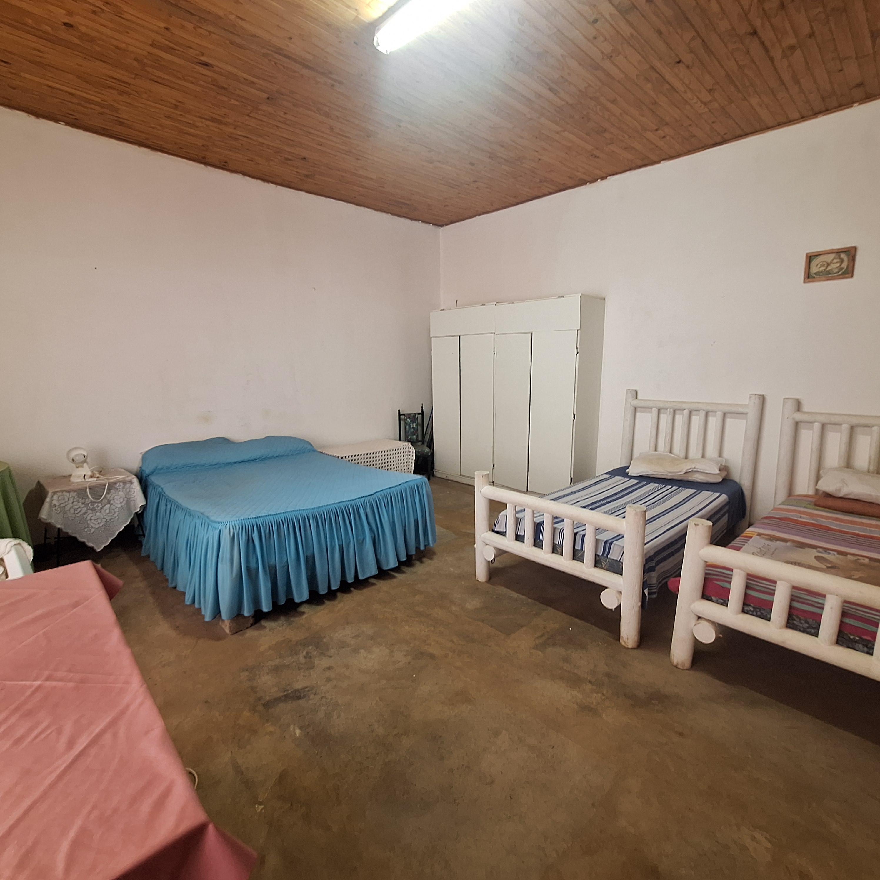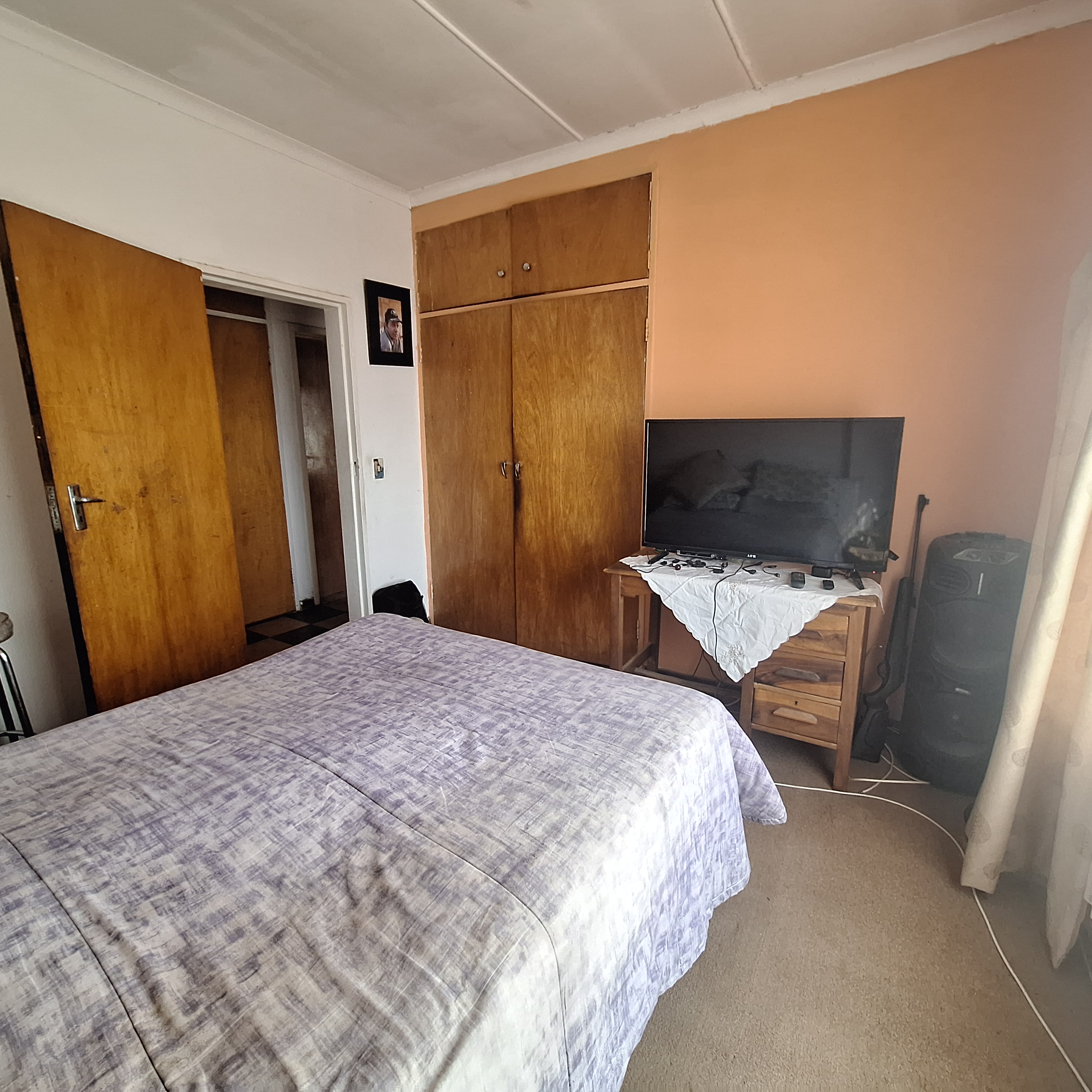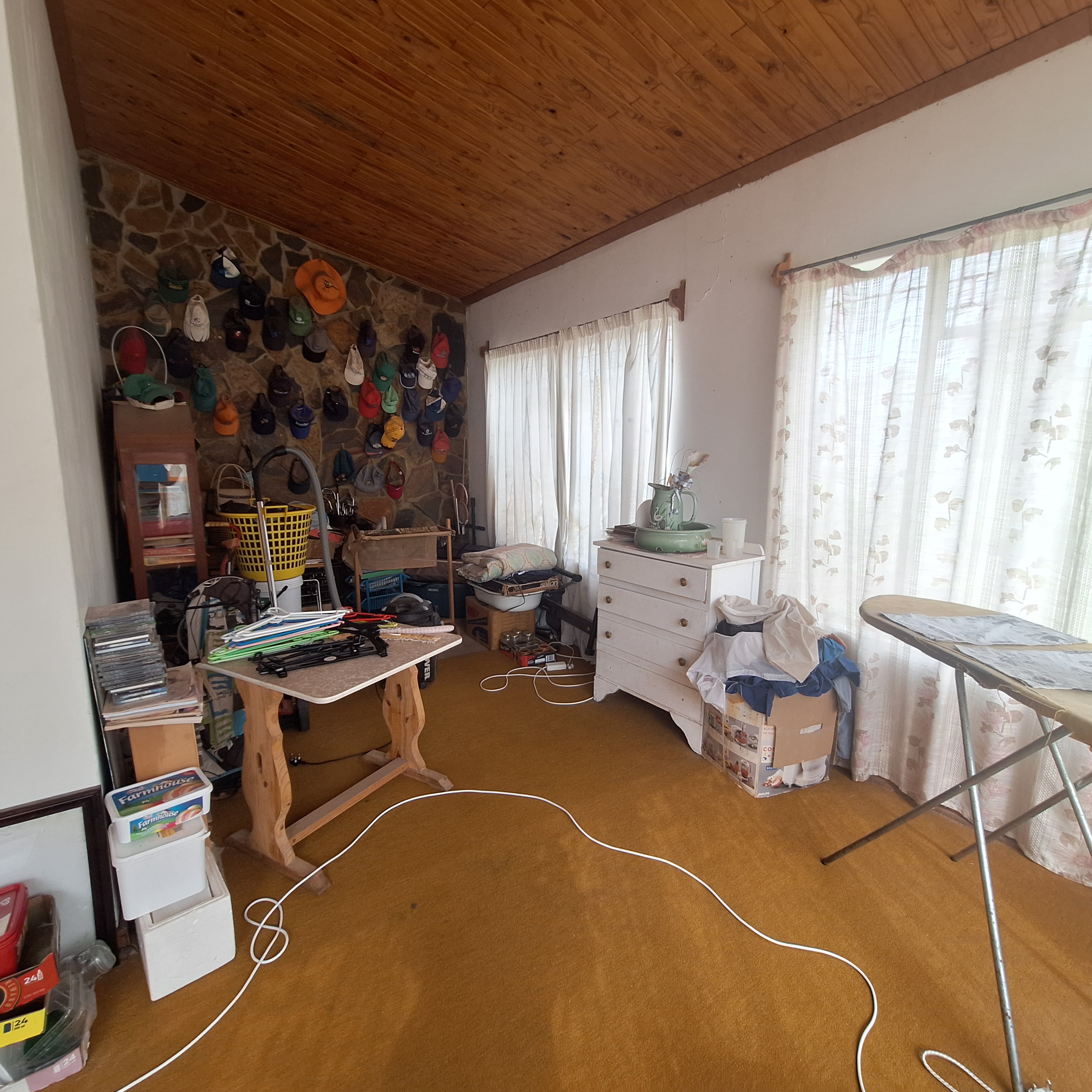 An inviting entertainment room opens through sliding doors onto a stoep, ideal for indoor-outdoor living and hosting friends. A hallway leads to the last bedroom, which is exceptionally spacious and versatile — it can easily serve as a main bedroom, second living room or games room.