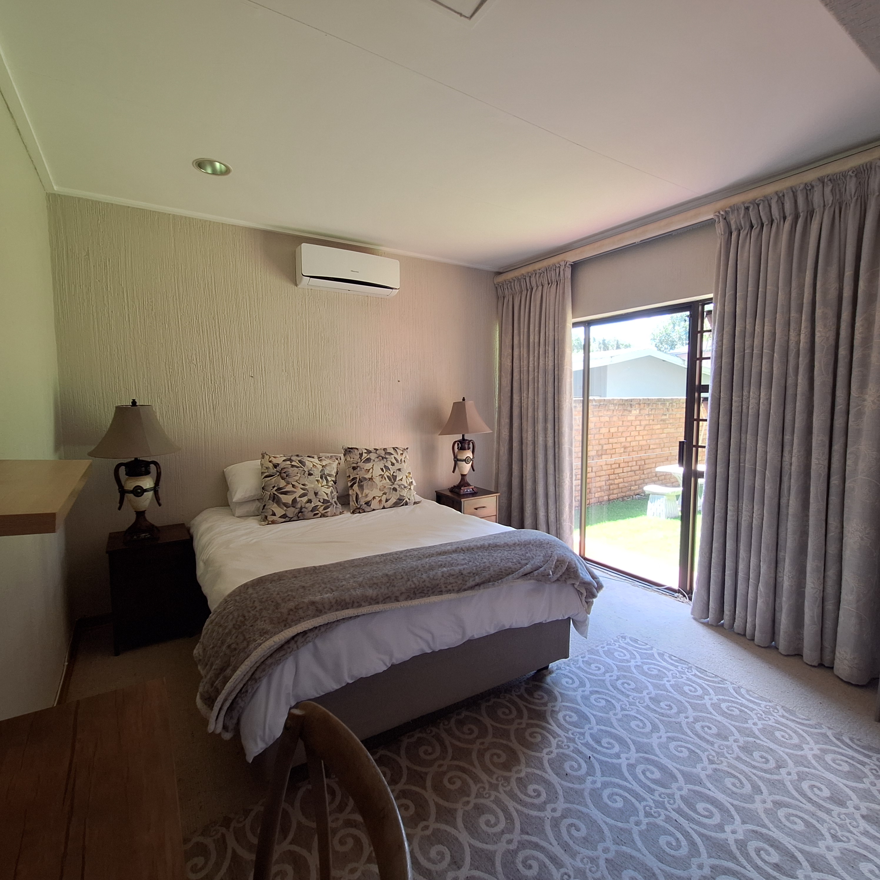 The private family wing consists of four bedrooms, all fitted with air conditioning and exterior doors. Three of the bedrooms share a well-appointed bathroom, while the main bedroom boasts a spacious en-suite bathroom.