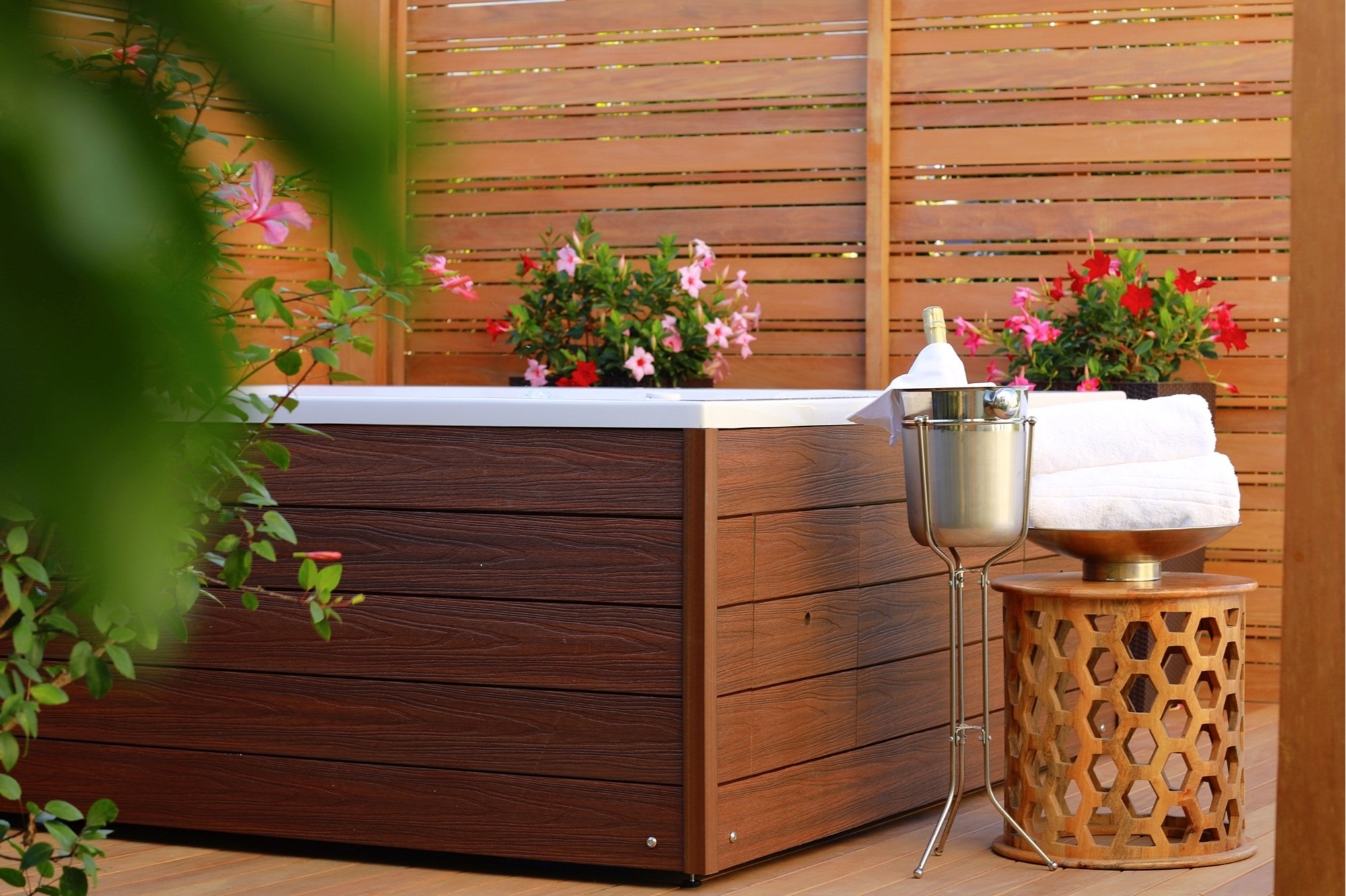 Outdoor living is equally enticing, with a charming gazebo and jacuzzi set within a beautifully landscaped, fully irrigated garden. A furnished terrace and balcony provide inviting spaces for entertaining or quiet relaxation, while an existing pond with pump system offers the potential to be transformed into a plunge pool.