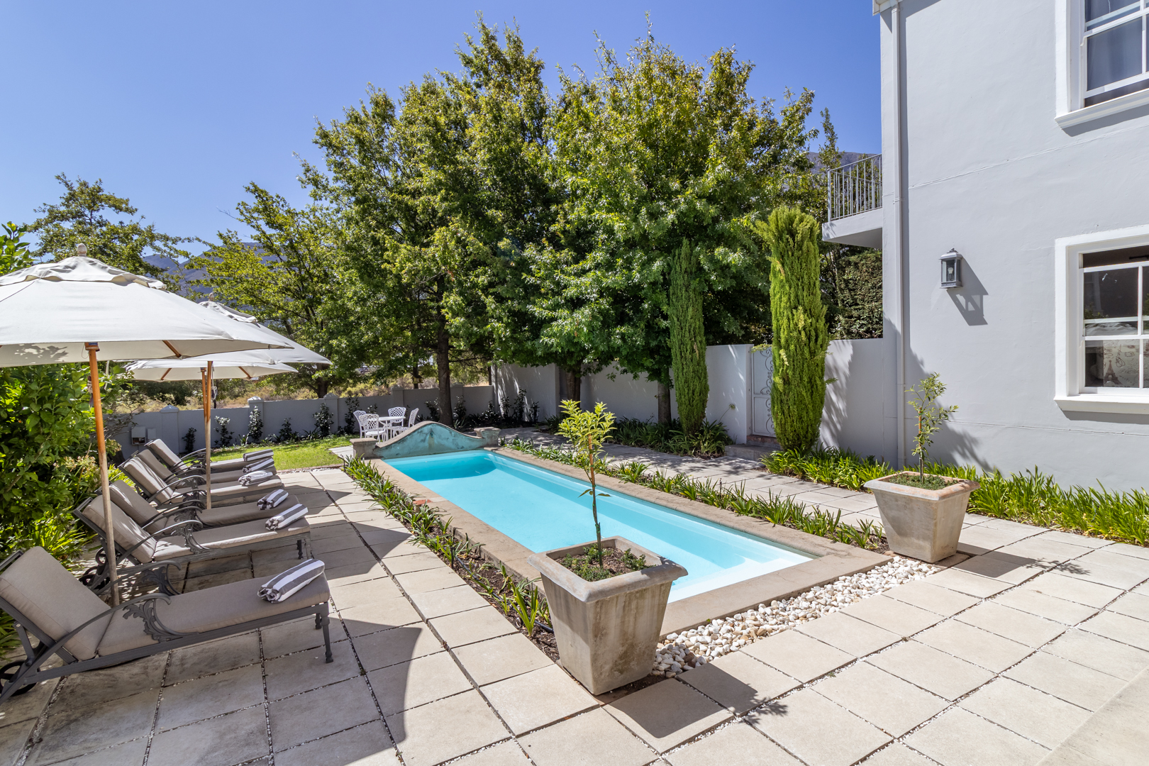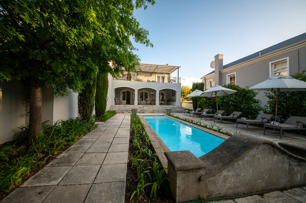 Experience refined country living in this exquisite 5-bedroom home available for rent in the heart of Franschhoek from 10 June to 30 September 2025.