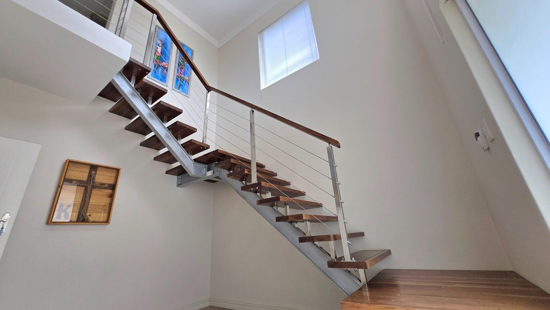 The spacious main bedroom features an en-suite bathroom, while the two guest bedrooms are served by a second bathroom, ensuring privacy and convenience for all. As you enter the house, you're greeted by an amazing staircase that leads to the upper level, where the kitchen, braai room, living, and dining areas are located. This design creates a seamless flow and makes it perfect for entertaining, with all bedrooms conveniently situated downstairs.