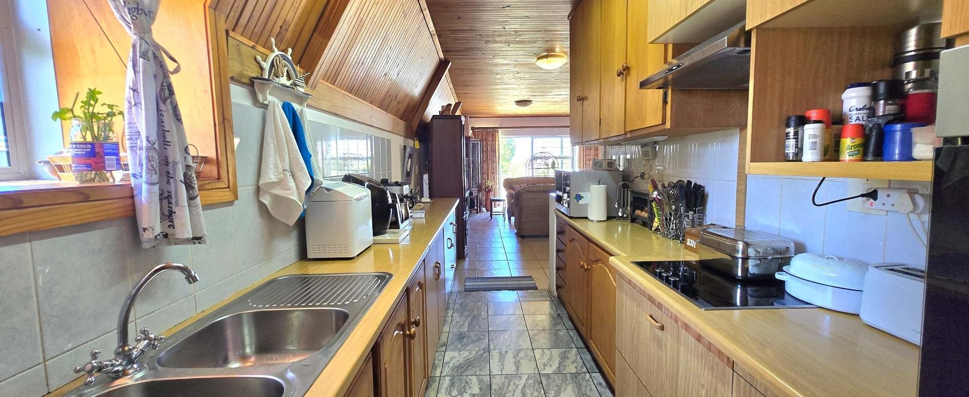 Discover this expansive 5-bedroom, 3-bathroom residence in the charming coastal suburb of Franskraal, Gansbaai. Boasting a generous 400 sqm under roof on a 704 sqm erf, this property offers exceptional dual living potential, making it ideal for a large family, holiday home, or investment opportunity. Enjoy breathtaking scenic and distant sea views from various vantage points, enhancing the tranquil country living experience.