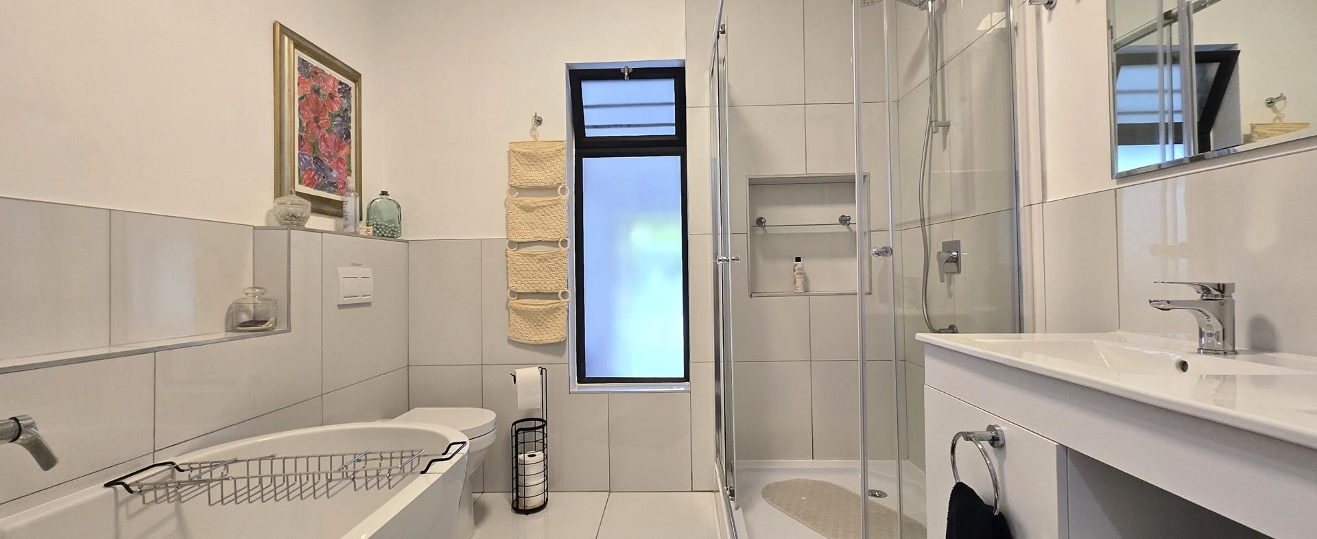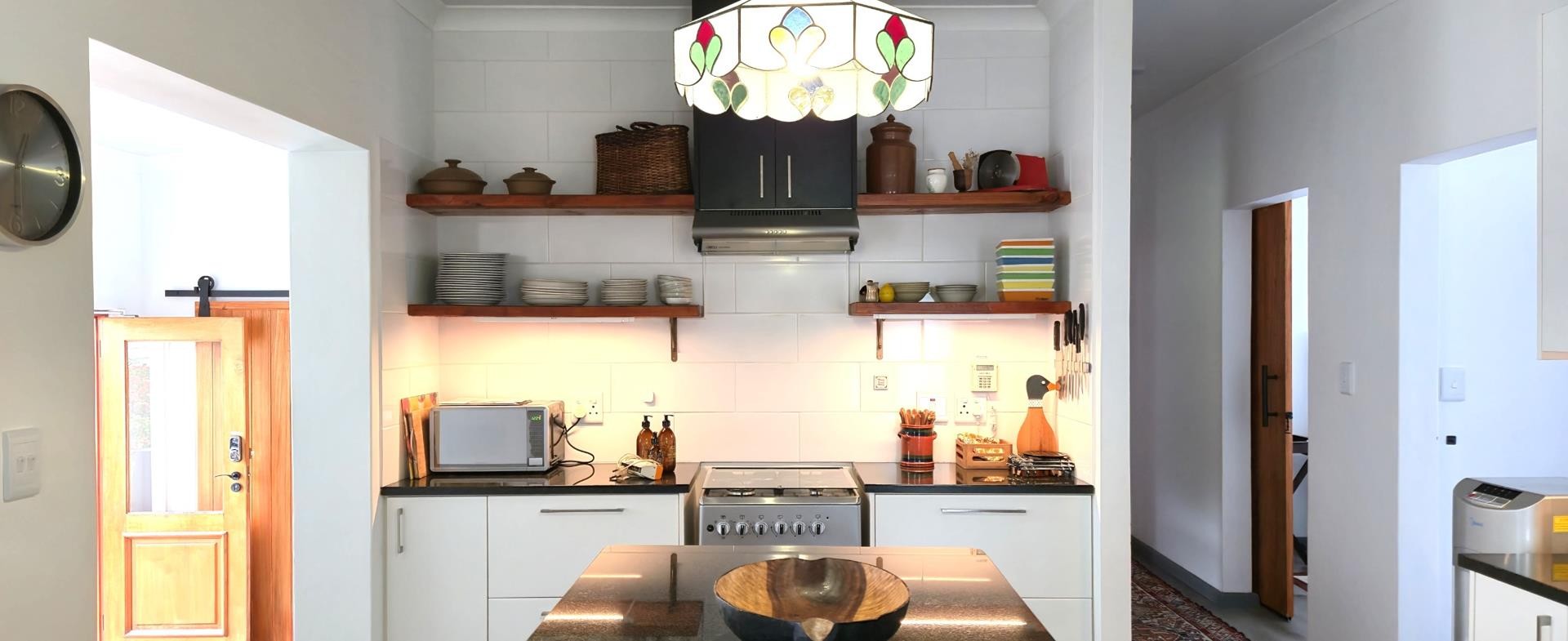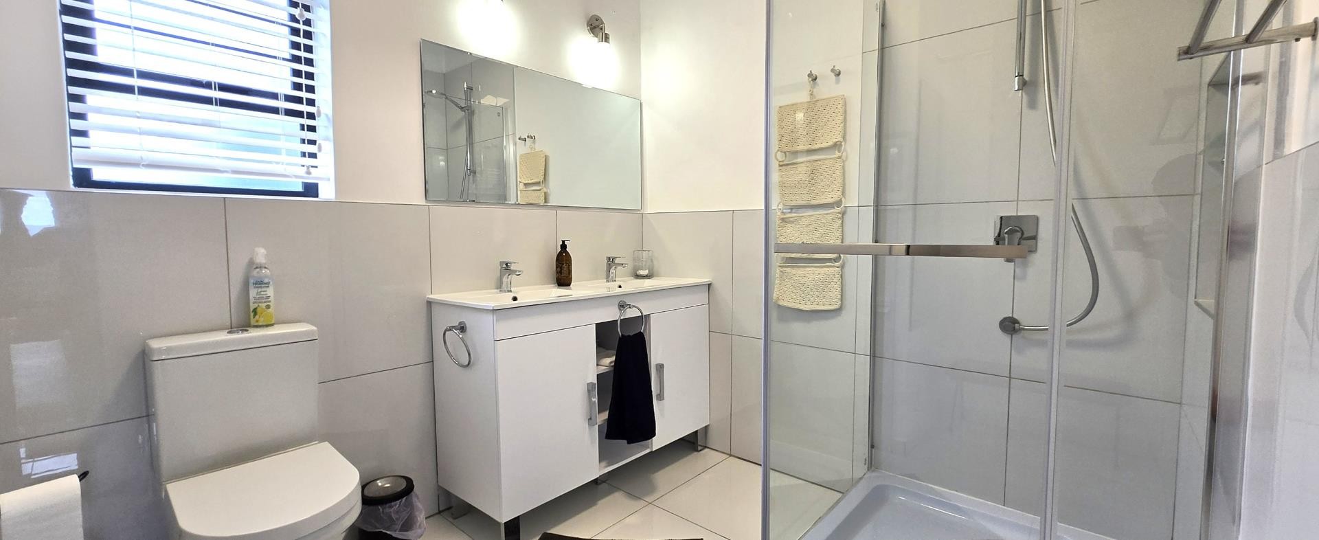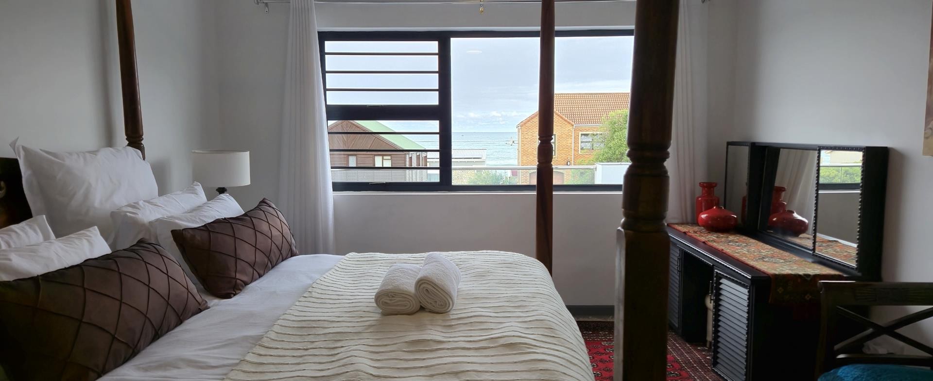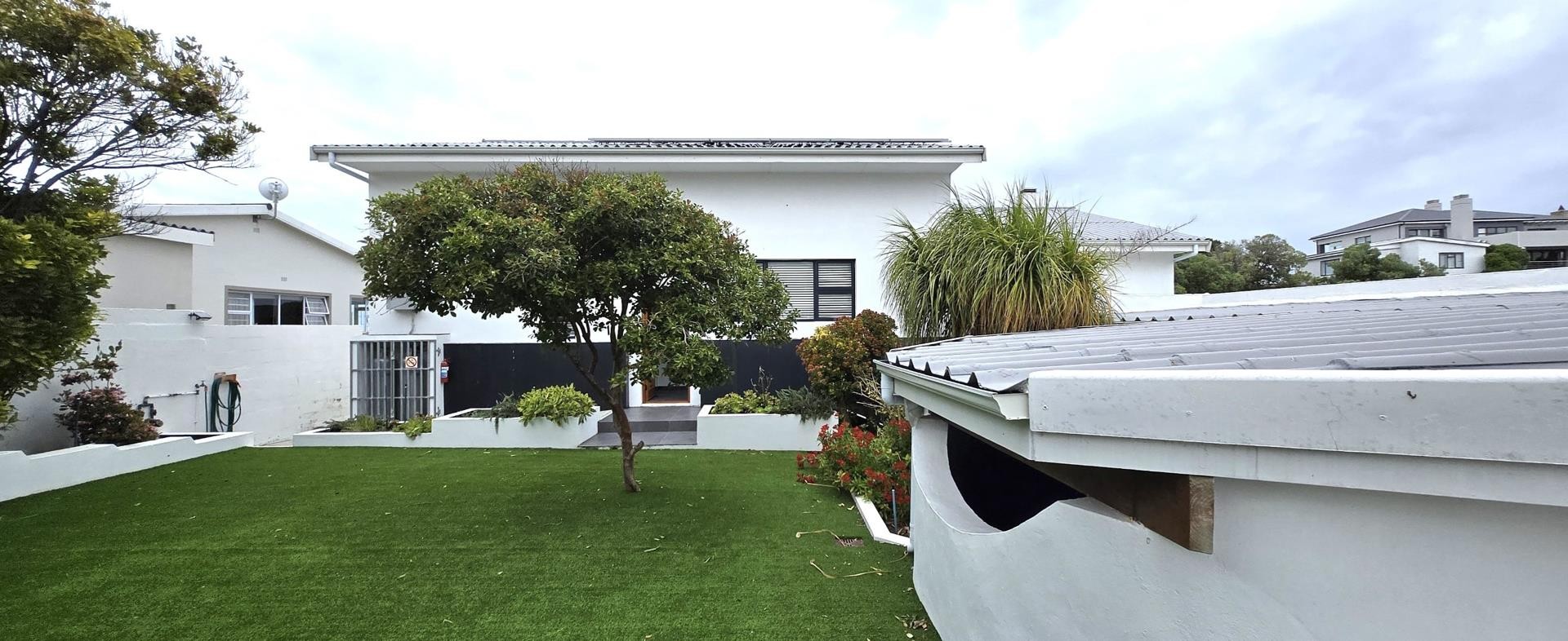 The property features five bedrooms, three of which are luxurious en-suites boasting sweeping sea views. A separate two-bedroom wing provides added privacy and flexibility, making it perfect for guests or dual living arrangements. The open-plan interior is designed for both relaxation and entertainment, flowing seamlessly from the lounge with built-in braai to a sophisticated dining area and a gourmet kitchen fitted with a gas hob, electric oven, wine cooler, and separate scullery. Every detail reflects quality, from the bespoke wardrobes to the premium Van Acht sliding doors, while the magnificent master suite offers uninterrupted ocean views and a spa-like bathroom.