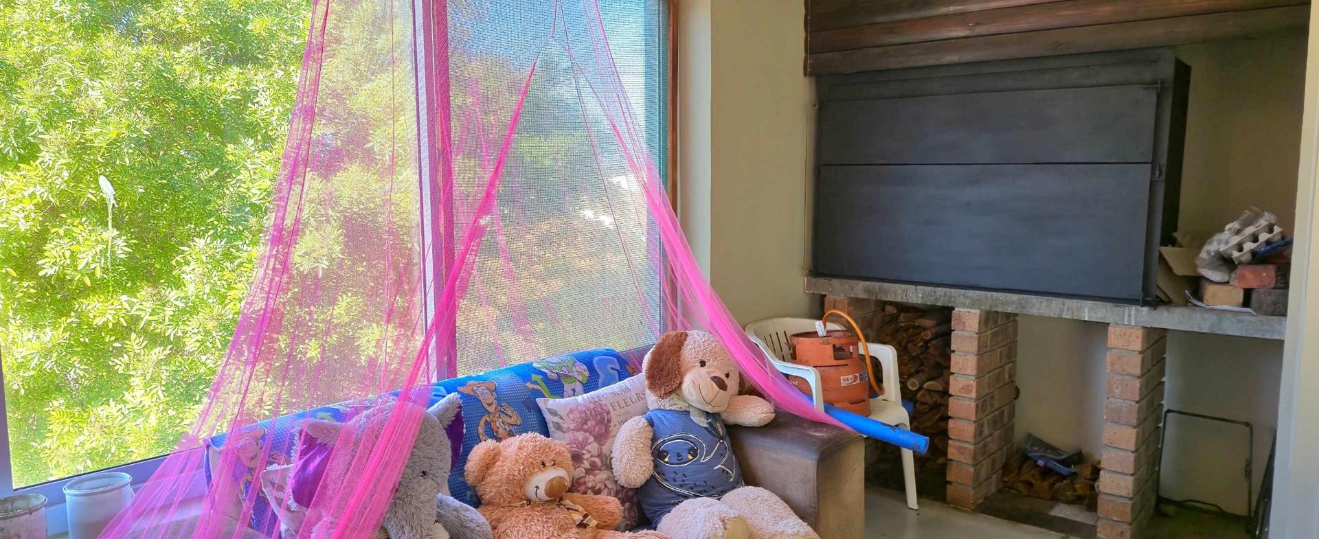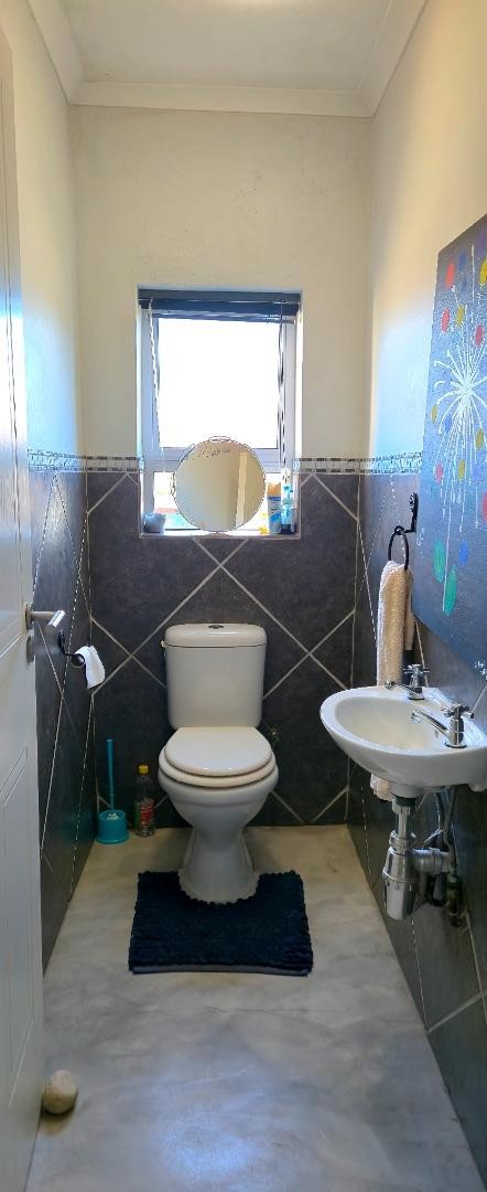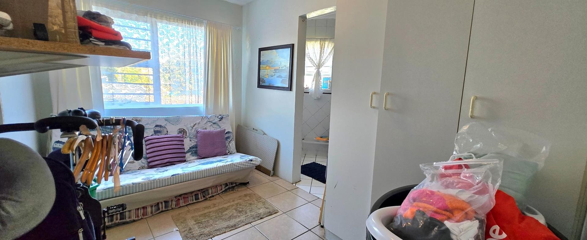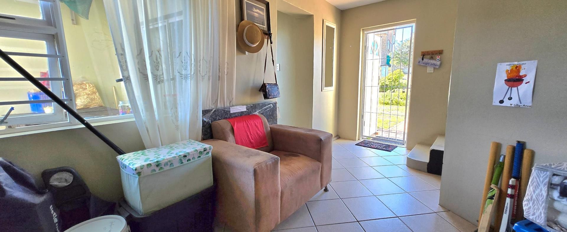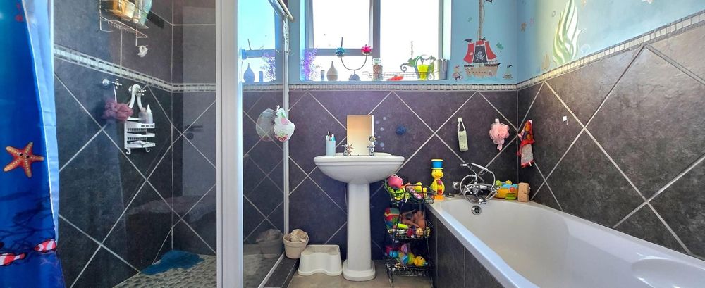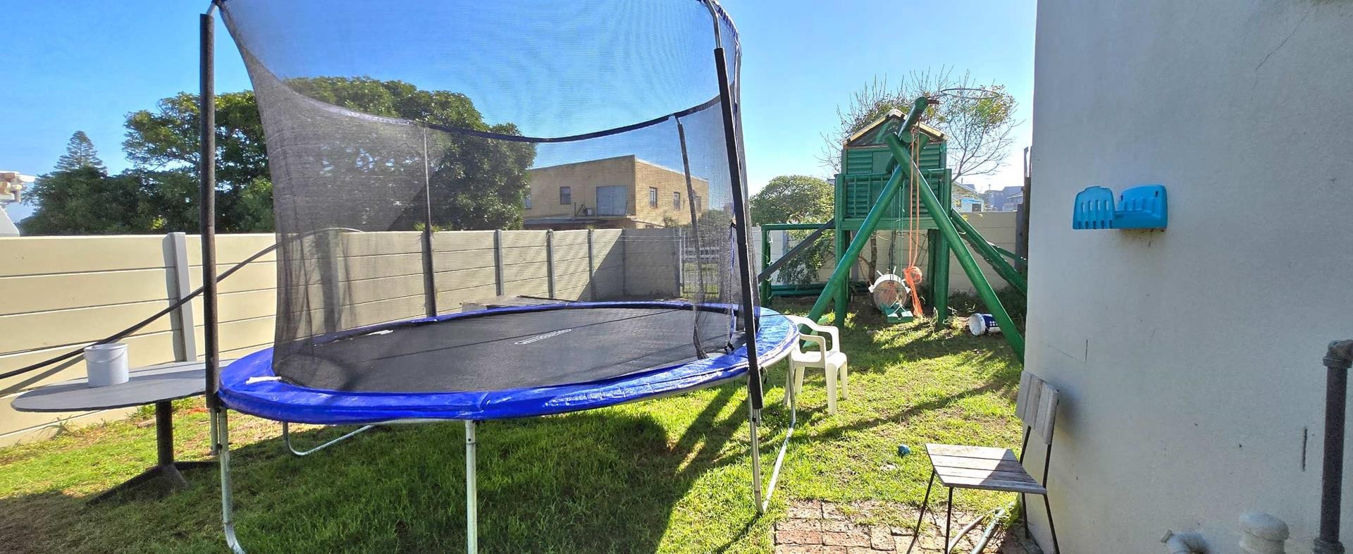 The open-plan kitchen is ideal for modern living, featuring an adjacent scullery for added convenience. The upstairs living and braai room offer distant sea views, perfect for entertaining all year round thanks to the built-in indoor braai. The home also features low-maintenance cement screed flooring throughout.