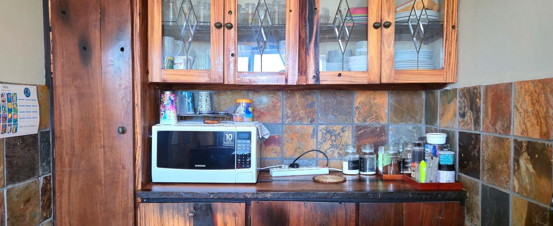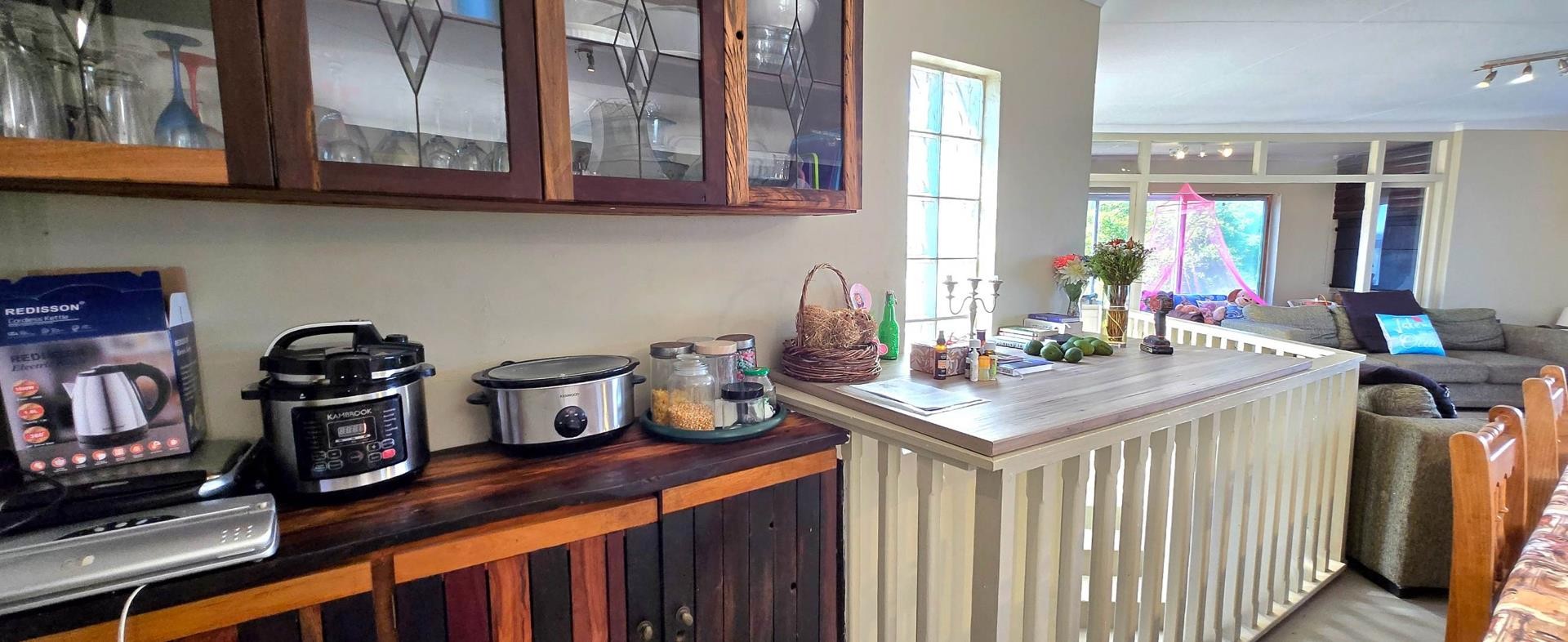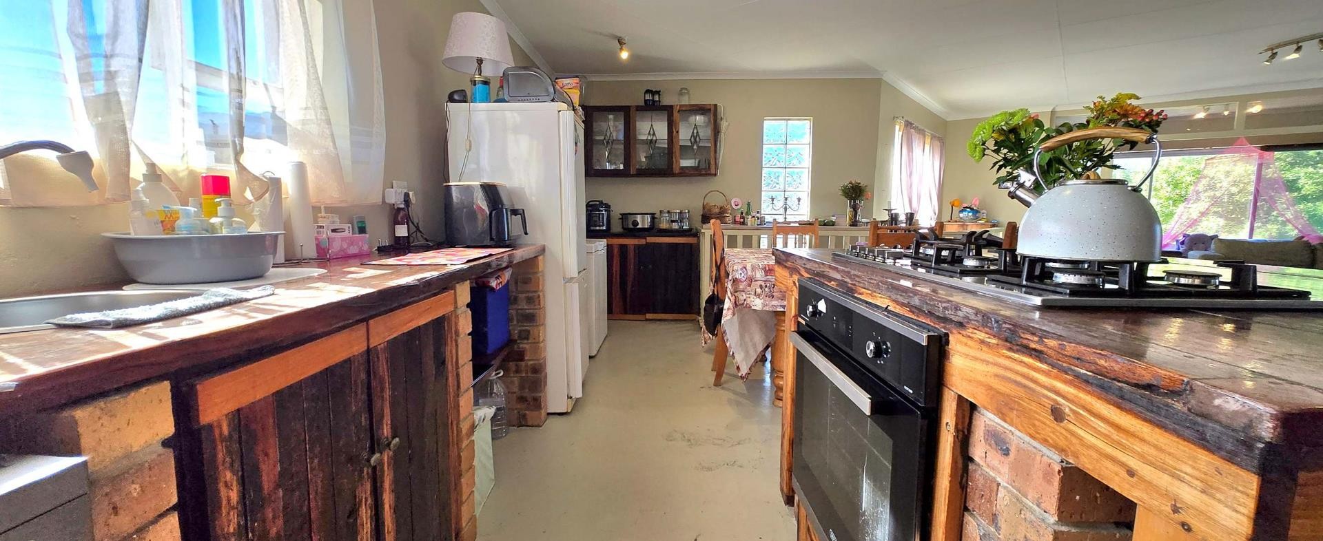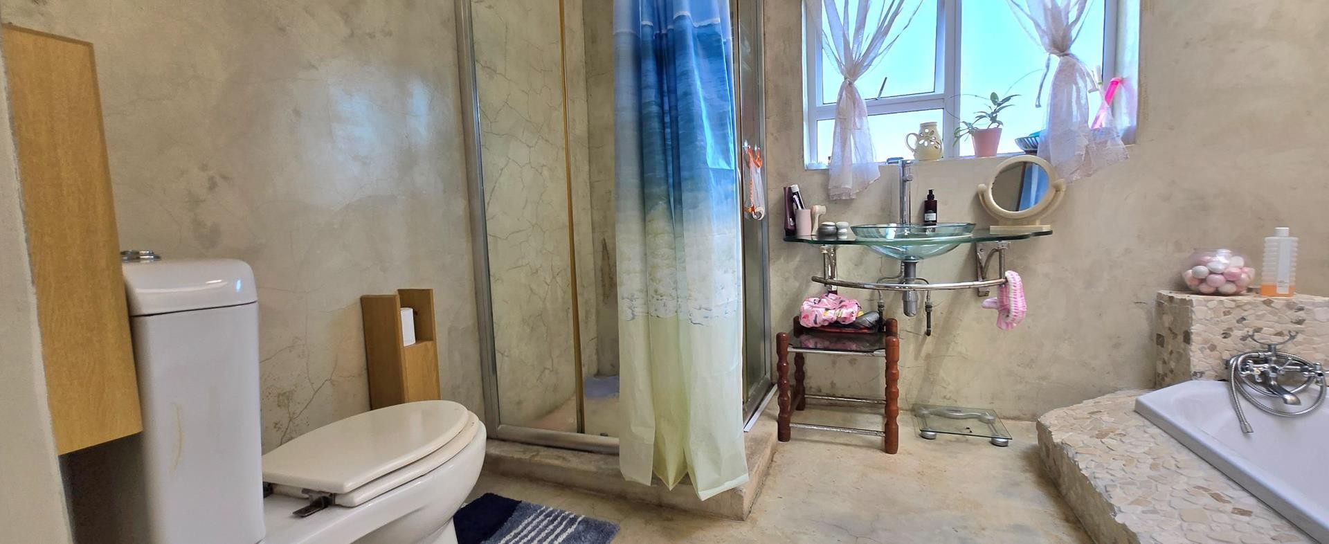 The open-plan kitchen is ideal for modern living, featuring an adjacent scullery for added convenience. The upstairs living and braai room offer distant sea views, perfect for entertaining all year round thanks to the built-in indoor braai. The home also features low-maintenance cement screed flooring throughout.