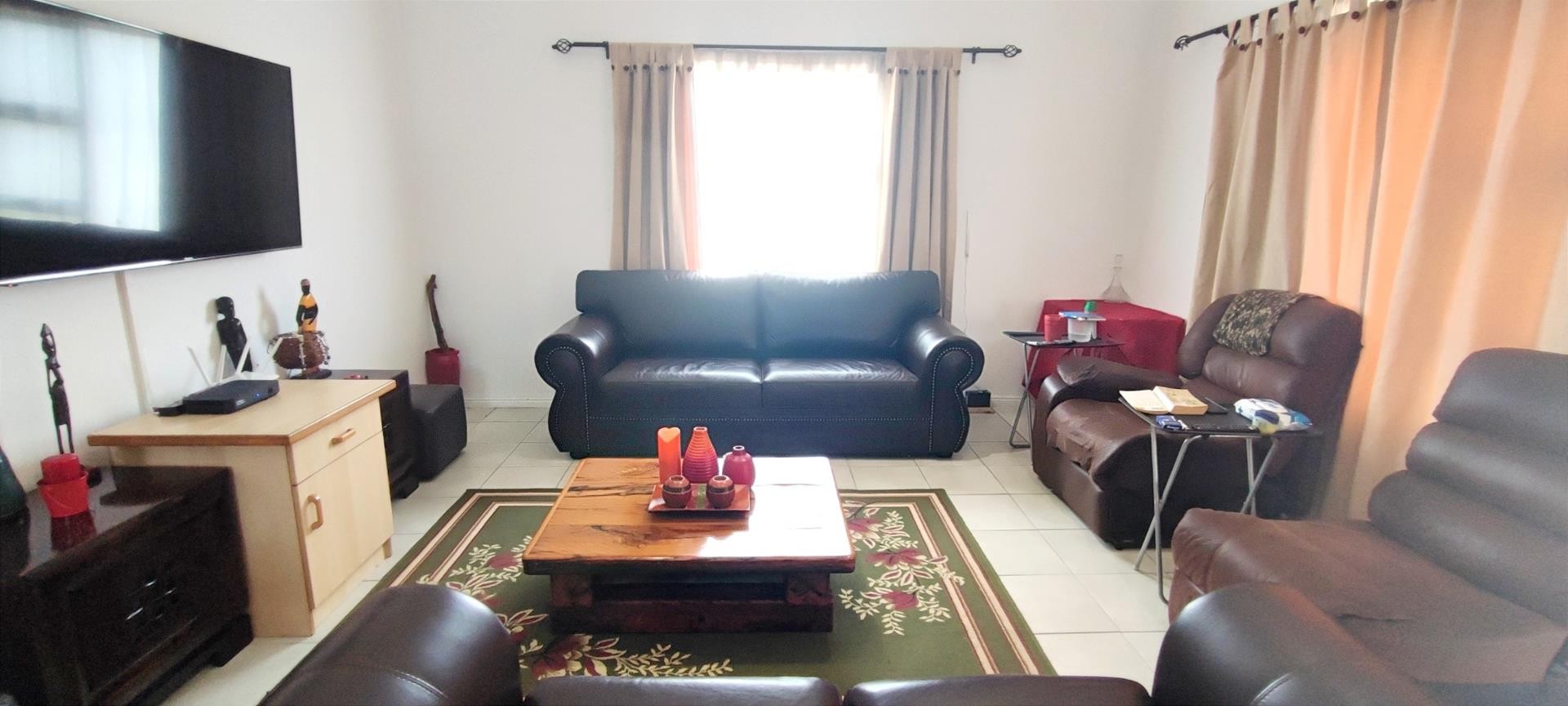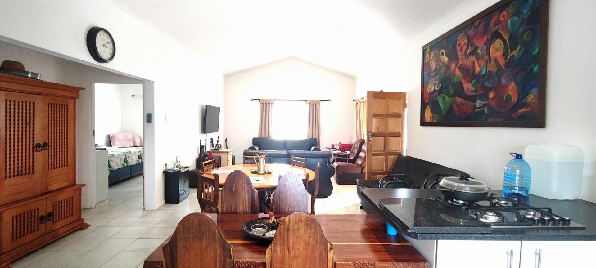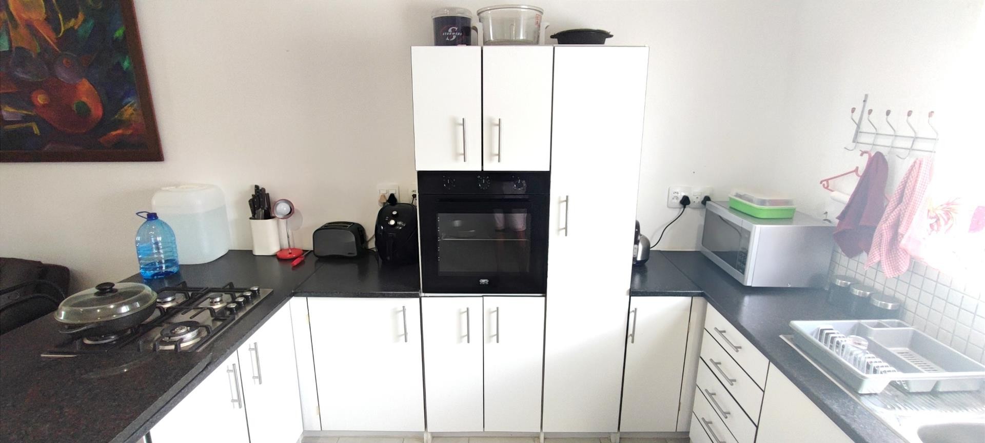The heart of the home is an open-plan kitchen adorned with sleek appliances and finishes, seamlessly flowing into the dining and living areas. Entertaining is a breeze in this thoughtfully designed space. Worried about load shedding? Fear not! The kitchen comes equipped with a gas hob, ensuring culinary adventures continue uninterrupted.