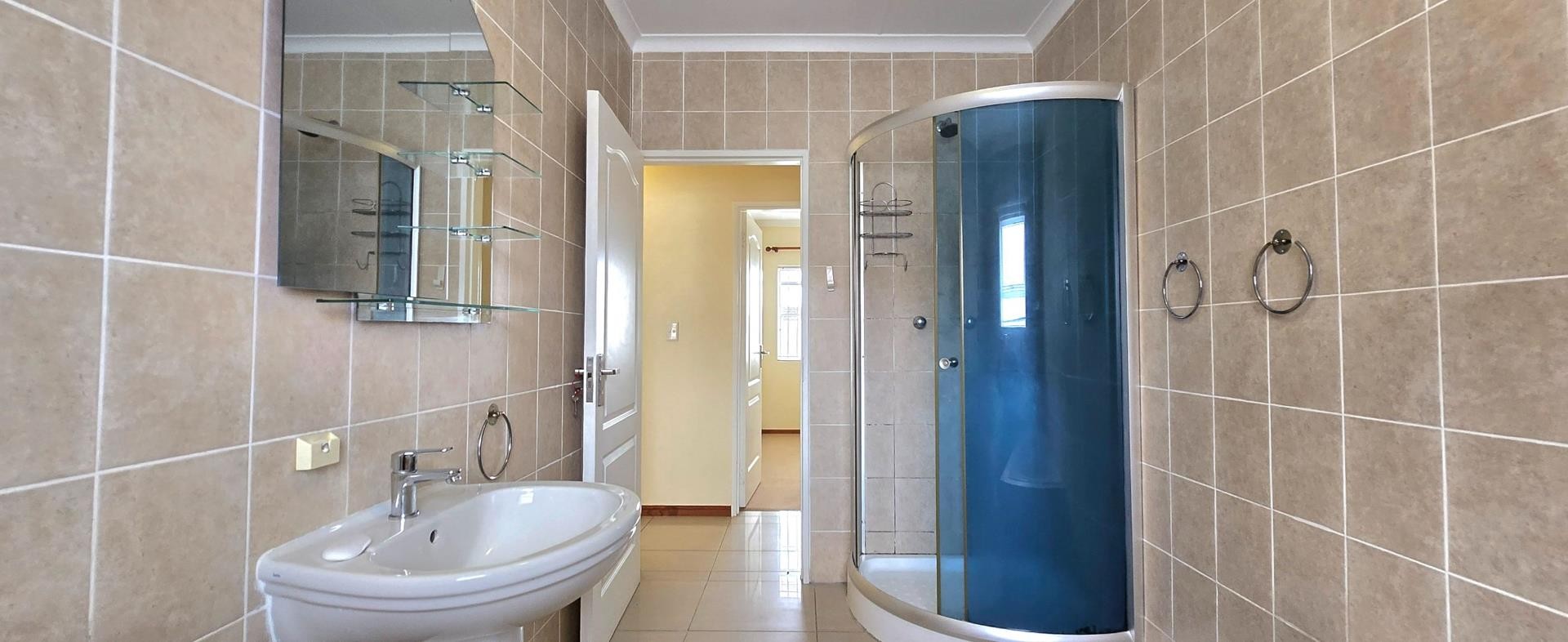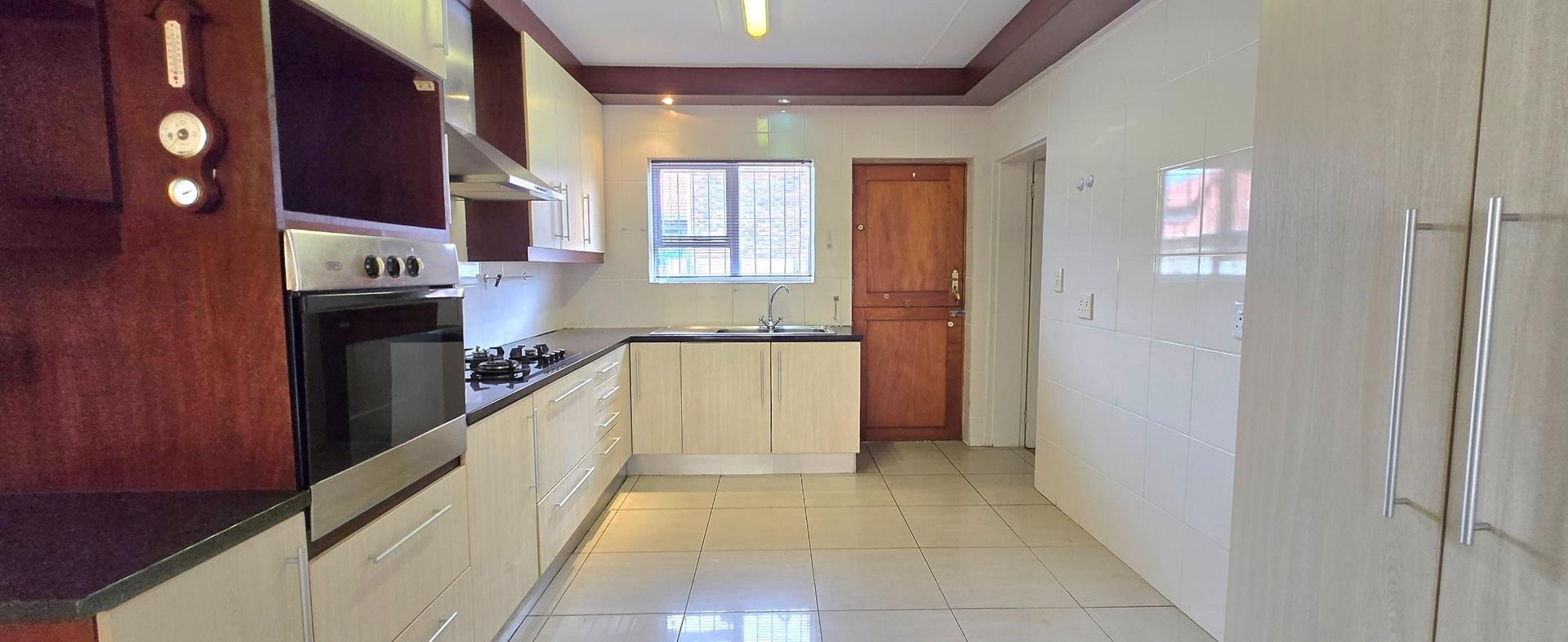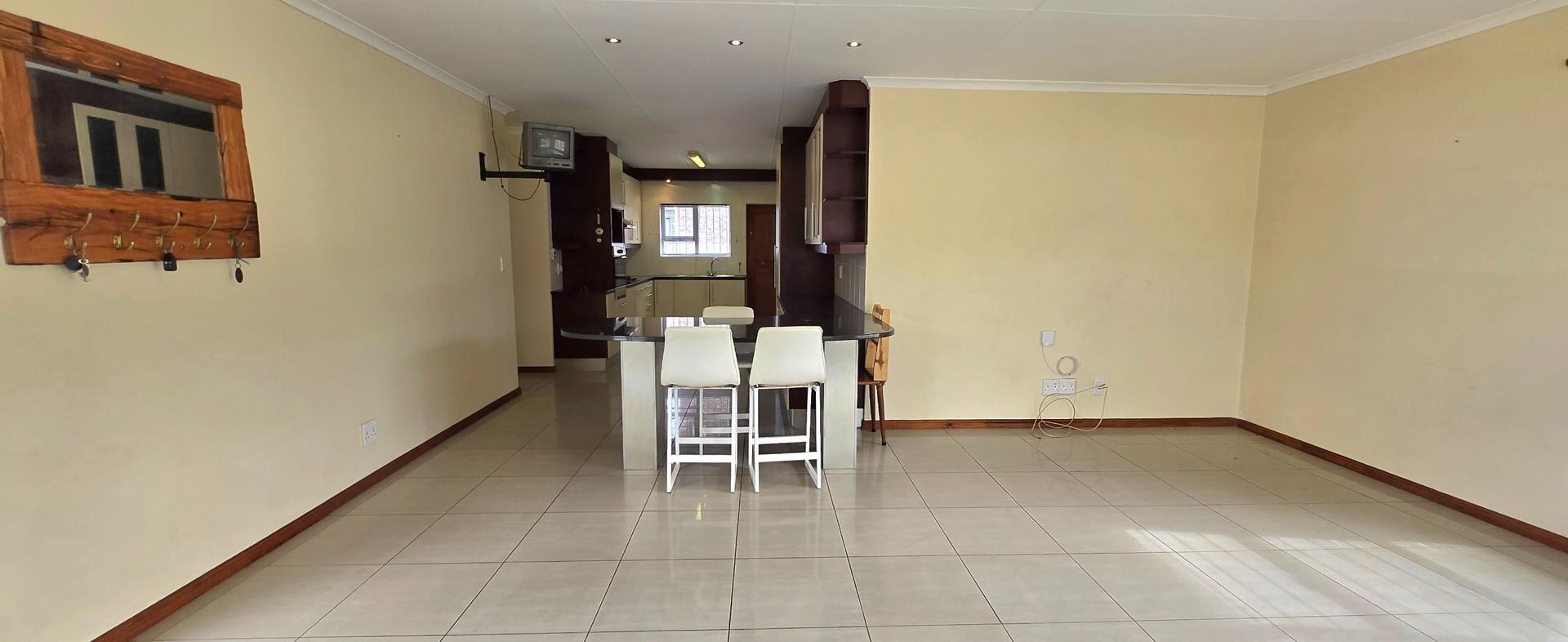 The home offers a spacious, modern kitchen with a gas hob, ample cupboards, and direct access to both the garage and backyard. An open-plan living, dining, and indoor braai area flows seamlessly to the patio and low-maintenance garden, creating a perfect space for entertaining or relaxing with family.