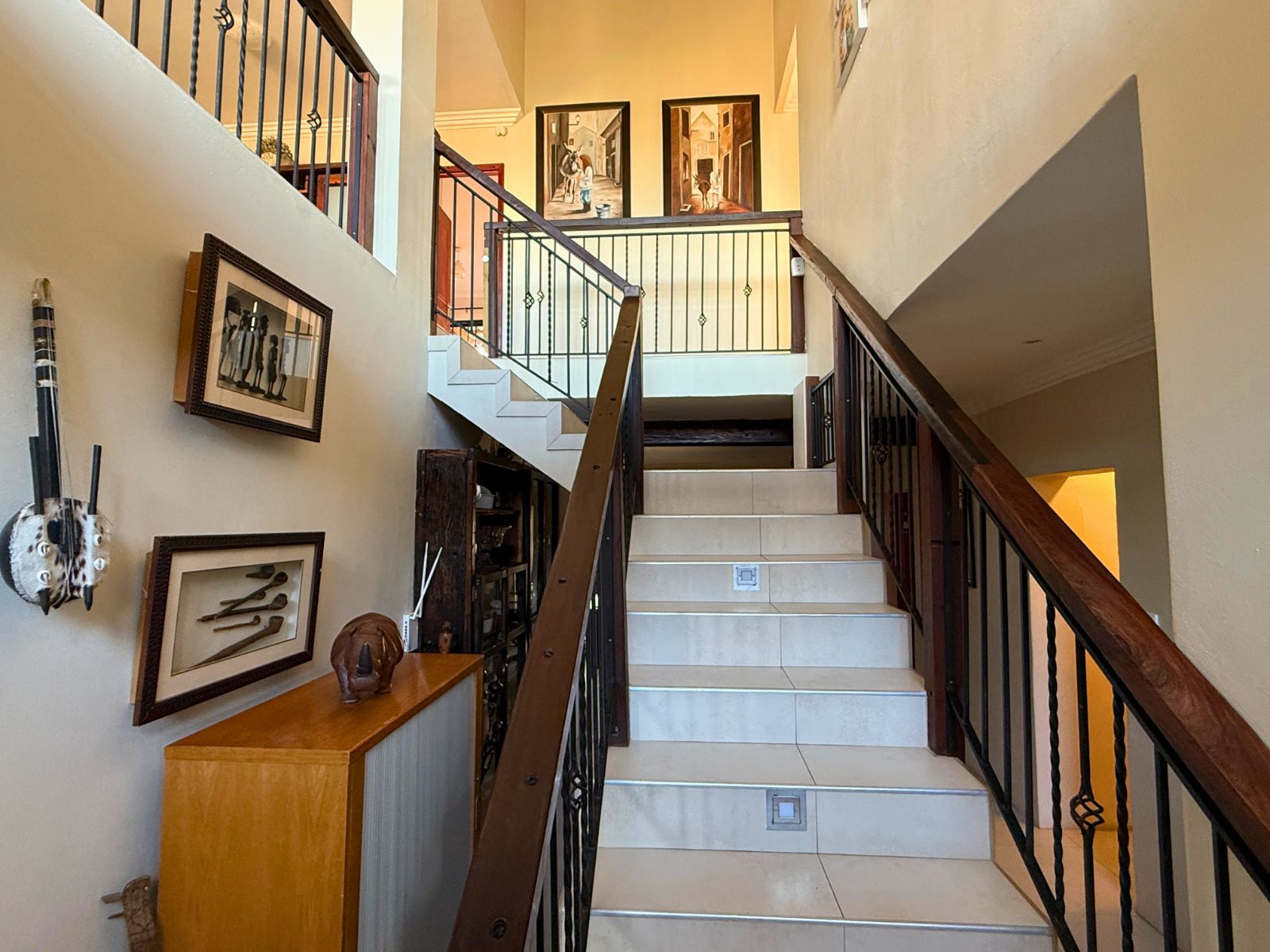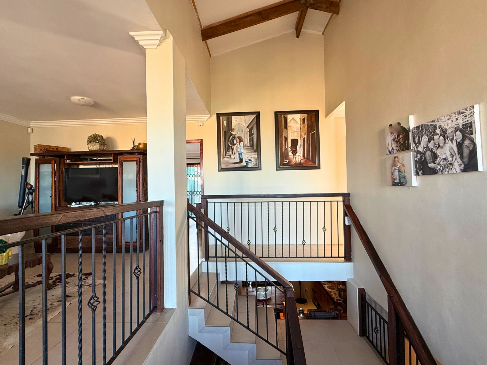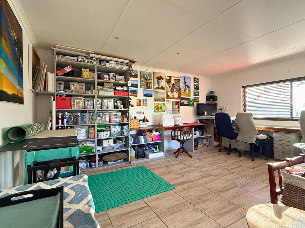 Upstairs, you’ll find a tranquil formal lounge with a cozy built-in fireplace and a private balcony — an ideal retreat for peaceful moments. A second, expansive entertainment room is designed for both comfort and style, featuring a built-in braai, a convenient kitchenette, and stacker doors that open to a balcony offering distant sea views. Several other balconies, including four leading off the bedrooms, allow you to fully embrace the peaceful surroundings and enjoy the calming sea-facing vistas. There is also a large hobby room, complete with its own private balcony upstairs, perfect for creative projects or relaxation.