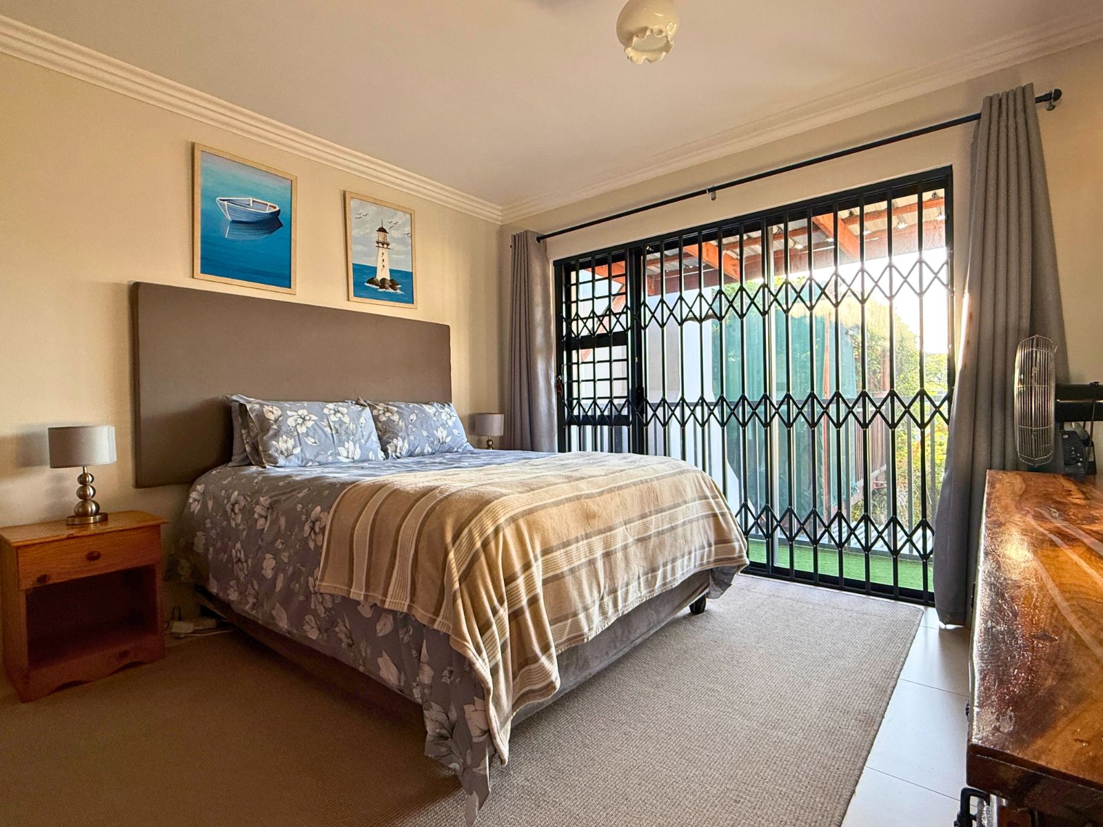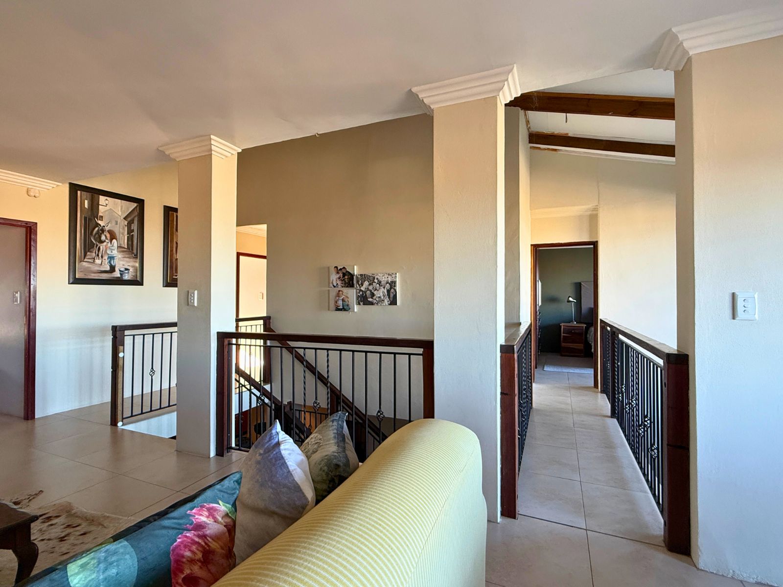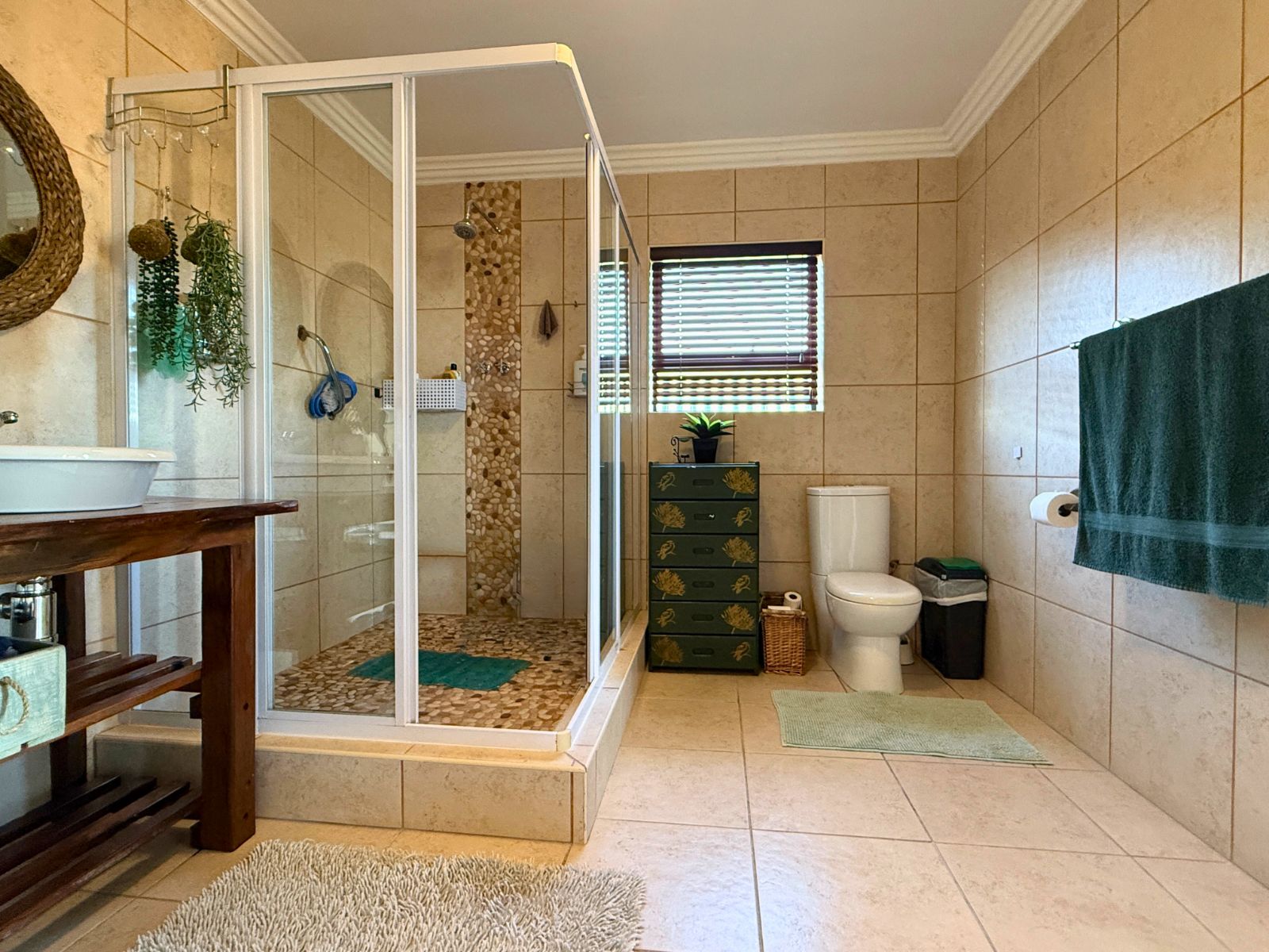 Upstairs, you’ll find a tranquil formal lounge with a cozy built-in fireplace and a private balcony — an ideal retreat for peaceful moments. A second, expansive entertainment room is designed for both comfort and style, featuring a built-in braai, a convenient kitchenette, and stacker doors that open to a balcony offering distant sea views. Several other balconies, including four leading off the bedrooms, allow you to fully embrace the peaceful surroundings and enjoy the calming sea-facing vistas. There is also a large hobby room, complete with its own private balcony upstairs, perfect for creative projects or relaxation.