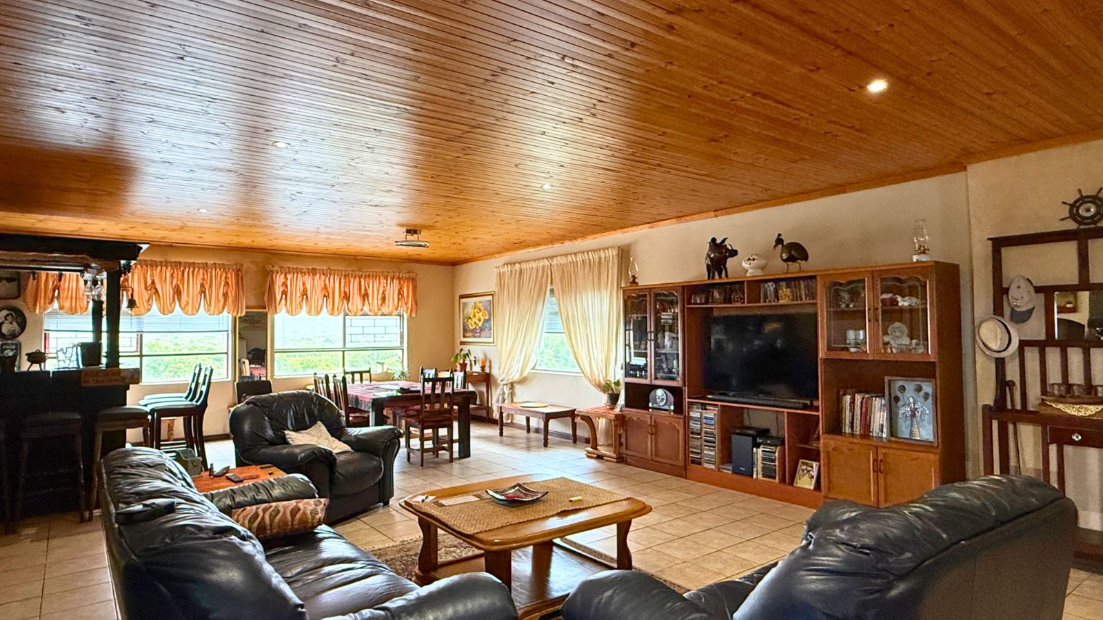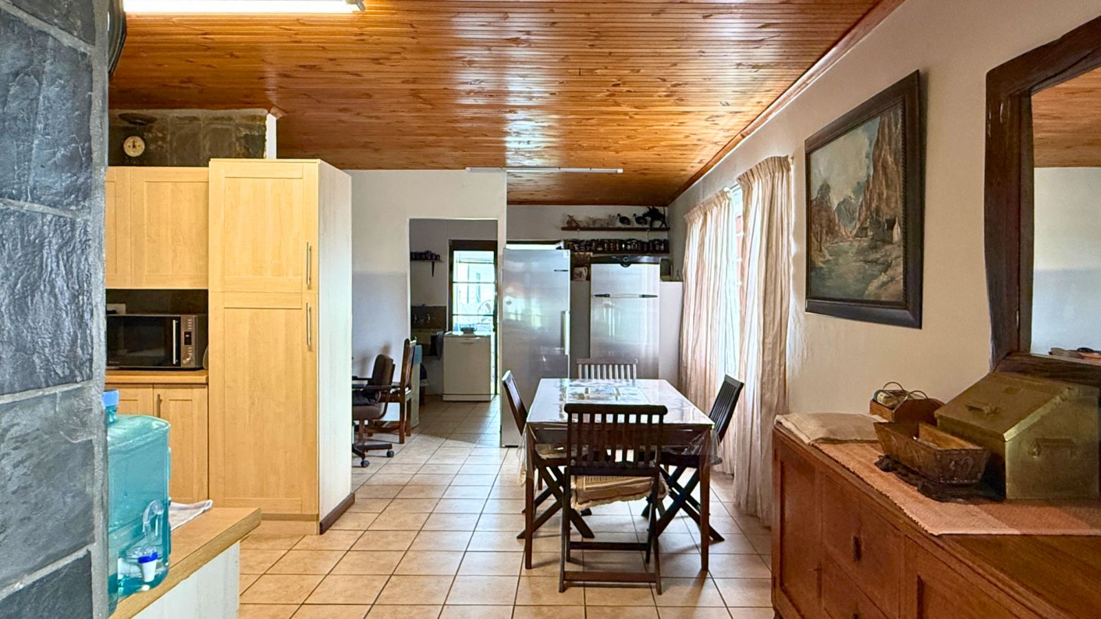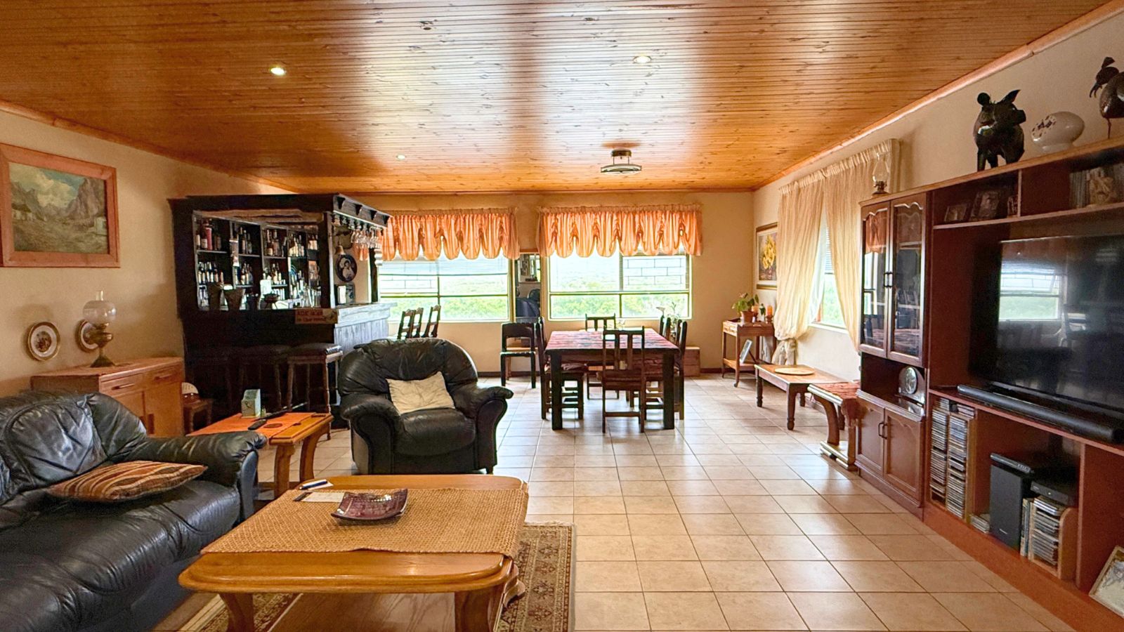 Experience the perfect blend of space and serenity in this meticulously maintained Franskraal residence, where solid construction meets functional design. The home is thoughtfully designed on a single level, offering effortless flow and accessibility throughout the primary living areas and bedrooms. Bathed in natural light, the expansive open plan entertainment wing serves as the heart of the home, featuring a built in bar, two indoor braais, and a classic Dover style stove for cozy winter evenings. Large windows throughout this area frame stunning, unobstructed views of the rugged mountain range that defines the Franskraal skyline.