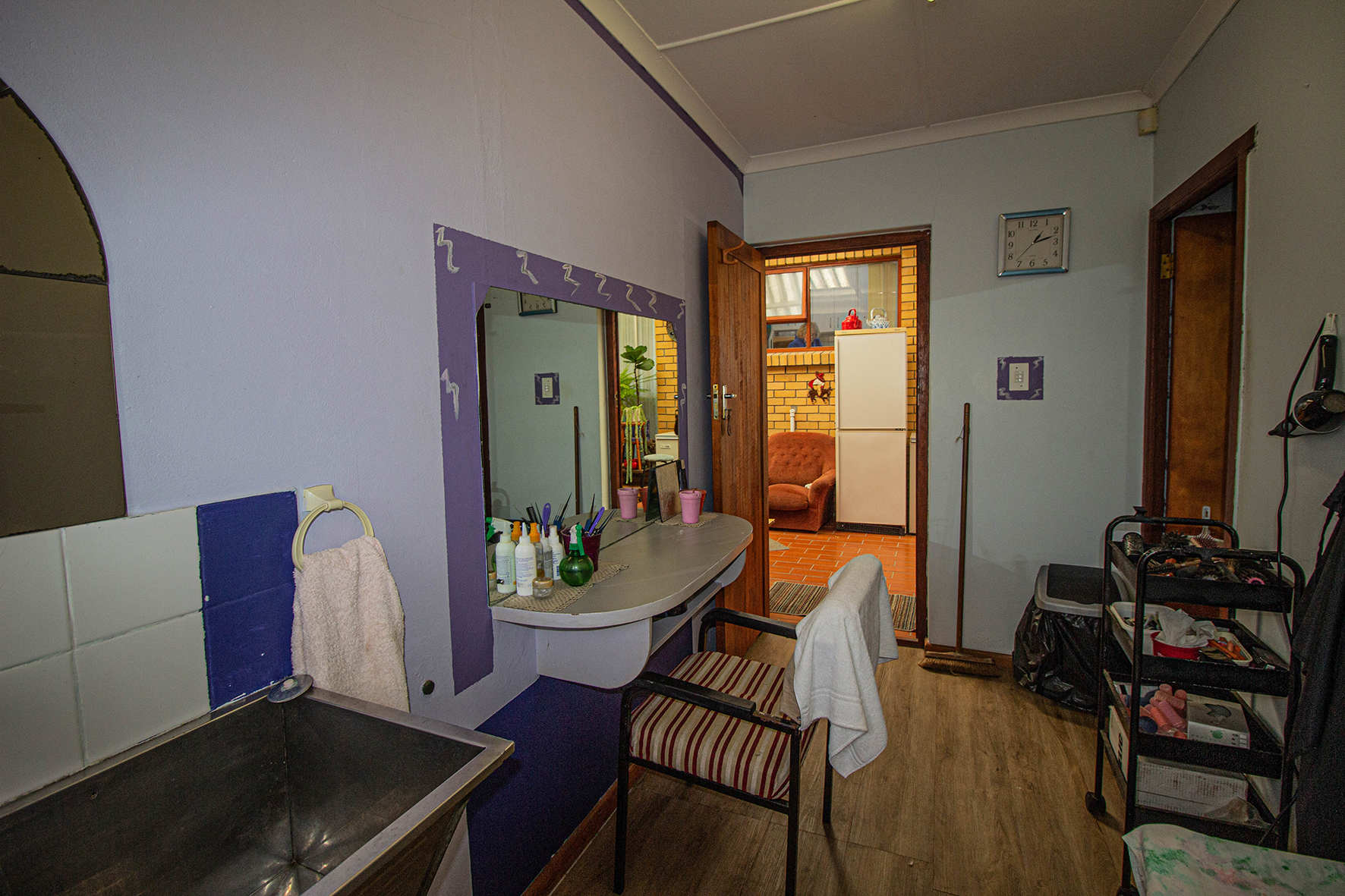 - Extra-long single garage with an adjoining utility room currently used as a home-based hair studio.