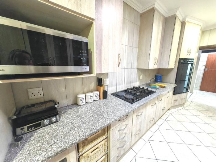 Entertainer's dream in a quiet, family-friendly suburb with pool and manageable garden; big lounge with built-in braai and a modern chef’s kitchen. Four bedrooms, three baths, single garage.