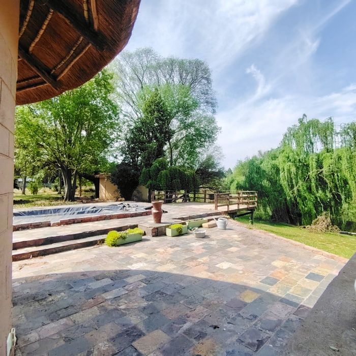 Riverside retreat in Roodewal Small Holdings offering tranquil, nature-led living with two homes and business potential; pool, riverside garden and outbuildings. Eight bedrooms, 6.5 bathrooms, single garage.