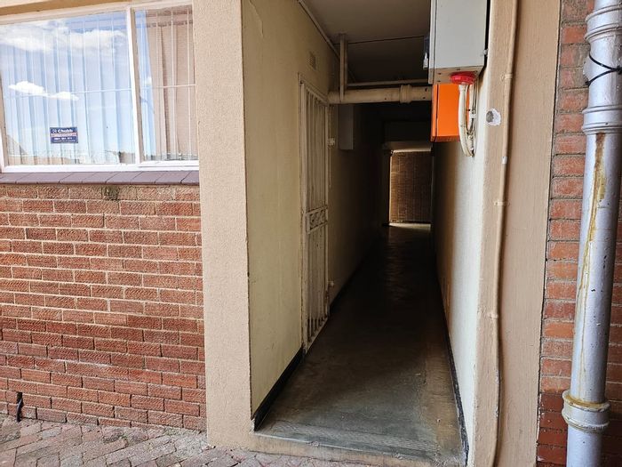 Peaceful lock-up-and-go townhouse in sought-after Westdene, part of a secure seven-unit complex with private garden and open-plan living, upstairs main bedroom with aircon — 2 beds, 1.5 baths, garage.