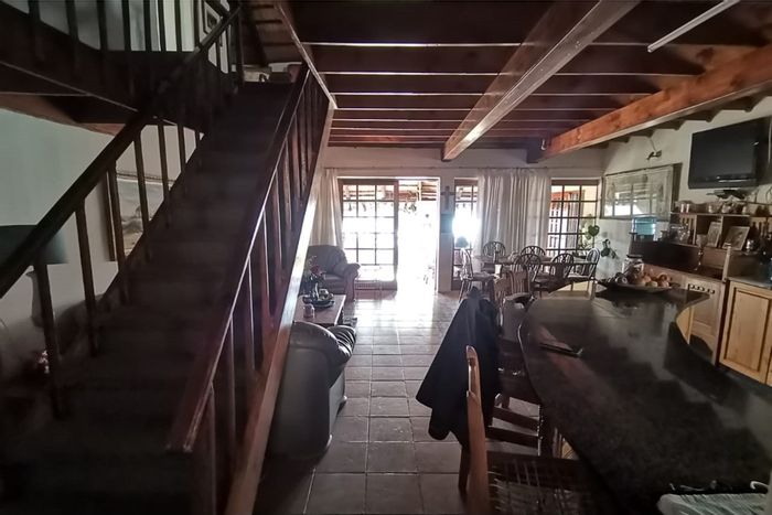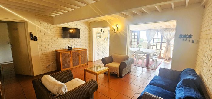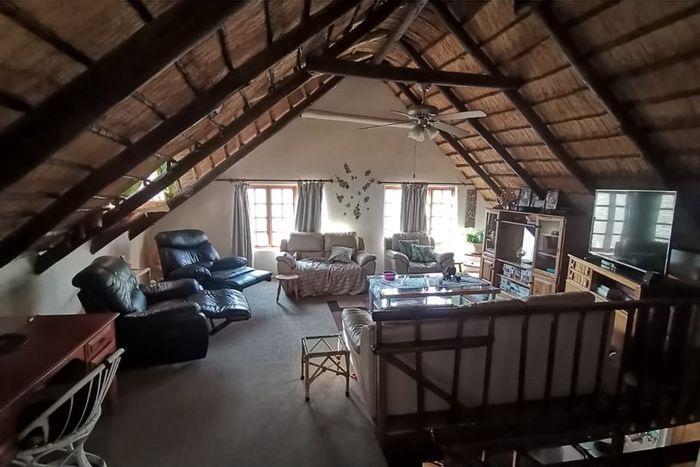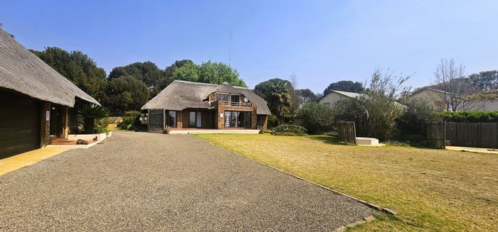 Relaxed lakeside living a short stroll from the dam in Deneysville, this thatch-roof home offers an entertainer's lapa, open-plan family room with fireplace, and a separate granny flat.