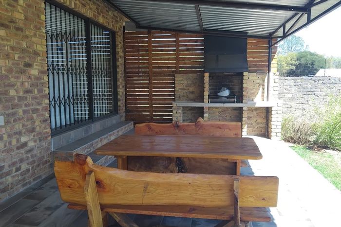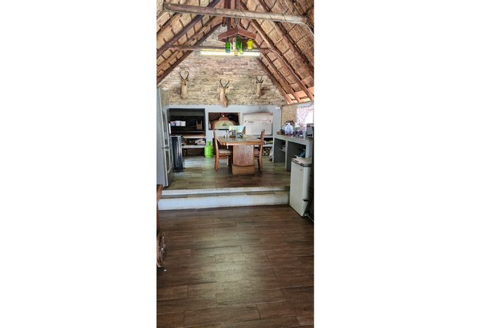 Embrace country living on over 4 hectares with grazing camps and homegrown produce — lapa with splash pool and built-in braai for entertaining. Three bedrooms, two bathrooms.