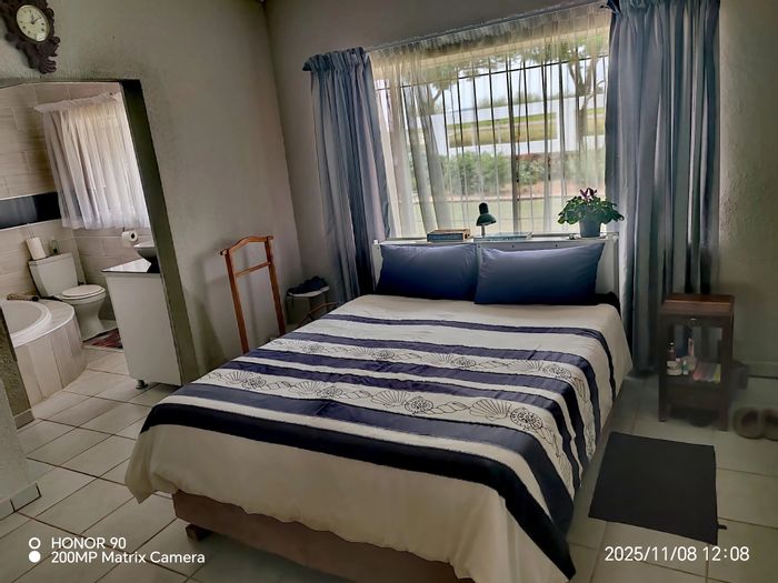 Relaxed waterside living near Vaal Dam with 180° water views and a pretty communal garden; updated one-bedroom, one-bath flat with single garage and resident parking.