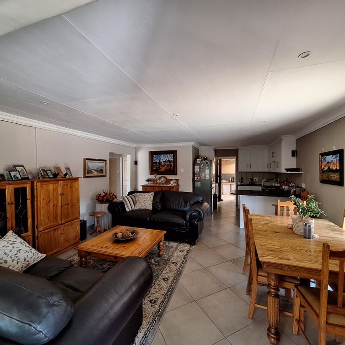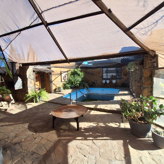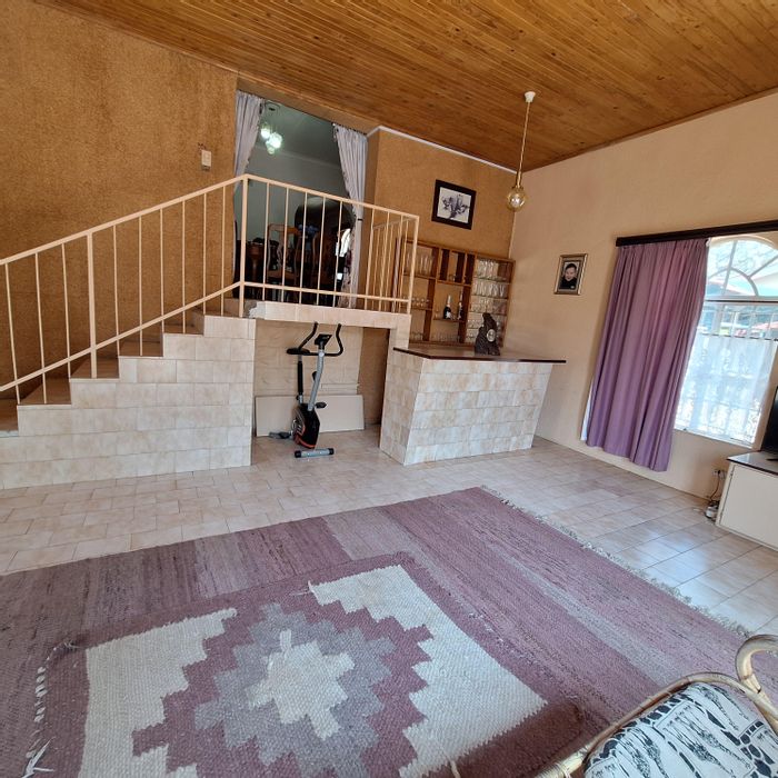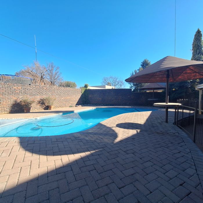 Roomy family retreat on a double erf in a quiet, family-friendly neighborhood — walking distance to the local school, huge garden with pool and fish dam, built-in braai/bar.