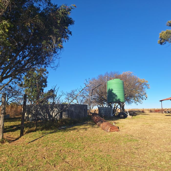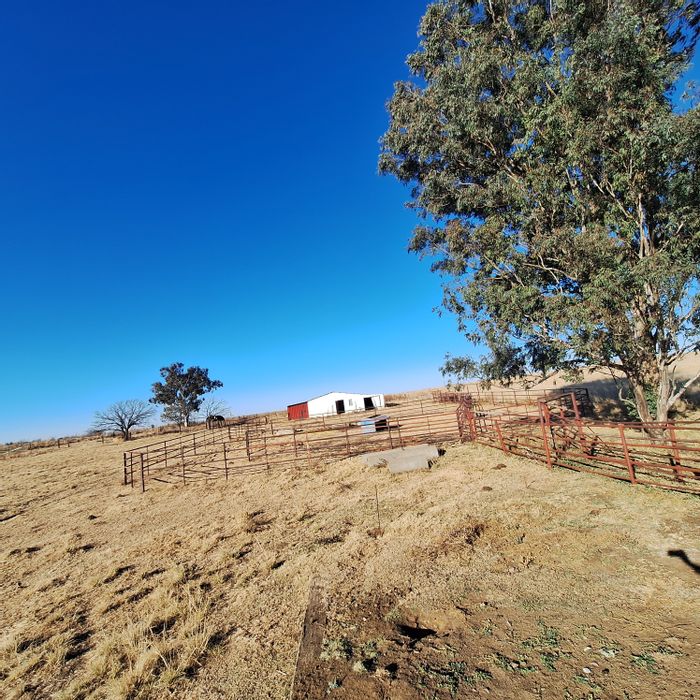 Vaaldam-fed irrigation farm with water rights, two pivot systems (78ha) and 364ha total — arable, dry land and fields split into watered camps; borehole with windmill and Eskom power.