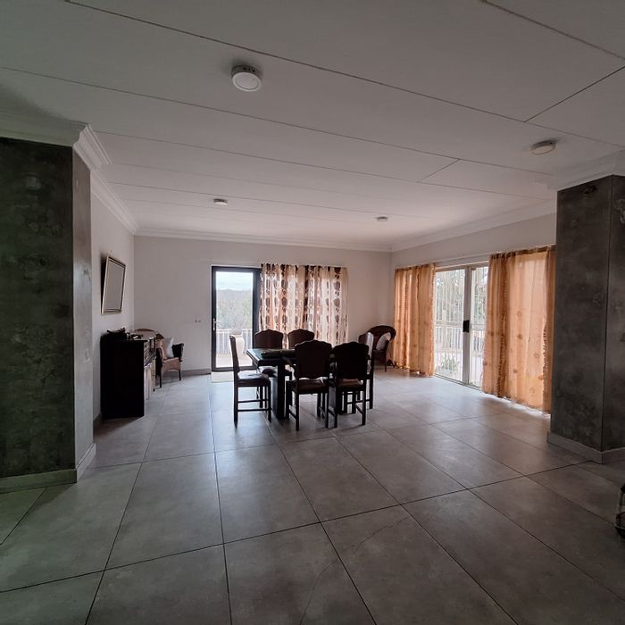 Relax on a Wilge River-view veranda with private braai in a quiet suburb; refurbished home features a striking concrete slab kitchen table, flexible living, three-bed/three-bath main house plus one‑bed flat.