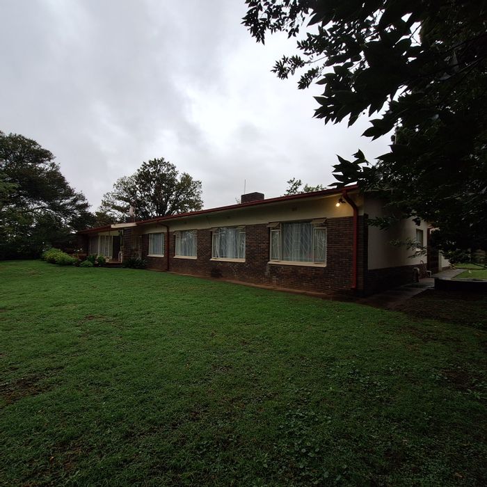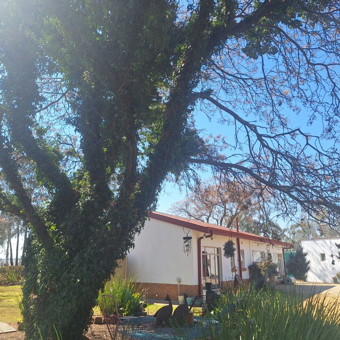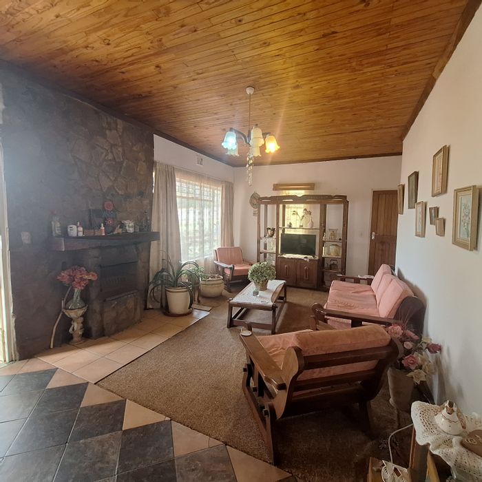 Tranquil Villiers corner stand with established trees, perfect for a treehouse. Sunlit living room with fireplace, secluded stoep and vintage coal stove; close to local school, five beds.