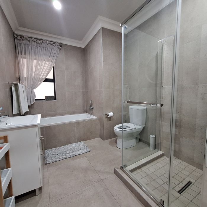 Relaxed, low-maintenance family living in a peaceful neighborhood with a private lapa and built-in braai for entertaining, generous kitchen, three bedrooms, two bathrooms, and four covered parking.