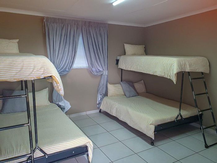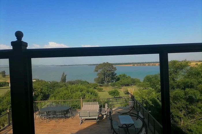 Enjoy lakeside entertaining in Oranjeville, Free State — peaceful town charm and easy amenities. Jacuzzi overlooks the Vaaldam; five bedrooms, two bathrooms, and parking for eight.